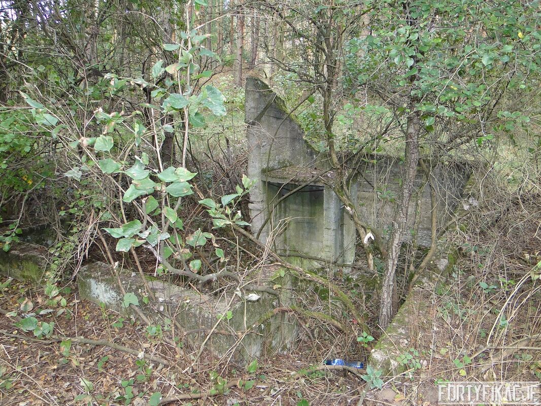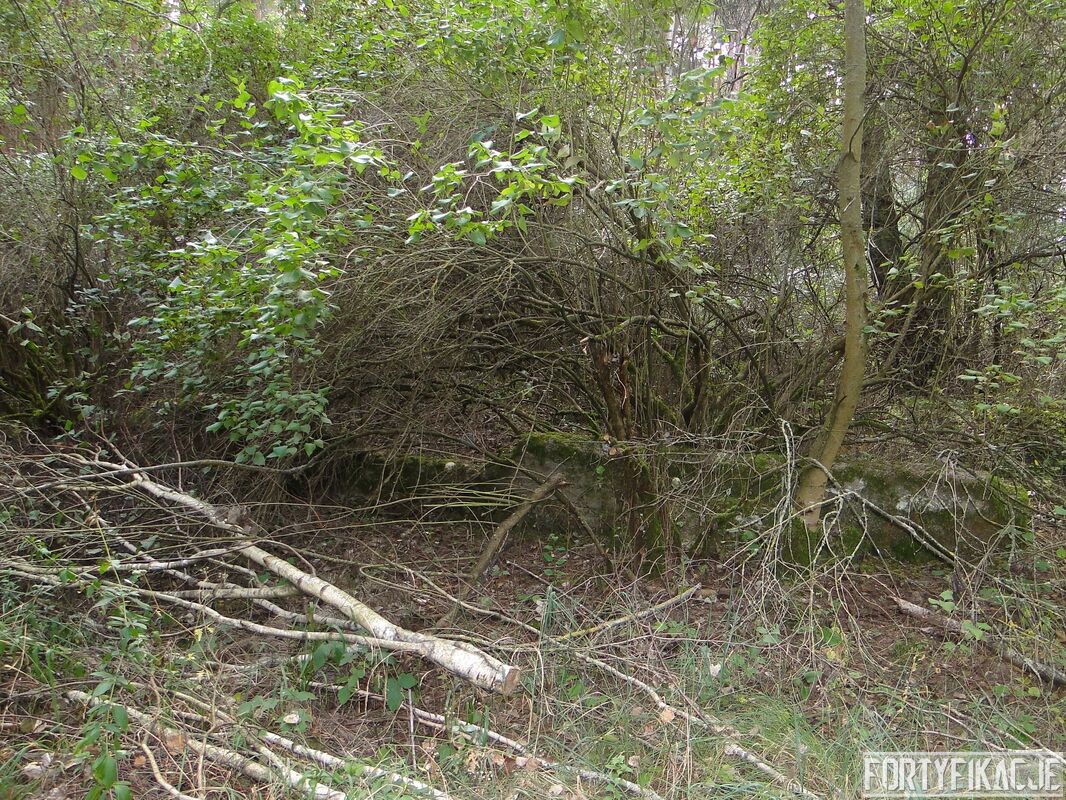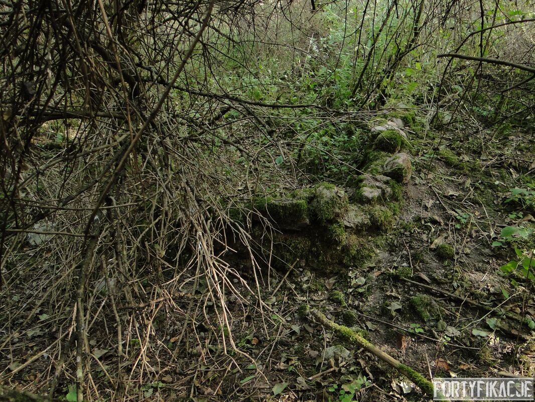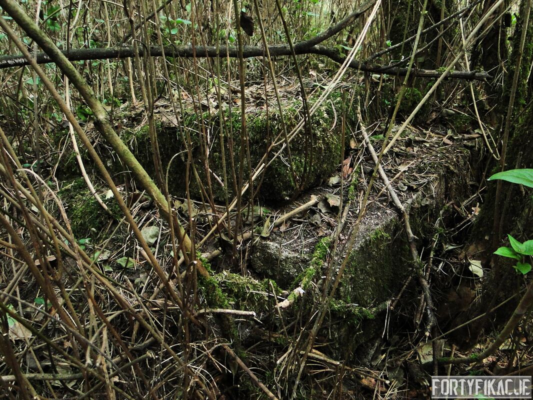 Zaintrygowany wybrałem się we wskazane miejsce. Poniższe zdjęcia ukazują to co zastałem. Obok leśnej drogi znajdują się prawdopodobnie dwa obiekty. Ten po południowej stronie (obiekt 2.) przypomina raczej fundamenty jakiegoś budynku (zabudowań gospodarczych?). Bardziej ciekawą formę mają ruiny obiektu po północnej stronie drogi (obiekt 1.). Jest wykonany z betonu lub żelbetonu (?). Ściany są zbyt cienkie by można było go zaliczyć do jakiejkolwiek kat. odporności. Mimo wszystko jestem przekonany, że i te ruiny są raczej pozostałością po zabudowie cywilnej. Oba obiekty zaznaczone są na "Messtischblatt'ach" z 1938, 1940 i 1944r. Obiekt 1. leży na czymś, co mapa określa jako "Bruchfeld (durch Bergbau unterhöhlt)": "Zwalisko spowodowane wydobyciem górniczym"? Co Państwo myślą o obiektach na poniższych zdjęciach? Jestem ciekawy Państwa odczuć! By ułatwić orientację dołączam mapkę!