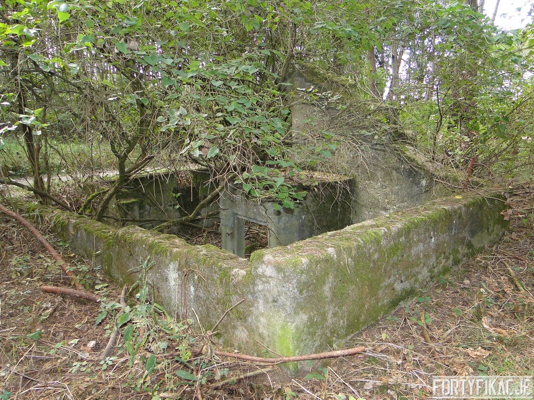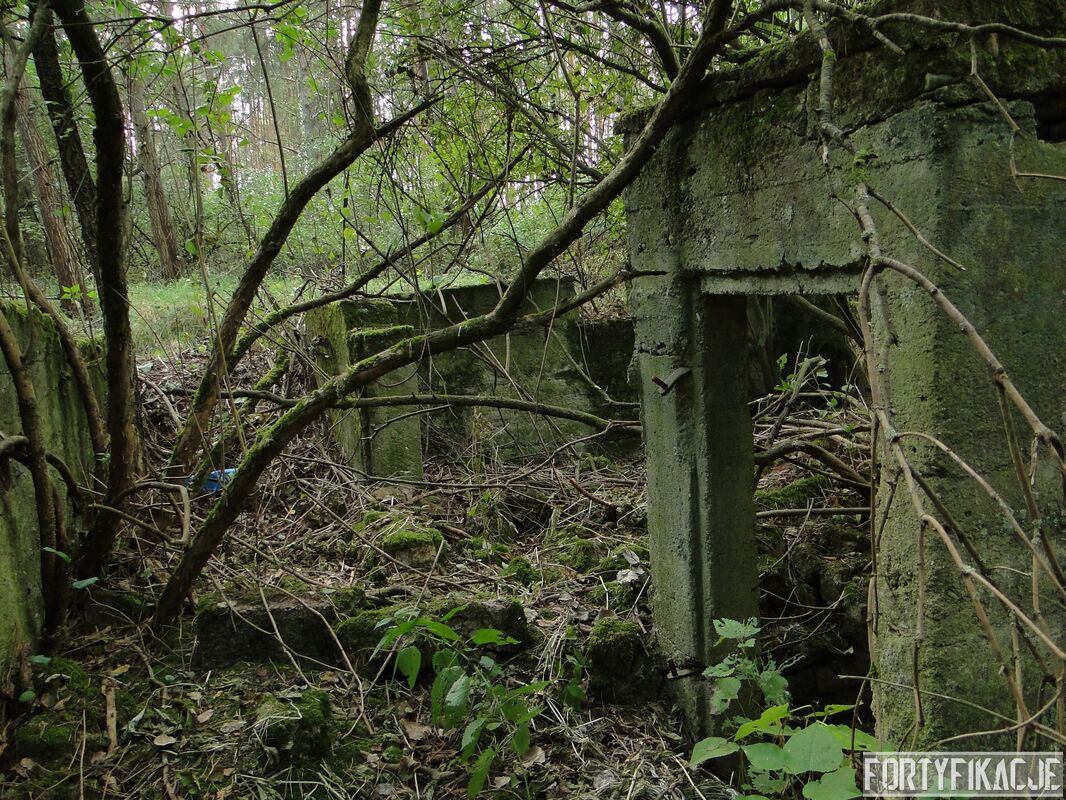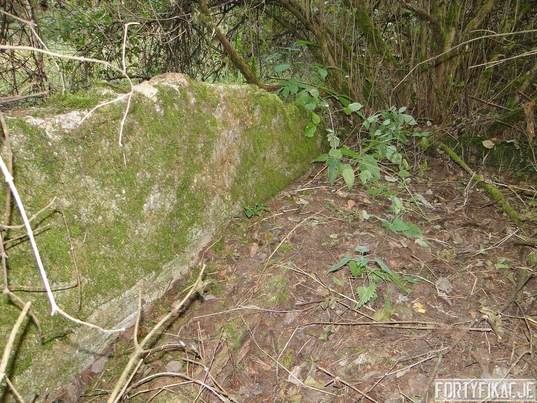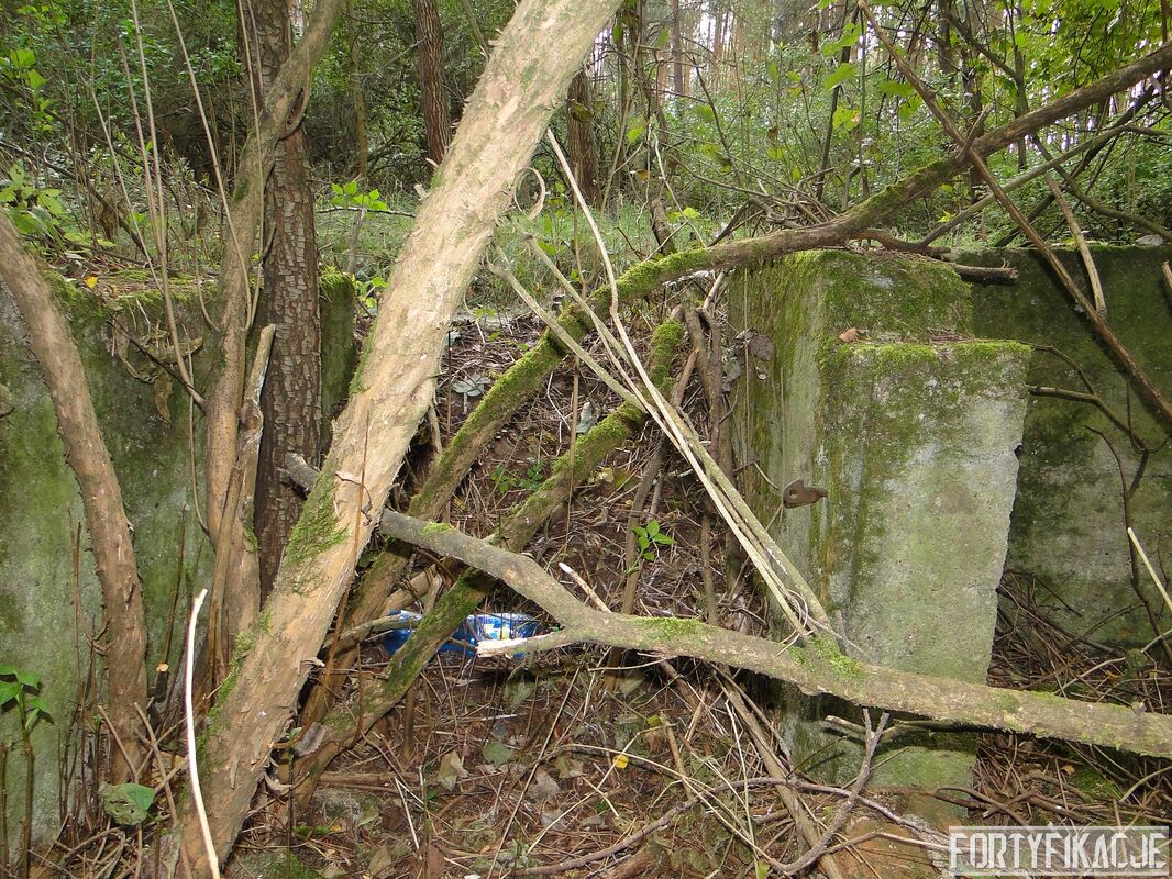 Zaintrygowany wybrałem się we wskazane miejsce. Poniższe zdjęcia ukazują to co zastałem. Obok leśnej drogi znajdują się prawdopodobnie dwa obiekty. Ten po południowej stronie (obiekt 2.) przypomina raczej fundamenty jakiegoś budynku (zabudowań gospodarczych?). Bardziej ciekawą formę mają ruiny obiektu po północnej stronie drogi (obiekt 1.). Jest wykonany z betonu lub żelbetonu (?). Ściany są zbyt cienkie by można było go zaliczyć do jakiejkolwiek kat. odporności. Mimo wszystko jestem przekonany, że i te ruiny są raczej pozostałością po zabudowie cywilnej. Oba obiekty zaznaczone są na "Messtischblatt'ach" z 1938, 1940 i 1944r. Obiekt 1. leży na czymś, co mapa określa jako "Bruchfeld (durch Bergbau unterhöhlt)": "Zwalisko spowodowane wydobyciem górniczym"? Co Państwo myślą o obiektach na poniższych zdjęciach? Jestem ciekawy Państwa odczuć! By ułatwić orientację dołączam mapkę!