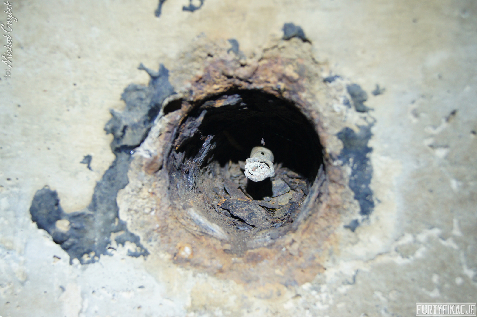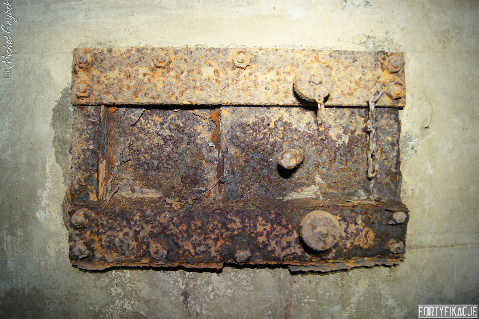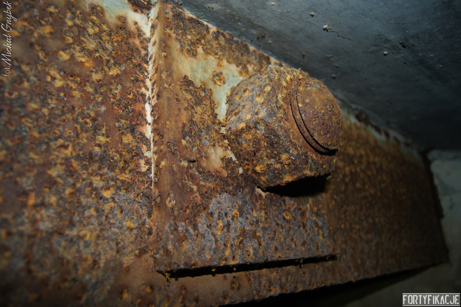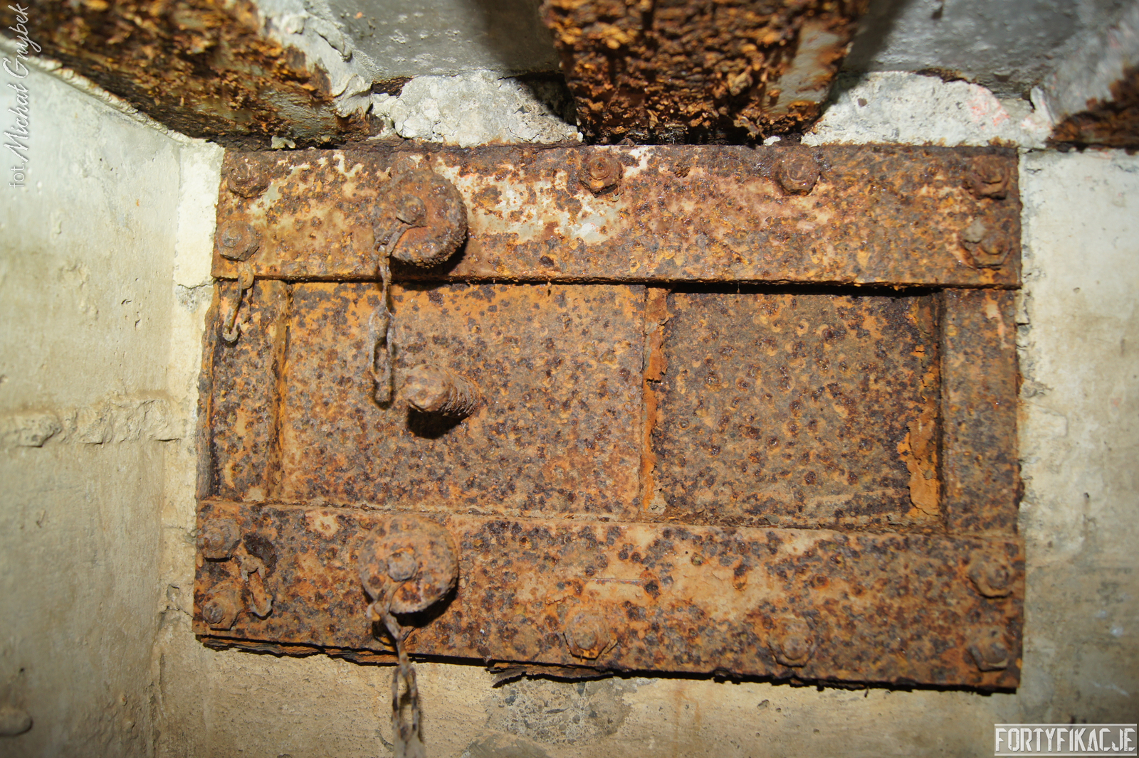 Schron - na swoje szczęście (!) - regularnie jest zalewany. Z tego powodu jego częściowo uchowane wyposażenie niestety ulega coraz większej korozji. Skutki utleniania widać na powierzchni wszystkich stalowych elementów. Z drugiej strony stojąca woda zdaje się być swoistym strażnikiem zachowanego pancerza utrudniając jego ewentualną grabież... Wnętrze obiektu kryło dwa pomieszczenia. Pierwsze z nich to przedsionek/śluza gazoszczelna. Drugie to niewielka izba bojowa o ograniczonych do absolutnego minimum funkcjach socjalnych. Załoga miała tu do dyspozycji pomieszczenie o mikrych wymiarach 200x252cm! W rzeczonym schronie na uwagę zasługuje kompletna płyta stalowa 8cm: zachowały się tu prowadnice, zasuwy oraz dźwignia ryglująca. Niestety schron jest obecnie pozostawiony sam sobie. Może lokalne władze/LP powinny rozważyć jego zamknięcie?
