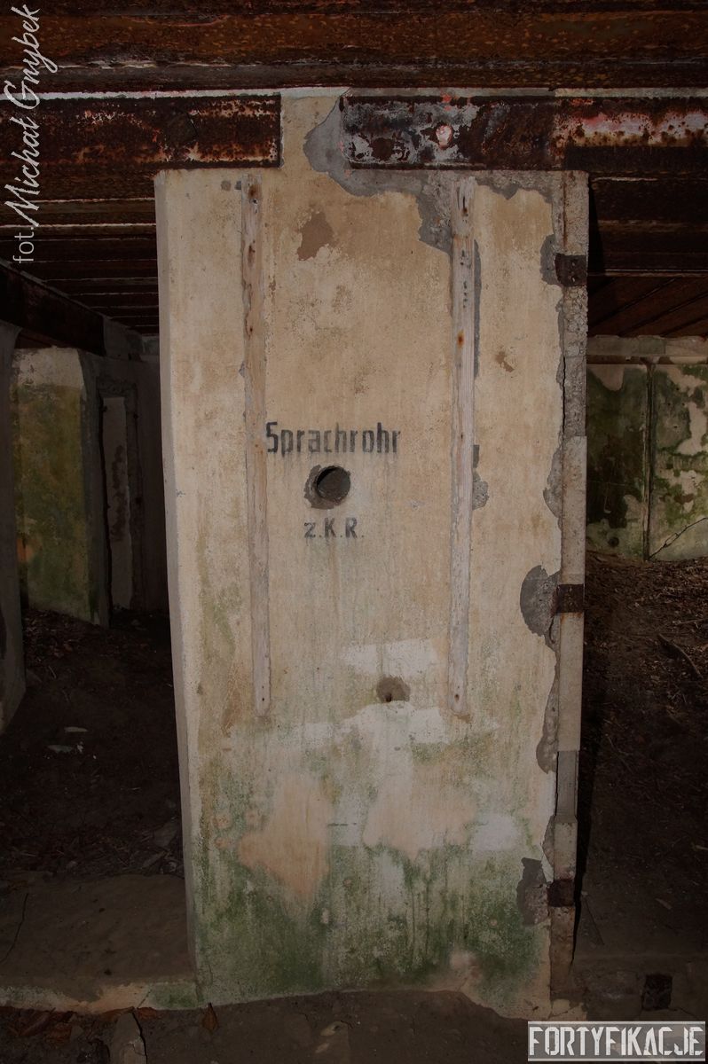 Zajrzyjmy do środka! Mimo, że Stand pokrywał ogniem dwa sektory, to jego wnętrze kryje jedynie trzy pomieszczenia! Blok wejściowy/śluza gazoszczelna był niewielkich rozmiarów. Stąd załoga mogła dostać się do jednego pomieszczenia: Izby bojowej skierowanej na wschód. Było to zdecydowanie największe pomieszczenie schronu. Jego kubatura wskazuje, że mogła być to też izba dla drużyny wypadowej (?). Stąd natomiast załoga mogła się udać do izby bojowej skierowanej ku północnemu-wschodowi, pełniącej również rolę wartowni, znajdziemy tu zachowaną lekką tarczę stalową ze strzelnicą broni ręcznej.