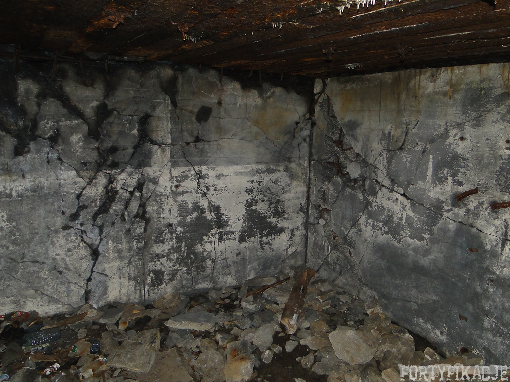 Zejdźmy na dolną kondygnację Pz. W. 865! Jest to stosunkowo najlepiej zachowana część całego obiektu! Oś wyznaczały dwa korytarze komunikacyjne łączące się w centralnej części kondygnacji. Kubatura tejże części schronu była o wiele większa niż wyższej, a pomieszczenia miały przeznaczenie techniczno-socjalne. Pozostałości w poszczególnych izbach nierzadko pozwalają na identyfikację funkcji tychże.