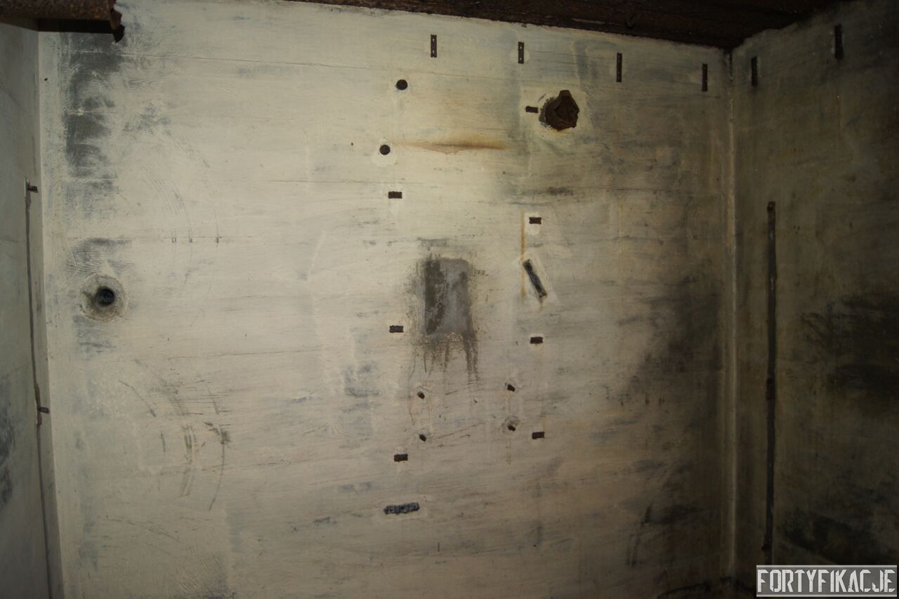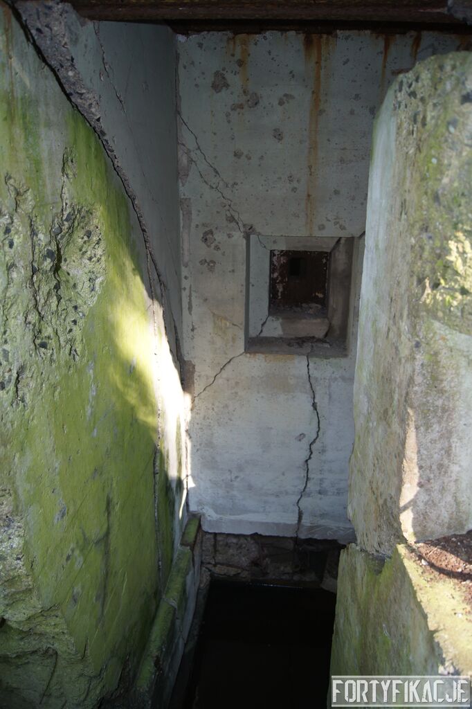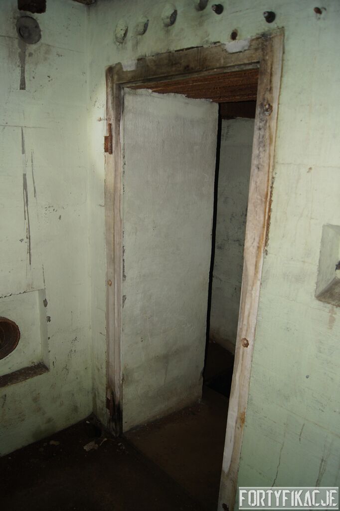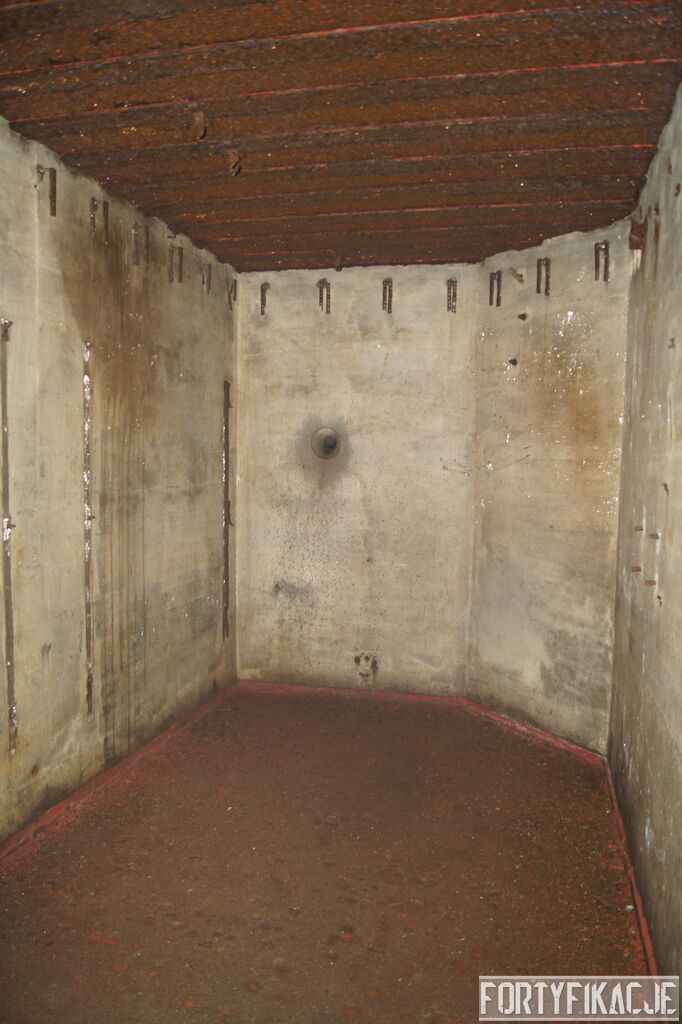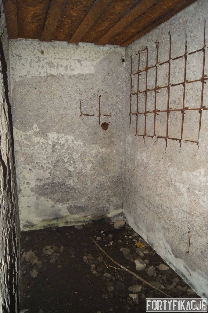 Wejdźmy na górną kondygnację. Tu poczynione zostały największe zniszczenia. Część pomieszczeń pozbawionych jest stropu, a ściany schronu poprzemieszczane. Największym zniszczeniom uległy izby bojowe, szyby kopuł, izba dowódcy oraz maszynownia. Kilka pomieszczeń górnej kondygnacji przetrwała jednak w jako takim stanie. Na wyróżnienie zasługuje m.in. izba łączności, blok wejściowy z dołami-pułapkami, nad którymi wisiały opuszczane drzwi 99P9 oraz kazamata z płytą pancerną 6P7. Był to pancerz o niebagatelnej grubości 20cm. W Pz. W. 712 została ona wycięta palnikami na tyle "delikatnie", że izba przetrwała, a w betonie widoczne są elementy mocowania płyty.