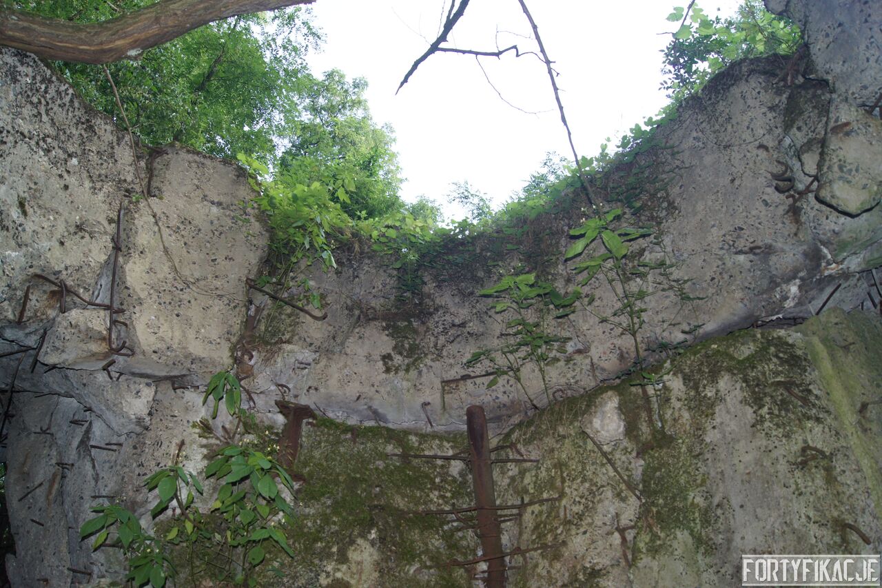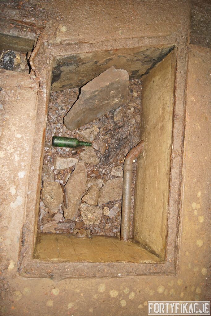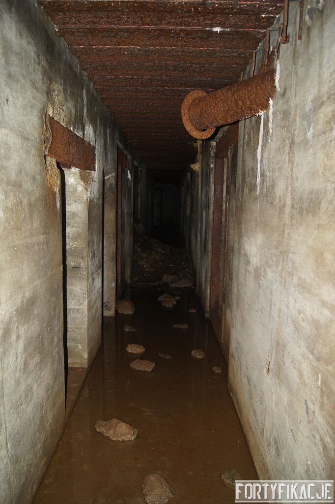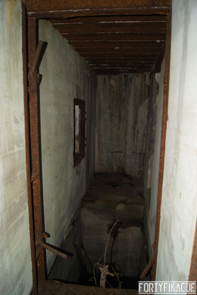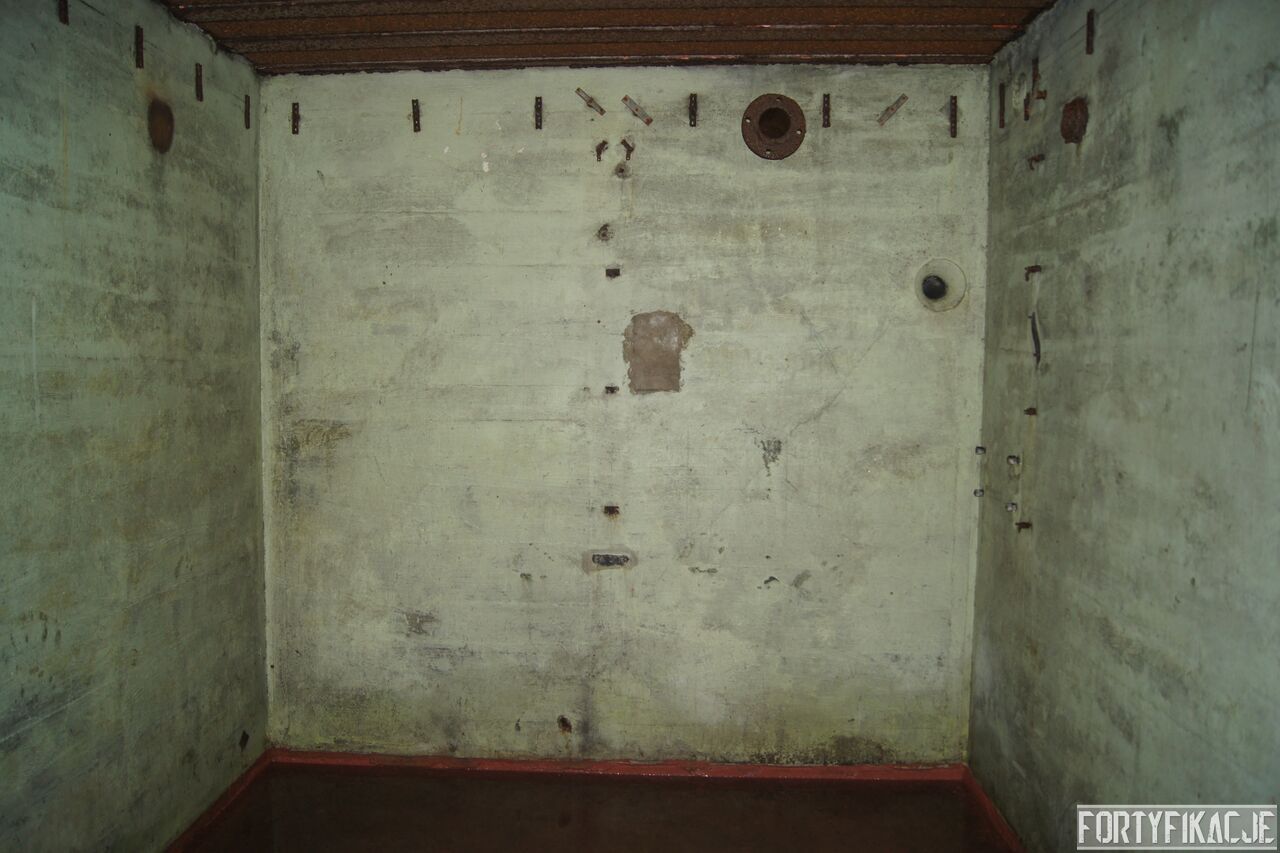 Wejdźmy na górną kondygnację. Tu poczynione zostały największe zniszczenia. Część pomieszczeń pozbawionych jest stropu, a ściany schronu poprzemieszczane. Największym zniszczeniom uległy izby bojowe, szyby kopuł, izba dowódcy oraz maszynownia. Kilka pomieszczeń górnej kondygnacji przetrwała jednak w jako takim stanie. Na wyróżnienie zasługuje m.in. izba łączności, blok wejściowy z dołami-pułapkami, nad którymi wisiały opuszczane drzwi 99P9 oraz kazamata z płytą pancerną 6P7. Był to pancerz o niebagatelnej grubości 20cm. W Pz. W. 712 została ona wycięta palnikami na tyle "delikatnie", że izba przetrwała, a w betonie widoczne są elementy mocowania płyty.