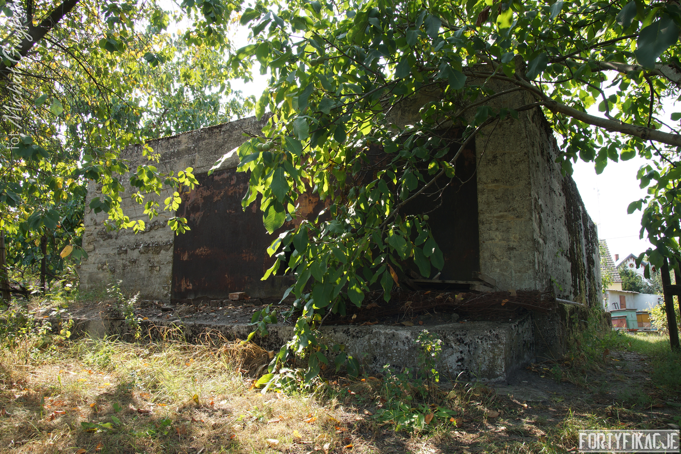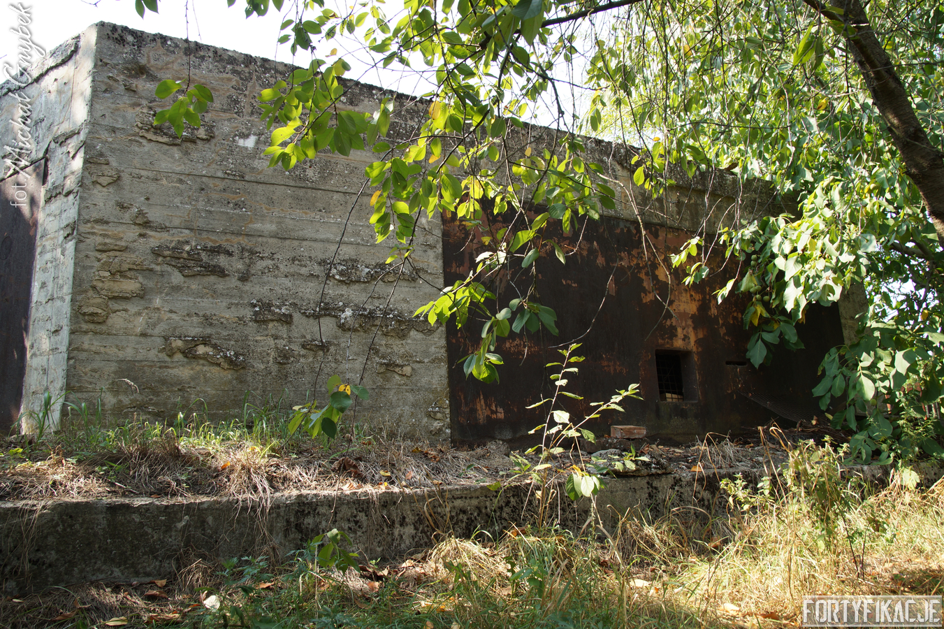 Obiekt pierwotnie maskowany był na budynek gospodarczy, czego śladów można się dopatrzeć na elewacji i dziś. Poniższe zdjęcia powstały w odległych od siebie latach: 2010 i 2018r. Widać jak teren wokół schronu zmienia się: jabłonie podrosły! Wokół Standu znajduje się pasieka. Po pierwotnym krajobrazie fortecznym nie pozostał nawet ślad...