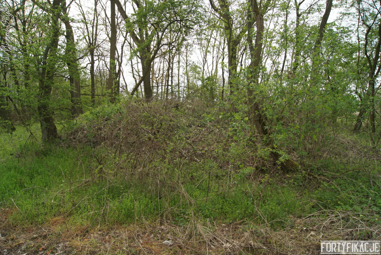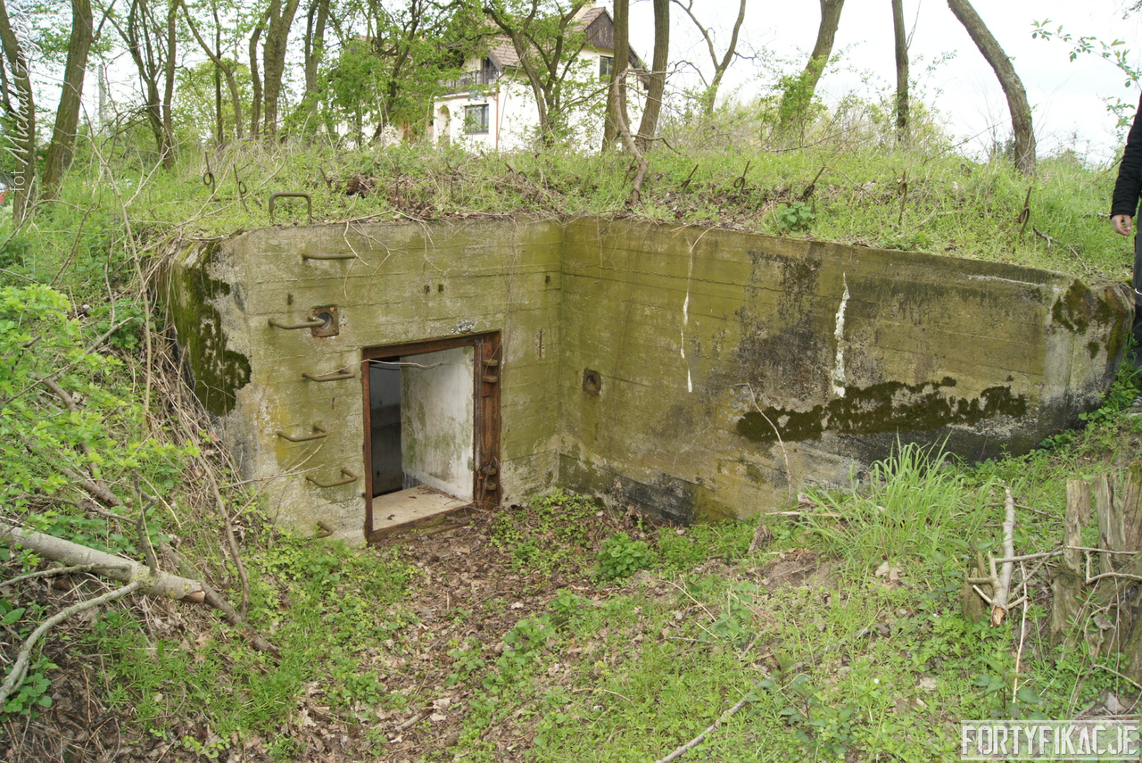 Ulokowany został na tyłach pierwszej linii umocnień nad Odrą, stanowiąc element szczątkowej linii pośredniej pomiędzy fortyfikacjami wzniesionymi w pobliżu brzegu rzeki a linią tyłową łączącą niczym cięciwa szyję rozległego meandra. Dziś - łatwy w lokalizacji - znajduje się w pobliżu osiedlowej drogi w Leśnej Górze. Niegdyś - trudny do wykrycia przez przeciwnika - od przedpola przypominał kopę piachu, pagórek. Obiekt prawie całkowicie przysypany był ziemią, odsłonięta była jedynie niewielka elewacja wejściowa.