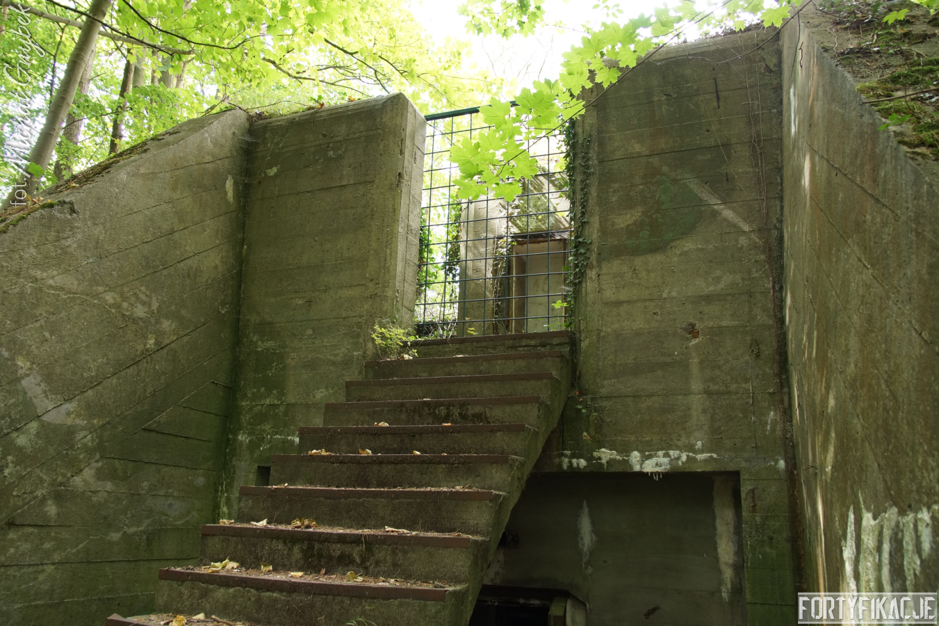 W niniejszym stanowisku wejście na górną kondygnację prowadziło z poziomu gruntu po ok. 3m wysokości betonowych schodach. Tuż za (pod?) nimi znajdowało się też wejście na dolny poziom. Co ciekawe projekt nie przewidywał bezpośredniego ukrytego przejścia pomiędzy kondygnacjami. Stanowisko 2 zasługuje na uwagę ze względu na wiele zachowanych stalowych elementów: drzwi, windę amunicyjną itd.