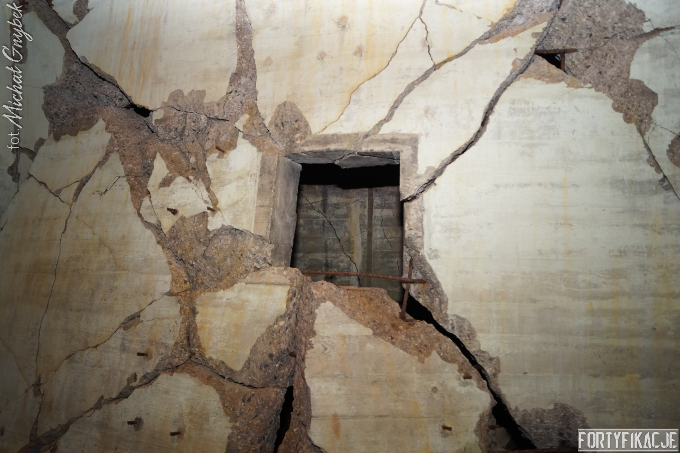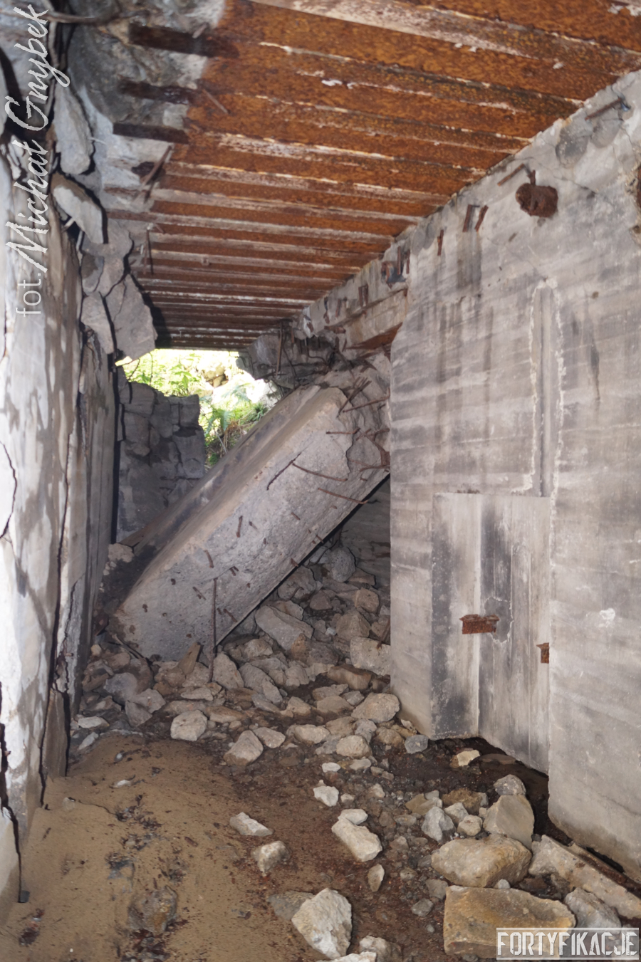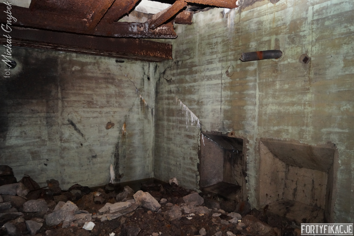 Przyjrzyjmy się zatem kondygnacji górnej: uległa dosyć sporym zniszczeniom. Z tego powodu część pomieszczeń obecnie nie istnieje lub jest niedostępna. Wiele ścian zostało przez eksplozję przemieszczonych lub stoją pod nienaturalnym kątem... Mimo to w wielu zachowanych izbach zachowały się ślady ich pierwotnych funkcji. Moją uwagę przyciągnęły szczególnie pomieszczenia związane z szeroko rozumianym dowodzeniem obiektem i łącznością. Z pewnością są to najlepiej zachowane pomieszczenia górnej kondygnacji.