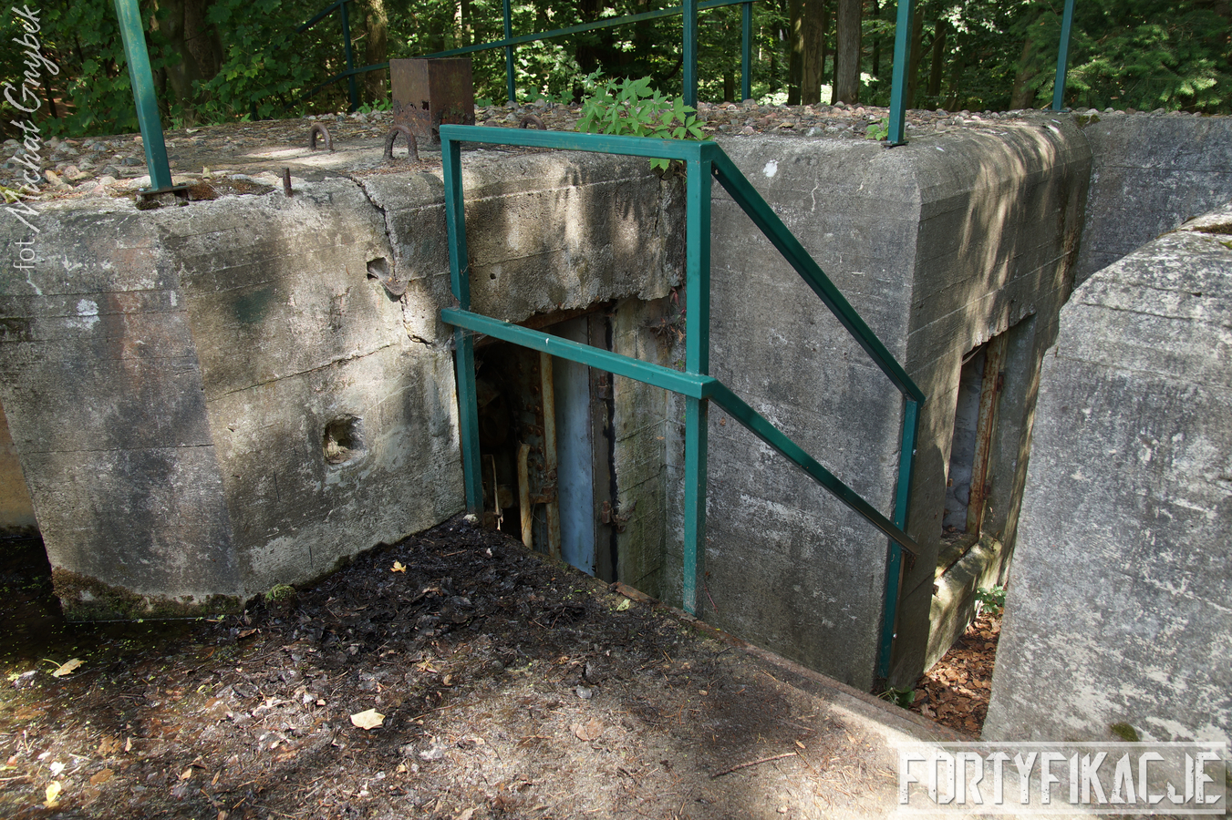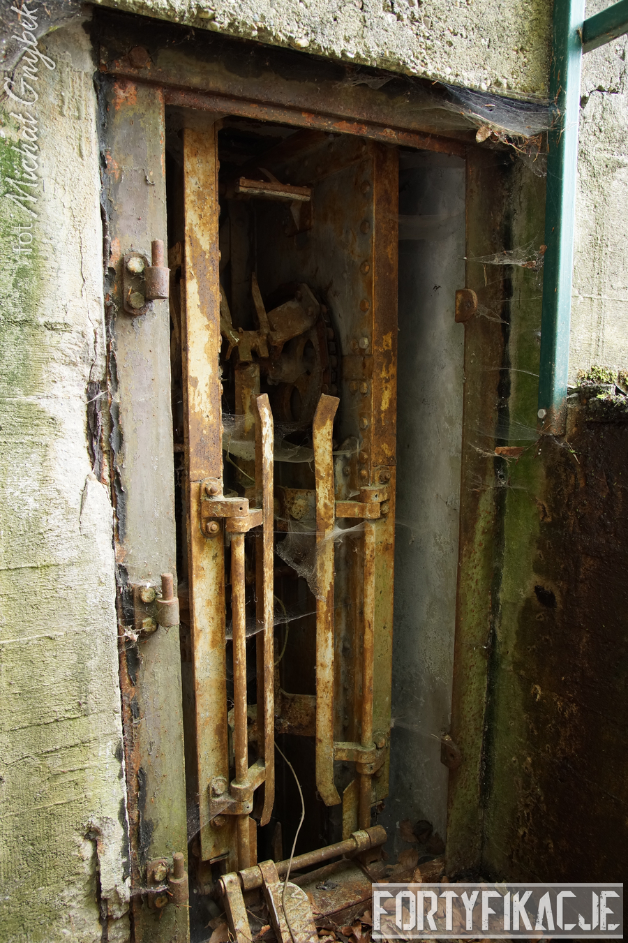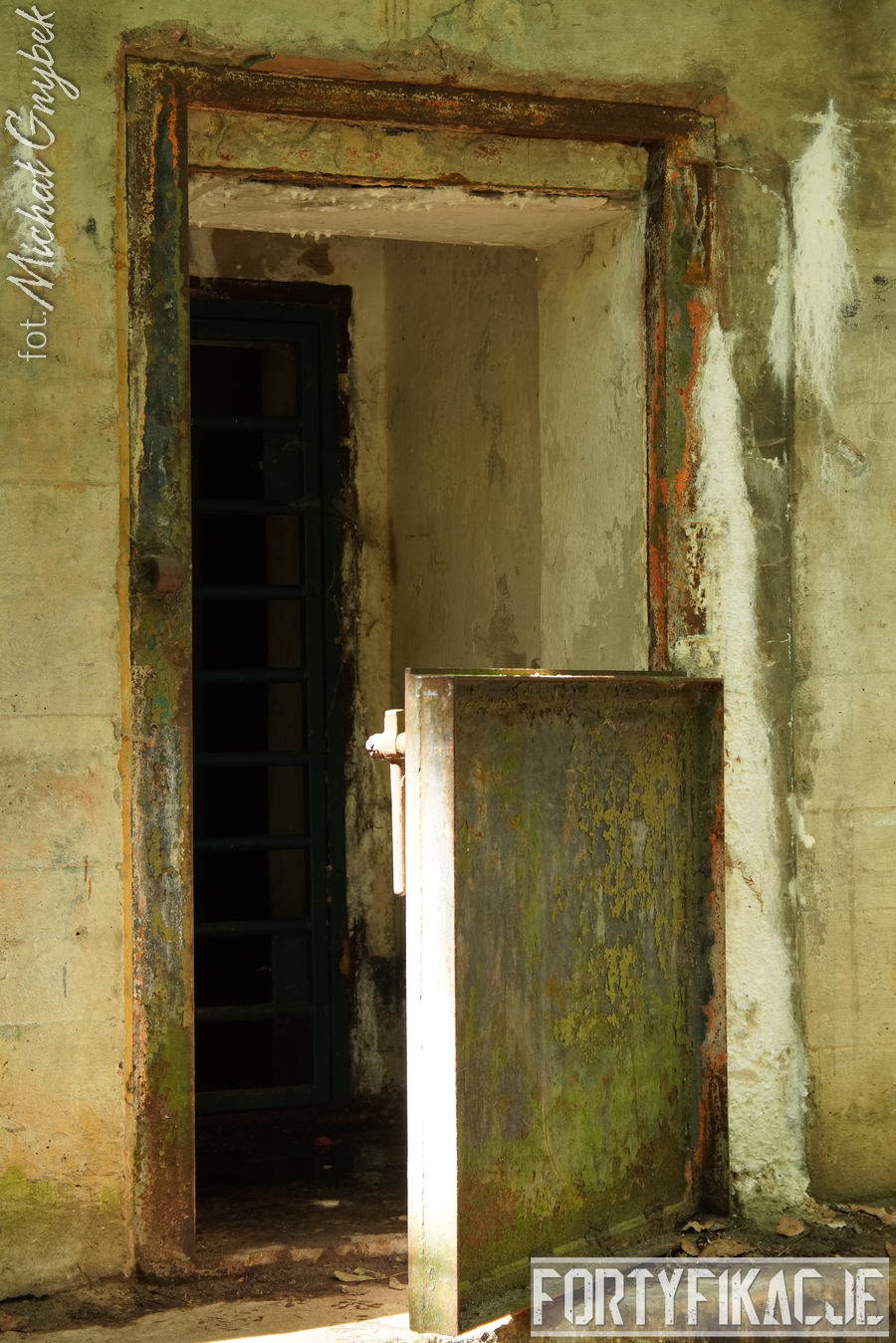 Pomiędzy obiema dolnymi kondygnacjami komunikację umożliwiały włazy przejściowe. Co ciekawe z zewnątrz na oba poziomy prowadziły osobne wejścia: na środkową kondygnację w centralnej części tylnej elewacji, zamykane drzwiami dwudzielnymi, na najniższą po prawej stronie tylnej elewacji, w murze oporowym, zamykane drzwiami pancernymi.