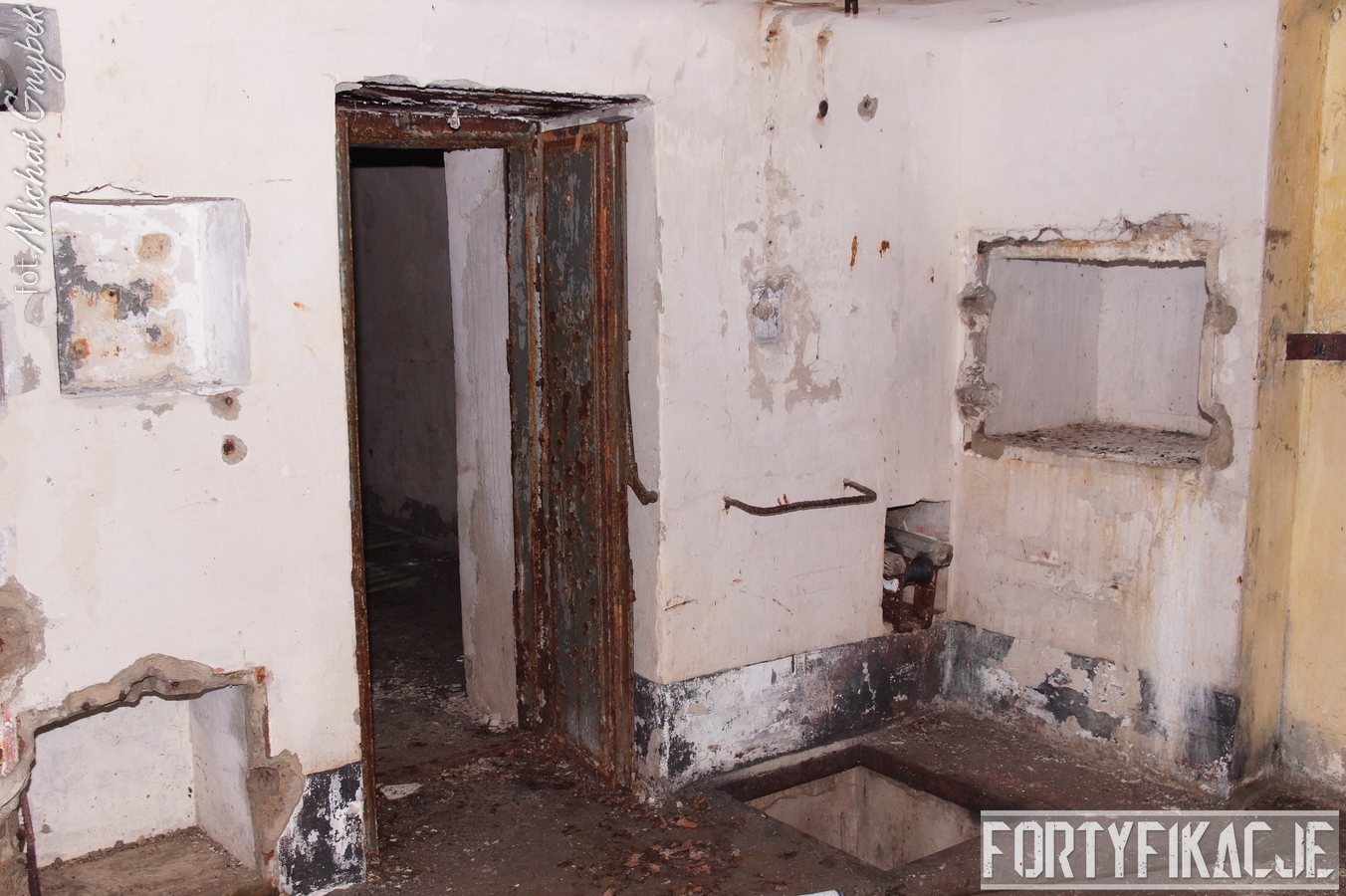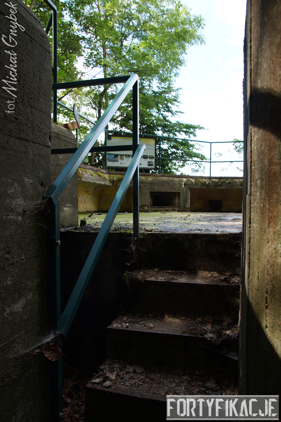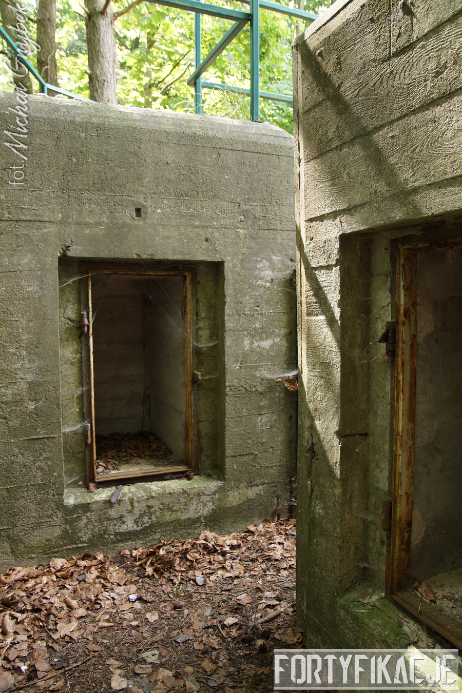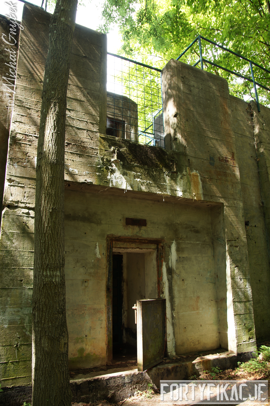 Pomiędzy obiema dolnymi kondygnacjami komunikację umożliwiały włazy przejściowe. Co ciekawe z zewnątrz na oba poziomy prowadziły osobne wejścia: na środkową kondygnację w centralnej części tylnej elewacji, zamykane drzwiami dwudzielnymi, na najniższą po prawej stronie tylnej elewacji, w murze oporowym, zamykane drzwiami pancernymi.