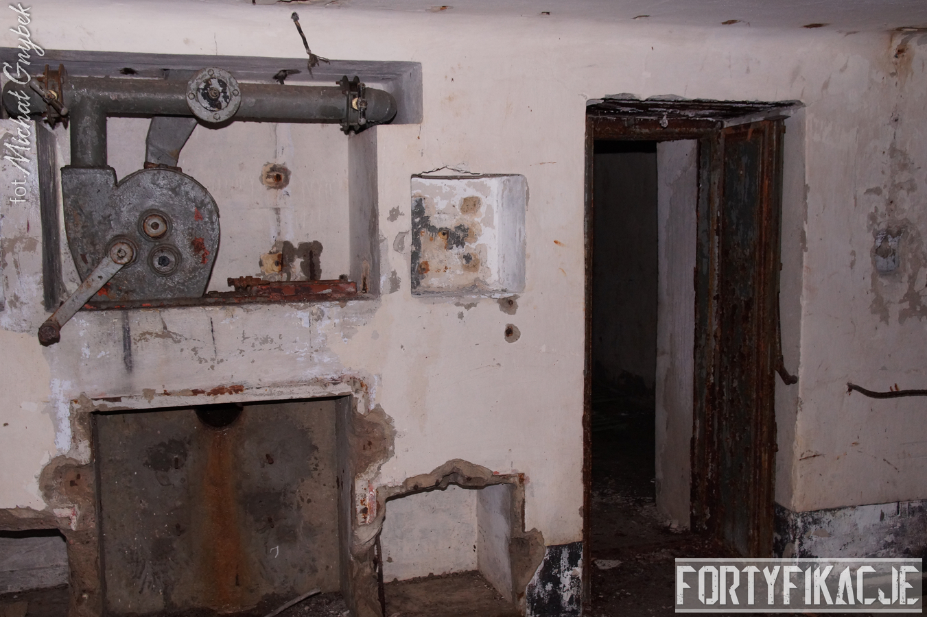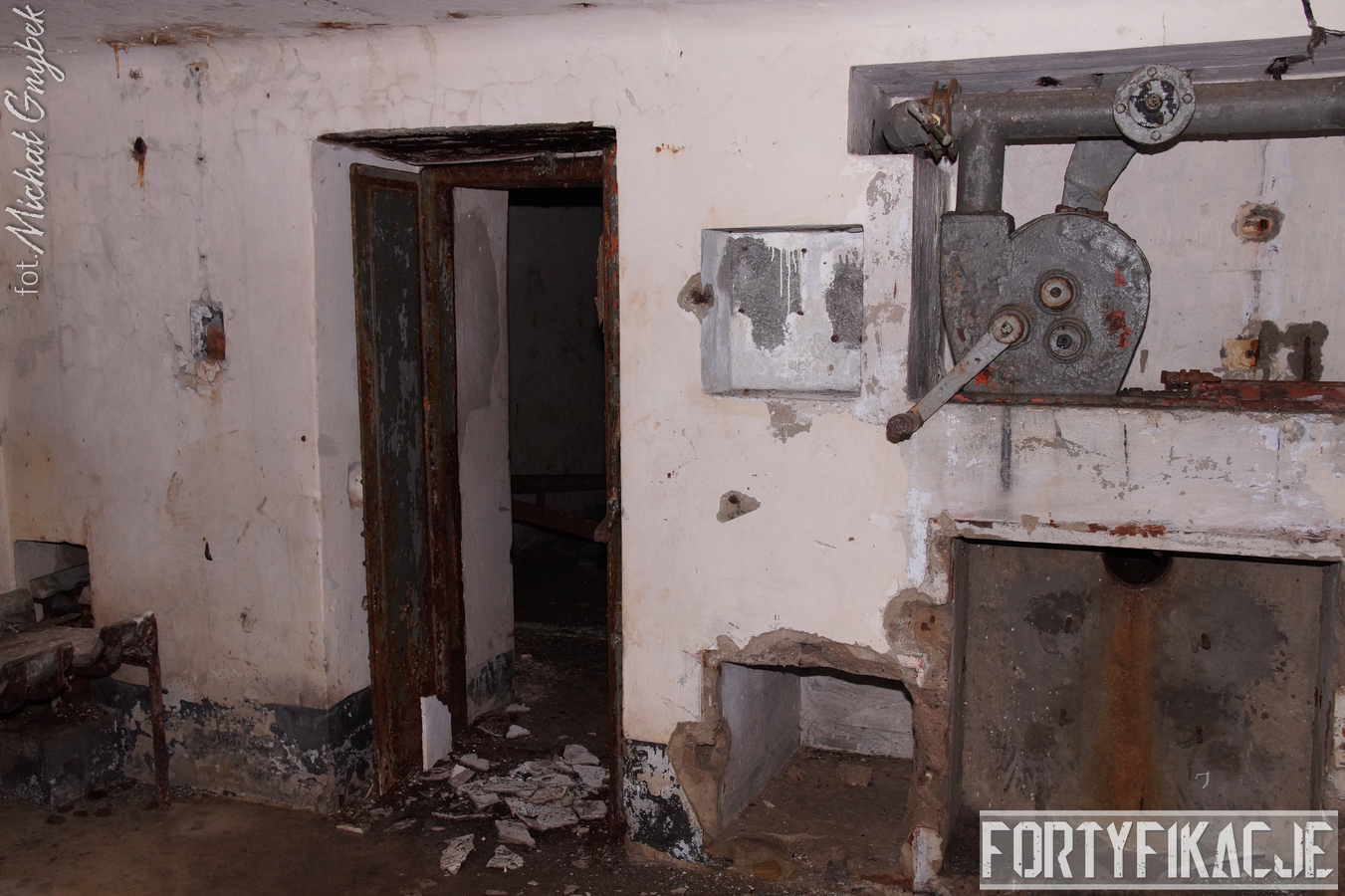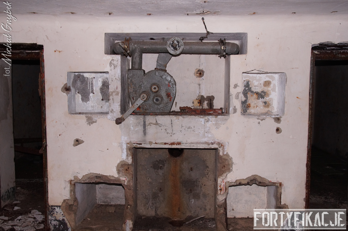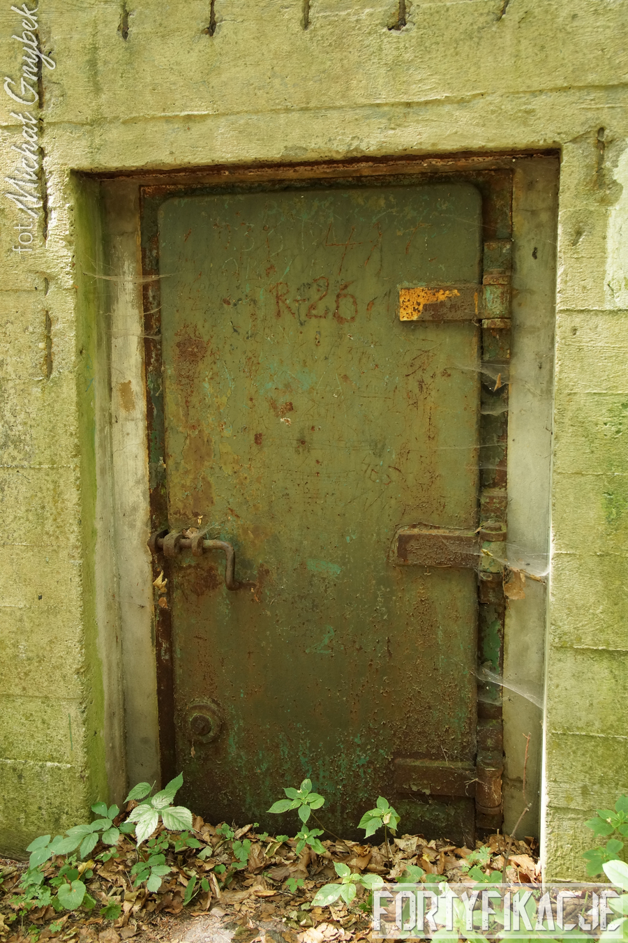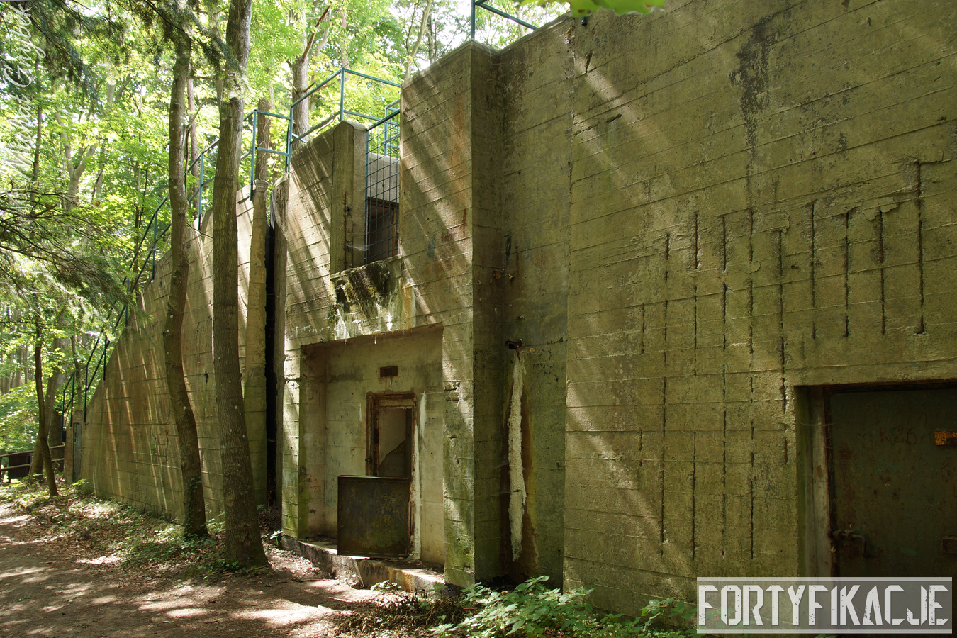 Pomiędzy obiema dolnymi kondygnacjami komunikację umożliwiały włazy przejściowe. Co ciekawe z zewnątrz na oba poziomy prowadziły osobne wejścia: na środkową kondygnację w centralnej części tylnej elewacji, zamykane drzwiami dwudzielnymi, na najniższą po prawej stronie tylnej elewacji, w murze oporowym, zamykane drzwiami pancernymi.