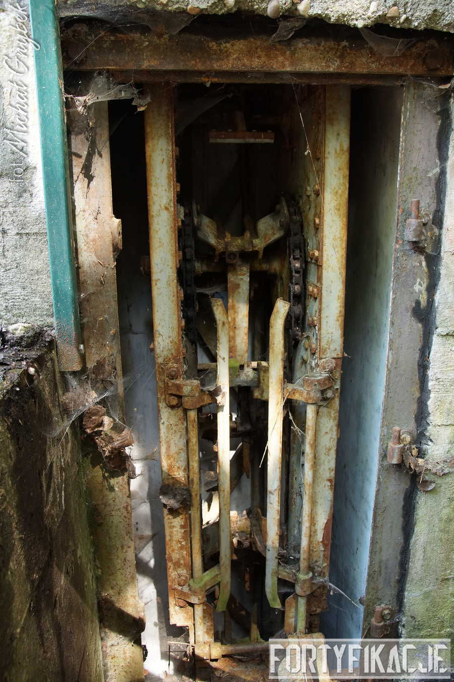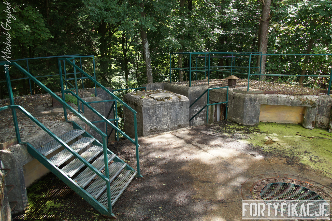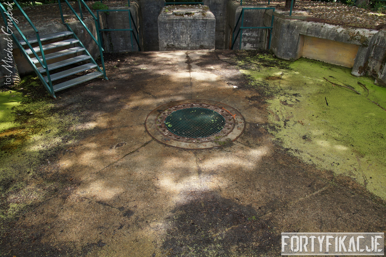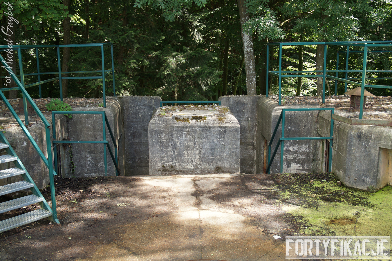 Pomiędzy obiema dolnymi kondygnacjami komunikację umożliwiały włazy przejściowe. Co ciekawe z zewnątrz na oba poziomy prowadziły osobne wejścia: na środkową kondygnację w centralnej części tylnej elewacji, zamykane drzwiami dwudzielnymi, na najniższą po prawej stronie tylnej elewacji, w murze oporowym, zamykane drzwiami pancernymi.