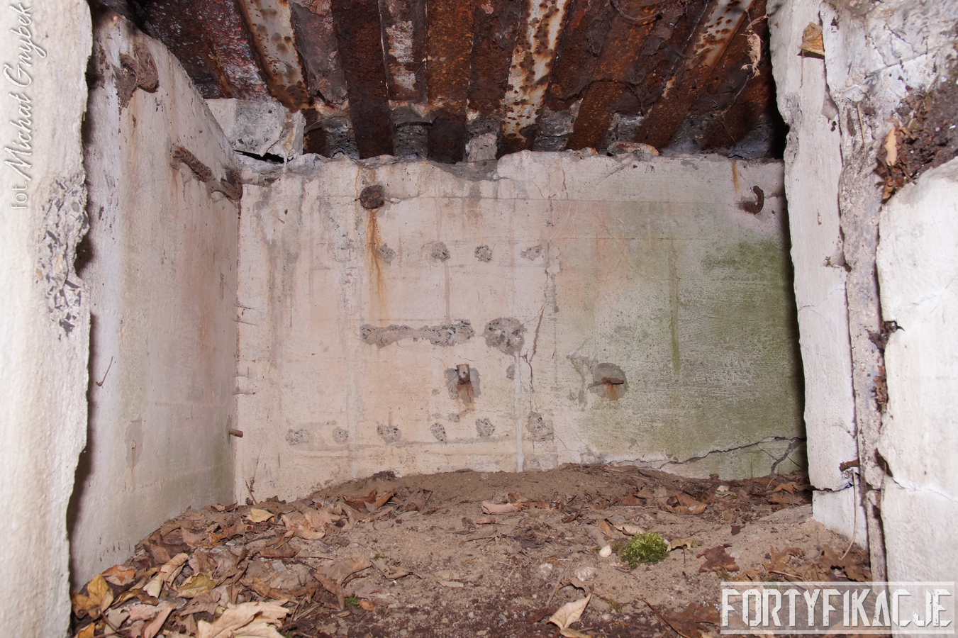 Największymi pomieszczeniami w schronie były izby bojowe. Standardowe uzbrojenie niemieckiej fortyfikacji lat 30., czyli sMG 08, zamontowany był na niewielkim stalowym stoliku, a ten na żelbetonowej ławie w kształcie litery "T". Załoga mogła liczyć na ochronę w postaci płyty stalowej o grubości 8 cm. Płyta ta była swoistym standardem konstrukcji początku lat 30. Kąt między strzelnicami wynosił 120˚. Warunki socjalne były niezwykle skromne: obieg powietrza zapewniały przewody napowietrzające i odprowadzające powietrze. Zapewne czystość powietrza zagwarantować miał filtrowentylator.