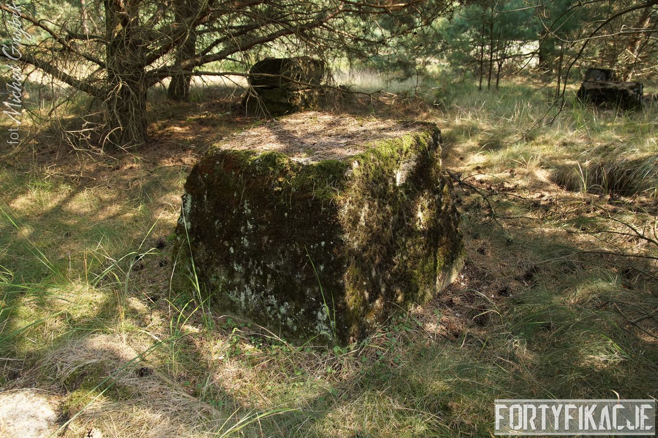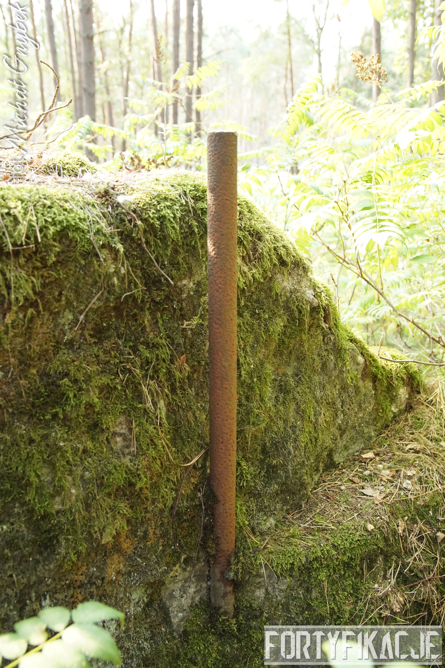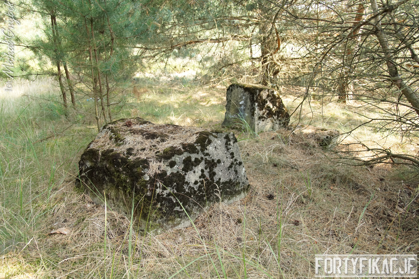 Druga podstawa pod radar śledzący FuMG-65 Würzburg-Riese, mimo że zniszczona, to pod paroma względami wydaje się ciekawsza. Zniszczenia - trudno powiedzieć jaka była ich geneza - odsłoniły ciekawe elementy konstrukcyjne. Zostały odsłonięte kotwy na których osadzona była platforma radaru. Rozłupane kęsy żelbetu odsłaniają również skromne jego zbrojenie składające się ze splecionych ze sobą dwóch prętów.