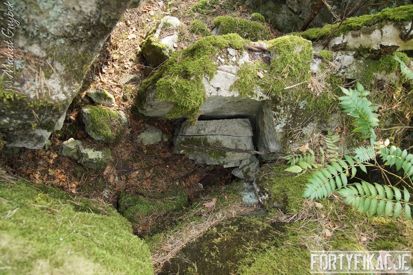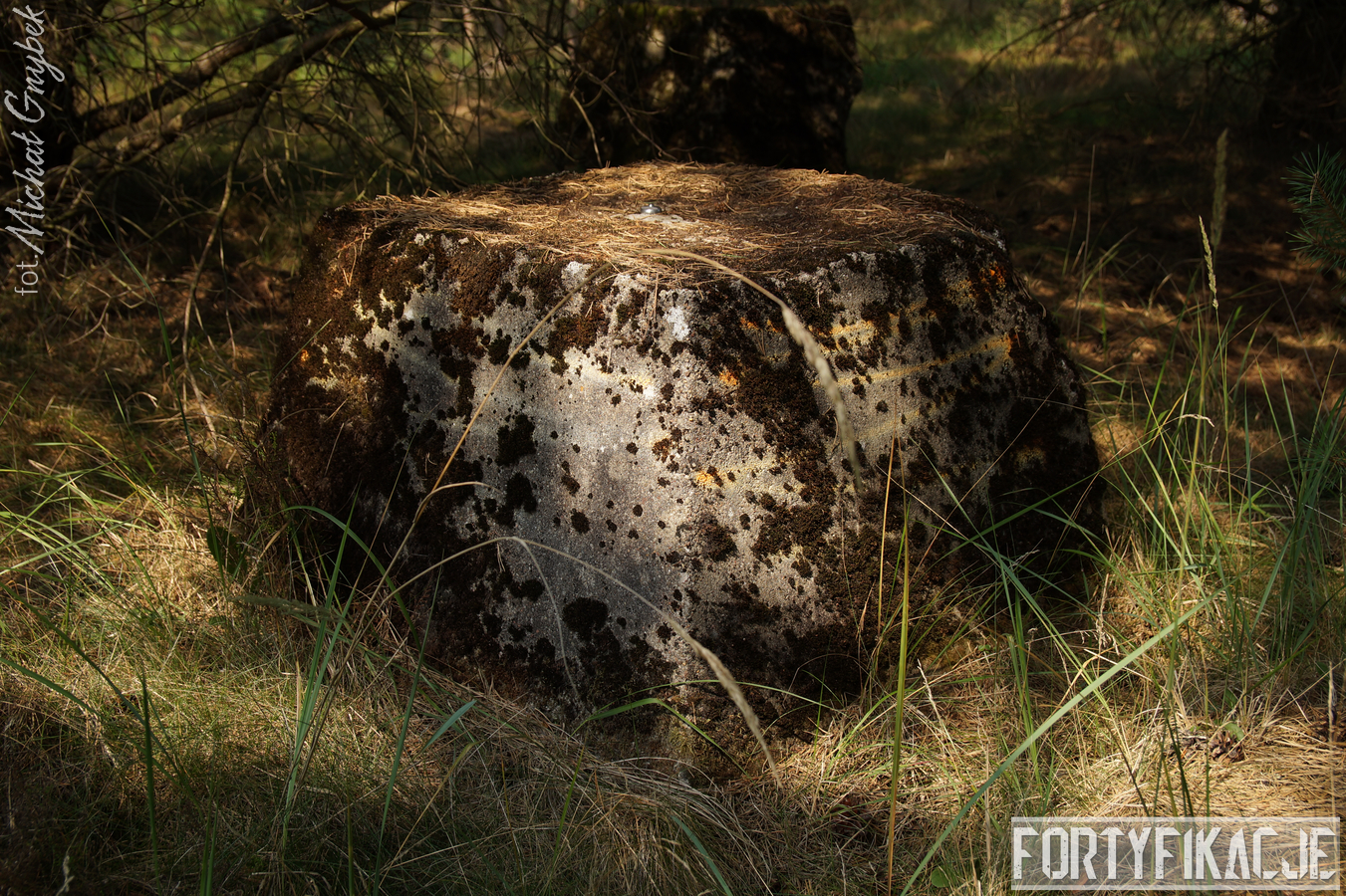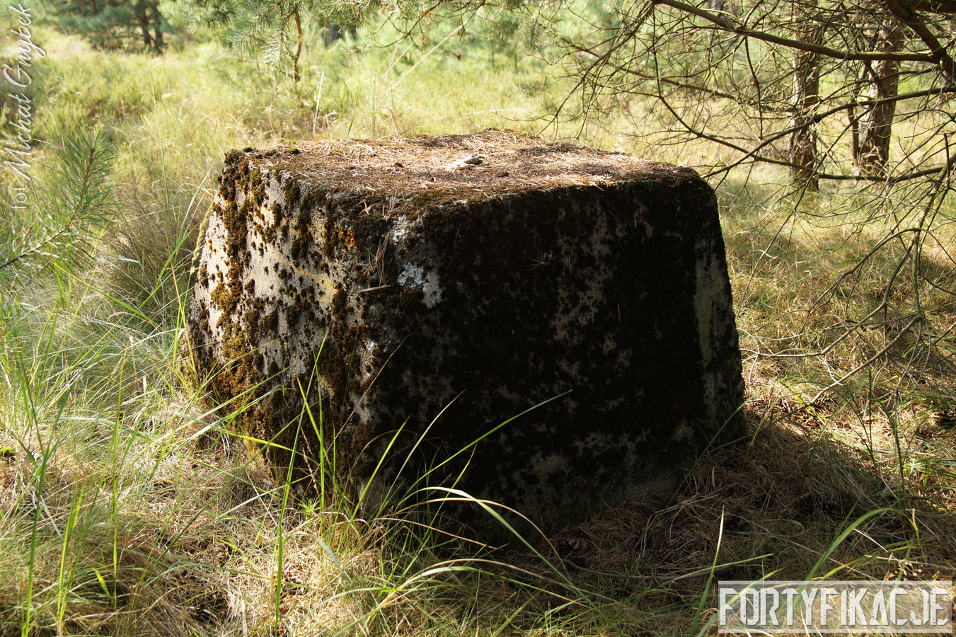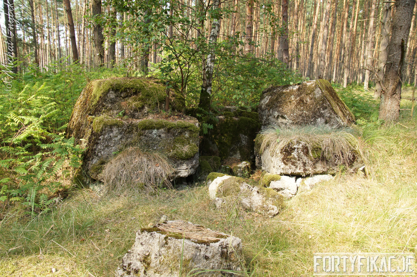 Druga podstawa pod radar śledzący FuMG-65 Würzburg-Riese, mimo że zniszczona, to pod paroma względami wydaje się ciekawsza. Zniszczenia - trudno powiedzieć jaka była ich geneza - odsłoniły ciekawe elementy konstrukcyjne. Zostały odsłonięte kotwy na których osadzona była platforma radaru. Rozłupane kęsy żelbetu odsłaniają również skromne jego zbrojenie składające się ze splecionych ze sobą dwóch prętów.