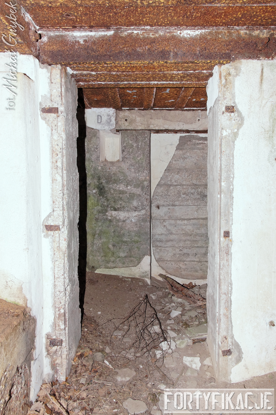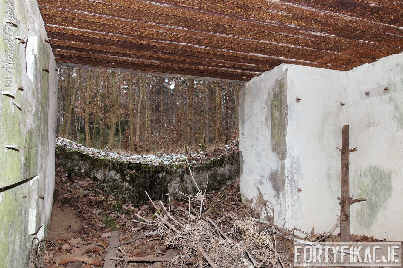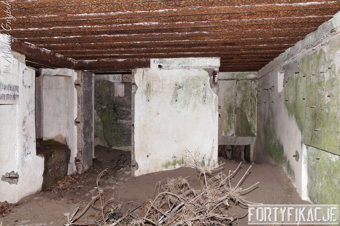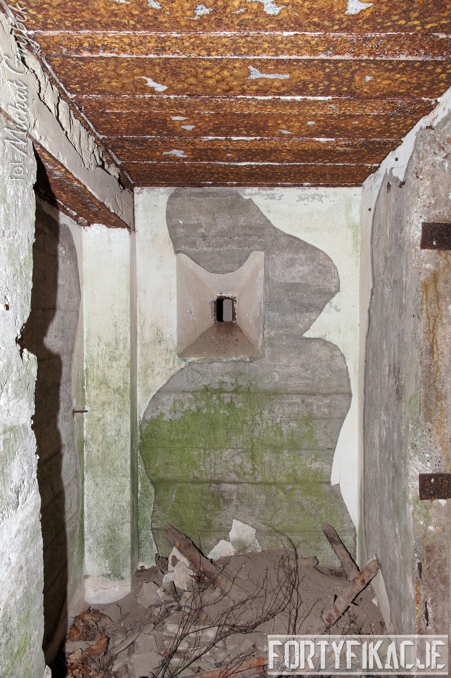 Najobszerniejsze pomieszczenie stanowiła izba bojowa. Tu znajdowały się dwa stanowiska bojowe. Pierwsze, najważniejsze, z sMG 08, gdzie załoga osłonięta była przez płytę stalową 7P7. Drugie stanowiło stanowisko obrony wewnętrznej, gdzie obrońca dysponujący bronią ręczną mógł liczyć na ochronę w postaci pancerza skrzynkowego, znajdowało się ono w wydzielonej wnęce. Ponadto pomieszczenie to spełniało bardzo ograniczone funkcje socjalne. Załoga miała możliwość wypoczynku na pryczach. Do schronu wtłaczane było czyste powietrze poprzez system wentylacyjny wspomagany filtrowentylatorem. Ujście powietrza miał zapewnić otwór strzelniczy w płycie stalowej. Ogrzewanie umożliwiał piecyk. Załoga posiadała łączność ze światem zewnętrznym, którą gwarantował telefon. Przebieg instalacji telefonicznej można z łatwością prześledzić obserwując niszę opisaną jako "Kabel". Głowica kablowa znajdowała się w głębokiej wnęce w izbie bojowej, tej samej, gdzie ulokowano stanowisko obrony wewnętrznej.