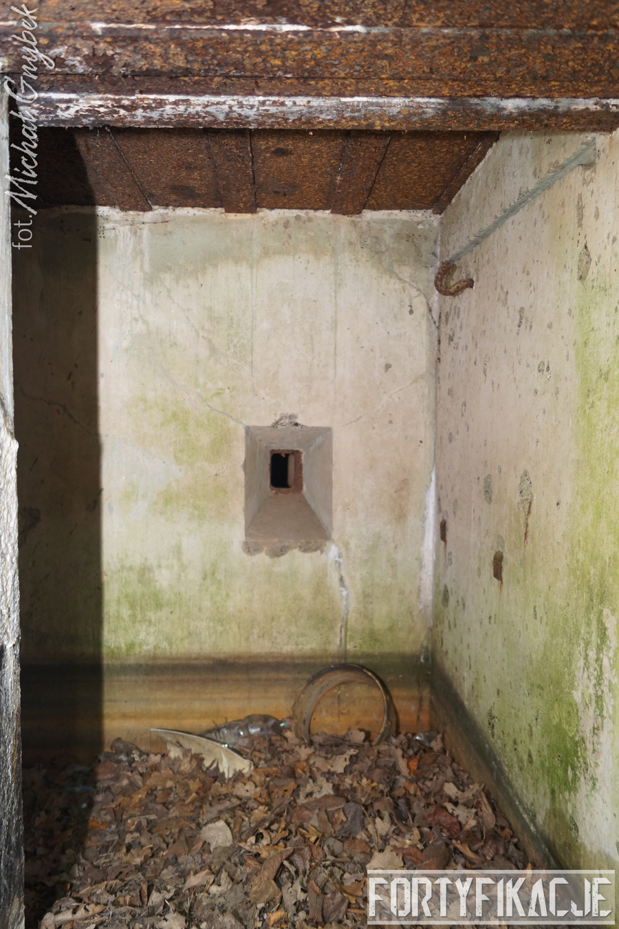 Schron swą aparycją zachęca do przekroczenia jednego z dwóch progów. Ale uwaga! Bywa zalewany i to w dosyć dużym stopniu! Jego wnętrze nosi również ślady działalności saperów i/lub złomiarzy. Niestety, przy tym przez lokalsów/wędkarzy (?) bywa traktowany jako ekwiwalent hasioka... Szkoda...