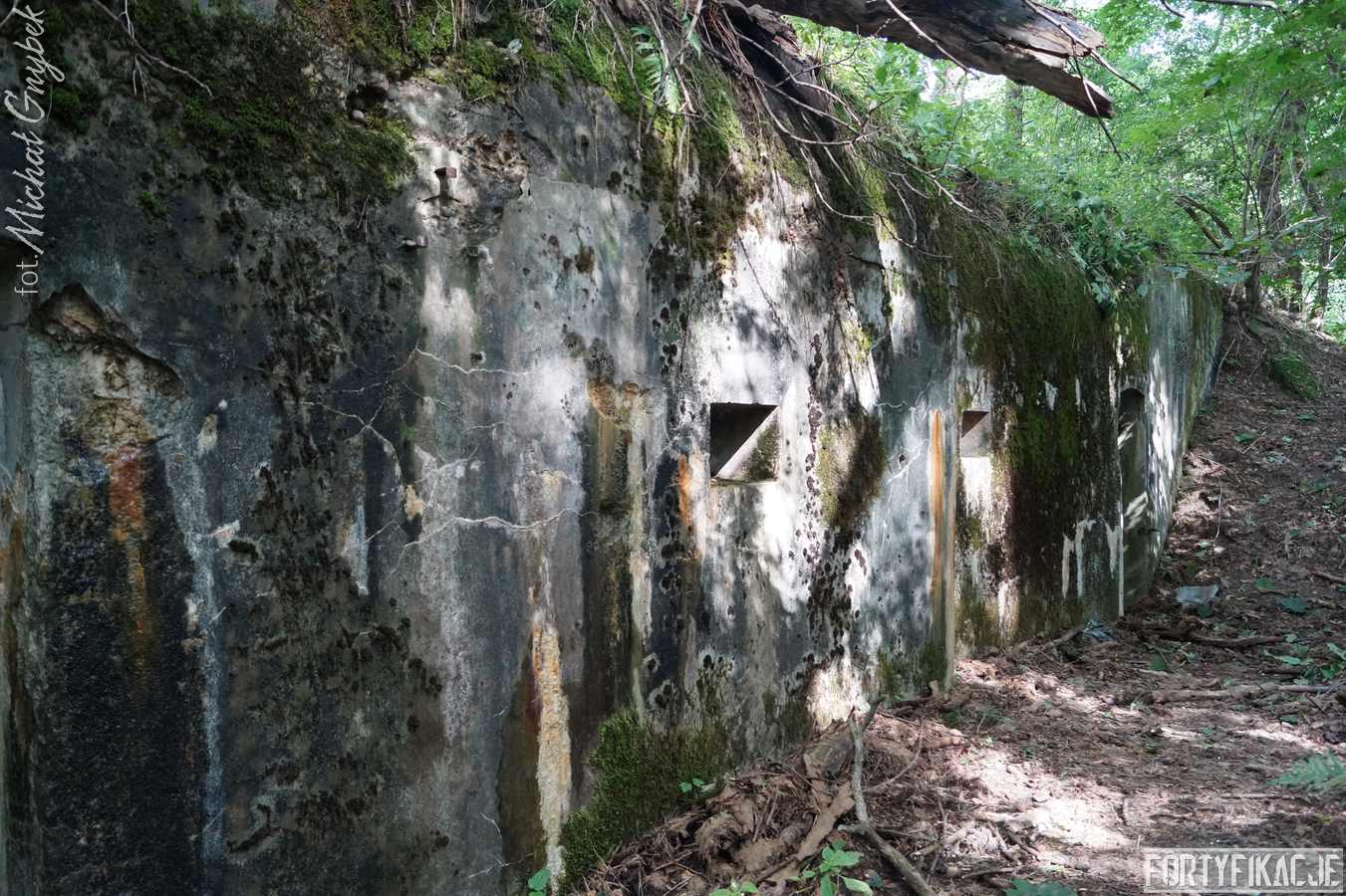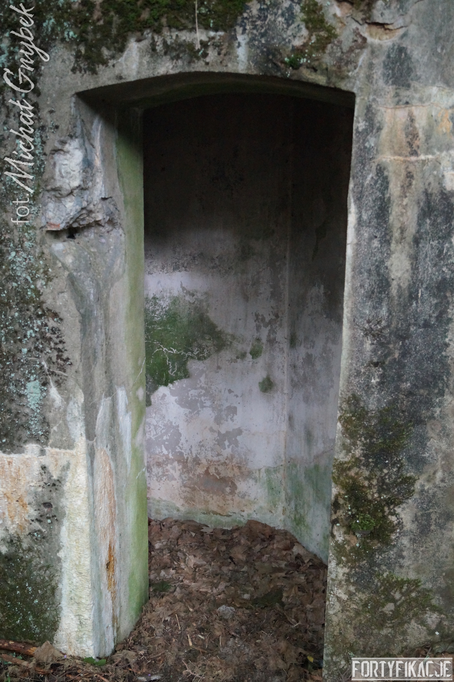 Sprawdźmy co kryje wnętrze schronu! Tu ostrożnie! Obiekt nie jest zniszczony, więc zagrożeniem nie są tu kęsy gruzu, czy nie zabezpieczone otwory. Natomiast uważać trzeba na potencjalnych lokatorów: zaskoczeni naszą obecnością nie zawsze będą gościnni! "Miejski" charakter twierdzy jest tu niestety katalizatorem takich nieprzewidywalnych w przebiegu spotkań... Ale do meritum: U10 IV był schronem 5-komorowym, tzn. posiadał 5 pomieszczeń, które mogły służyć dwóm plutonom lub jednej kompanii. Konstrukcja pomieszczeń była prosta - oparta o łukowato wygięte arkusze blachy falistej typu "H" - Heinrich. Przestrzeń pomiędzy elewacją wejściową a komorami stanowiła swoisty korytarz komunikacyjny. Znaleźć możemy tu pozostałości po drewnianych prowadnicach otworów okiennych. Warto zwrócić uwagę na wewnętrzną stronę elewacji szyjowej - widoczne są na niej zacieki powstałe w wyniku erozji. W jej wyniku woda przenika do wnętrza ściany, gdzie stalowe zbrojenie ulega korozji. Jest to widoczny dowód, iż do wzniesienia tejże elewacji użyto nie tyle betonu co żelbetu.