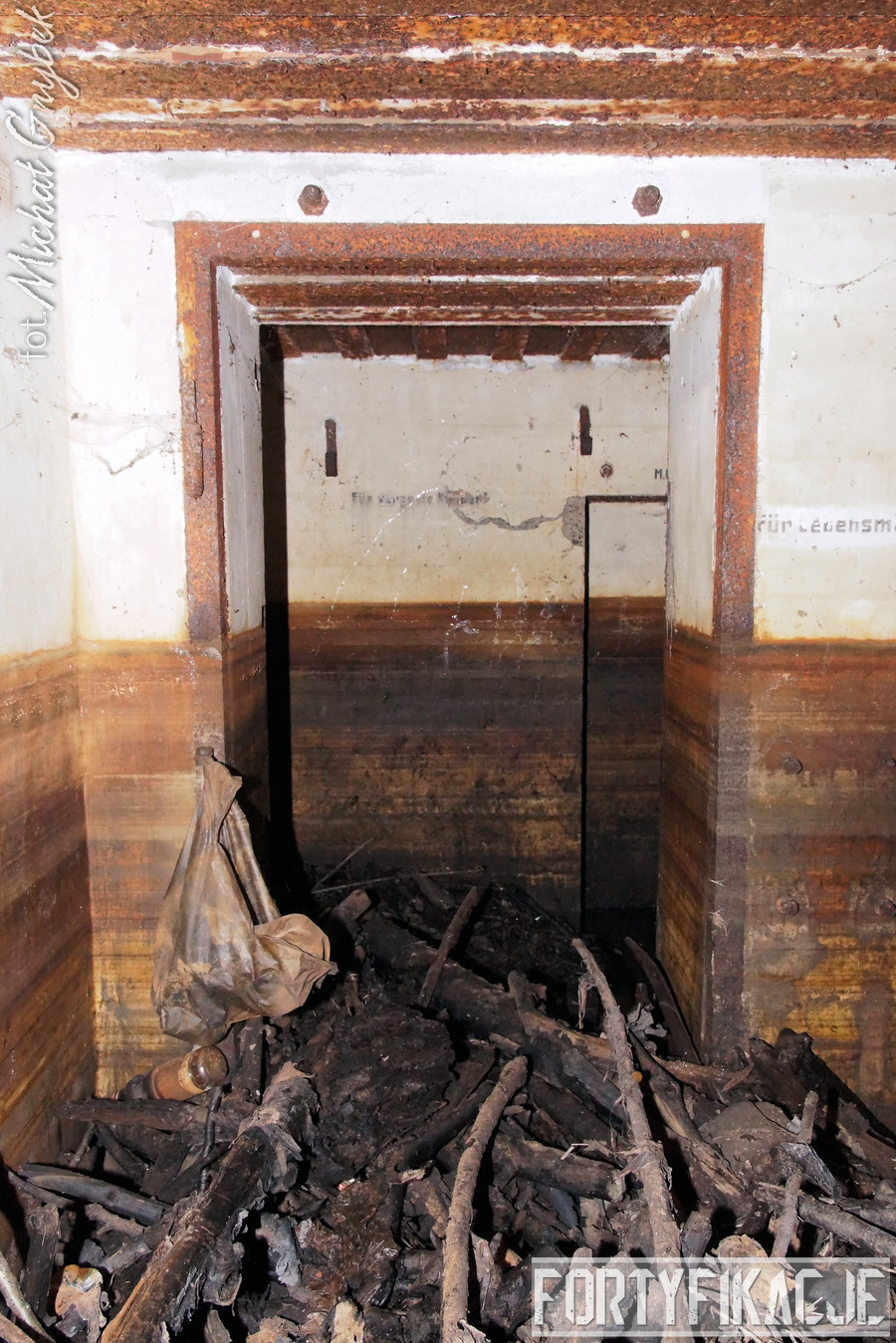 Przez długi czas wnętrze schronu było praktycznie niedostępne. Mimo, że wznoszący go Niemcy zadbali o zabezpieczenie konstrukcji przed przenikaniem lub podniesieniem się wód, to z biegiem czasu Unterstand nabrał wody. Ślady na ścianach wskazują, że jej poziom potrafił być naprawdę wysoki. Prócz wody obiekt wypełniały śmieci i błoto. Od pewnego czasu schrony Pozycji Nysy znalazły swych opiekunów. Z charakteryzowanego w niniejszym poście stanowiska została odpompowana woda. Sukcesywnie też zaczęto oczyszczać go z zalegających go mułu i odpadów. Umożliwiło to eksplorację obiektu! Kimkolwiek jesteście - dziękuję! Mam nadzieję, że opieka ta jest kontynuowana! 😏