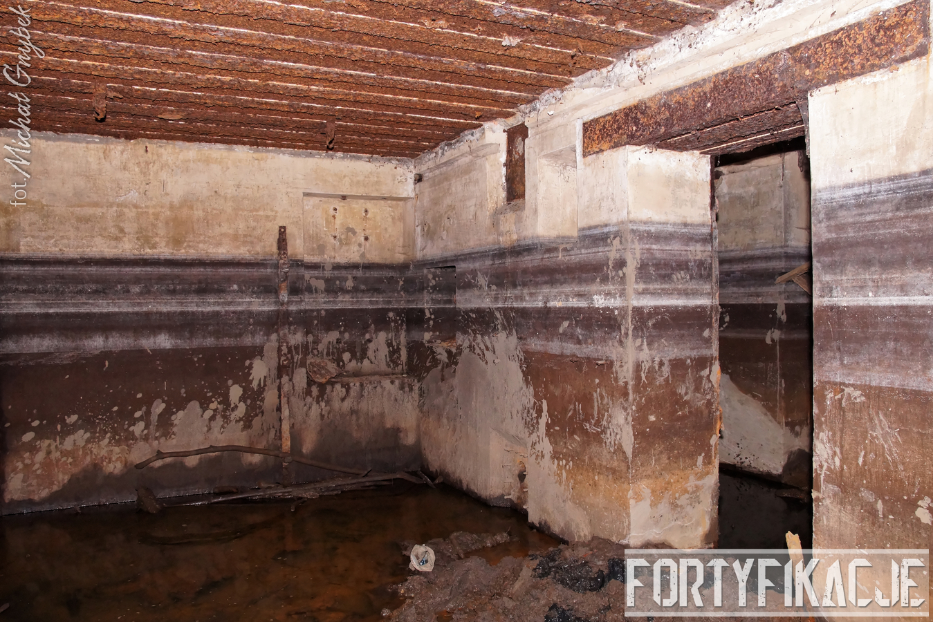 izba wypoczynku; łatwo tu sprawdzić ilu żołnierzy jednocześnie wypoczywało, na ścianach zachowały się nie tylko ślady, ale wręcz stelaże, na których wieszano prycze; zachowały się oba stanowiska obrony wewnętrznej z pancerzami typu 48P8; ślady na ścianach wskazują, że schron wyposażony był w filtrowentylator, telefon, a ciepło miał zapewniać piecyk okopowy.