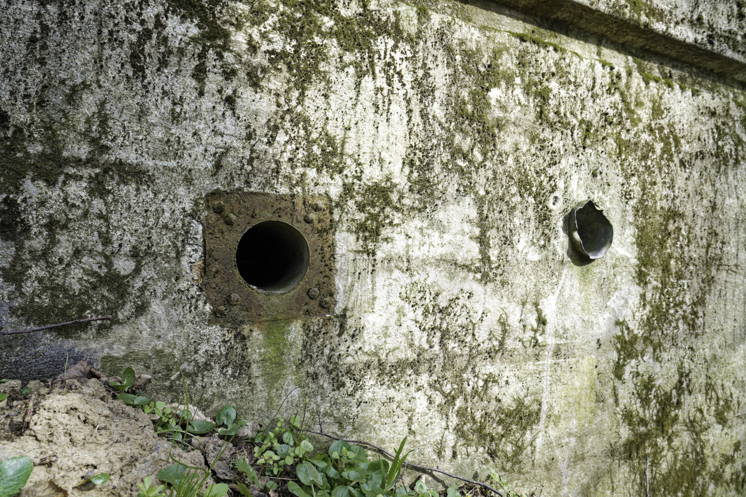 | Stanowisko km z płytą ze strzelnicą [budowa czasu pokoju] L. 4 (131) (Unterstand für ein MG mit Schartenplatte [Friedensbau] L. 4 [131]) |