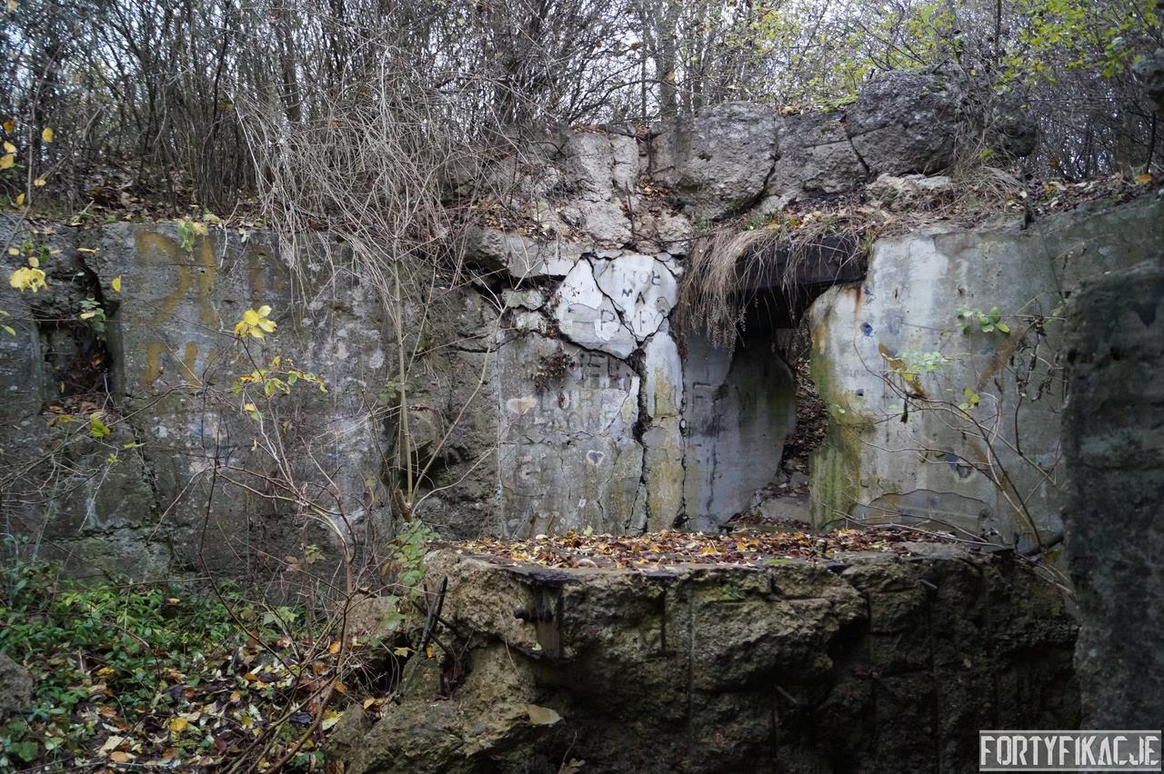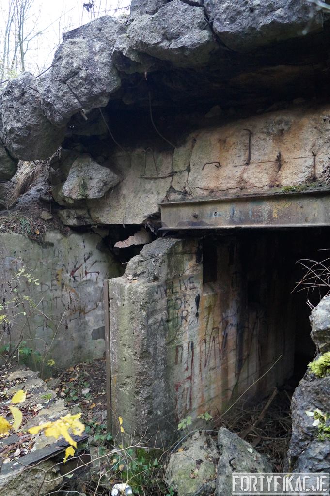 Czasami bywa i tak, że i w porze jesienno-zimowej poszukiwany schron skutecznie skrywa się przed eksploratorami. Tak właśnie jest ze schronami Pommernstellung w okolicach Santoka, szczególnie z tymi ukrytymi na stromym zboczu nadwarciańskiej moreny. Jeden z nich mogą Państwo obejrzeć na poniższych zdjęciach. Jego zadaniem było ryglowanie drogi biegnącej wąwozem w głąb pozycji w kierunku północnym.
