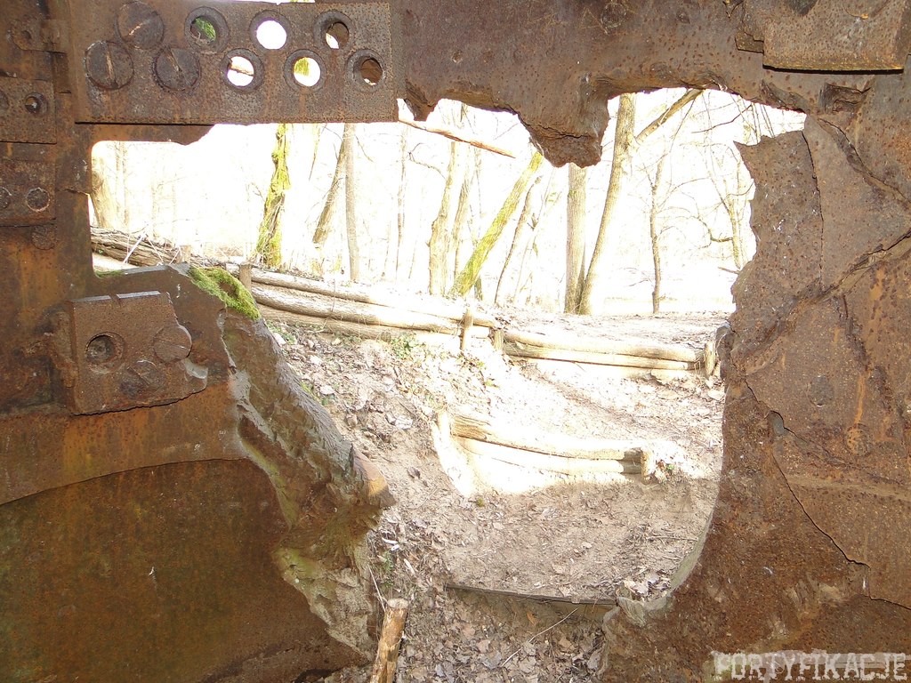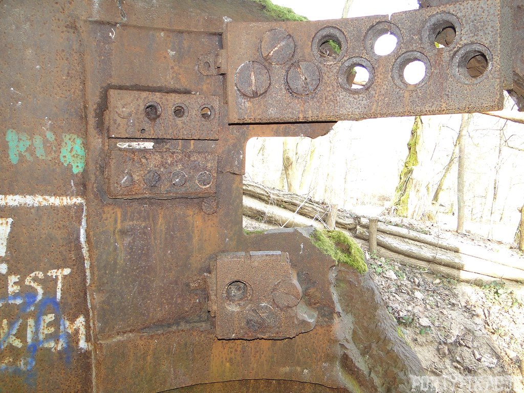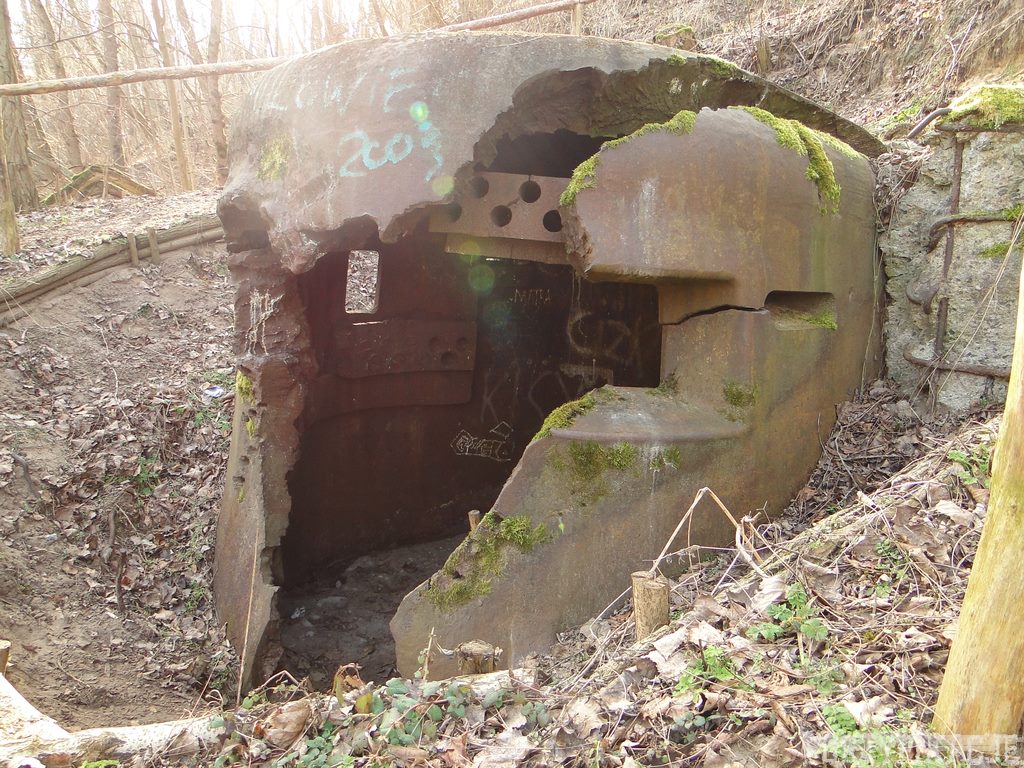 Werkgruppe "Ludendorff"! I obiekt bardzo dla niej charakterystyczny - Pz. W. 867, zwany przez niektórych "hełmem Lorda Vedera". Obiekt z całej Werkgruppe ocalał w chyba najwyższym stopniu - w efektowny sposób została tutaj uszkodzona jedynie kopuła 2P7, którą, prócz eksplozji, zniszczył również ogień prowadzony w jej stronę. Na powierzchni pancerza widać efekty nieskutecznego ognia: zagłębienia, ślady, rykoszety... Cały Stand (?) miał formę 3-kondygnacyjnej wieży połączonej z Pz. W. 865 podziemnym korytarzem.