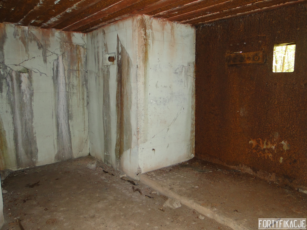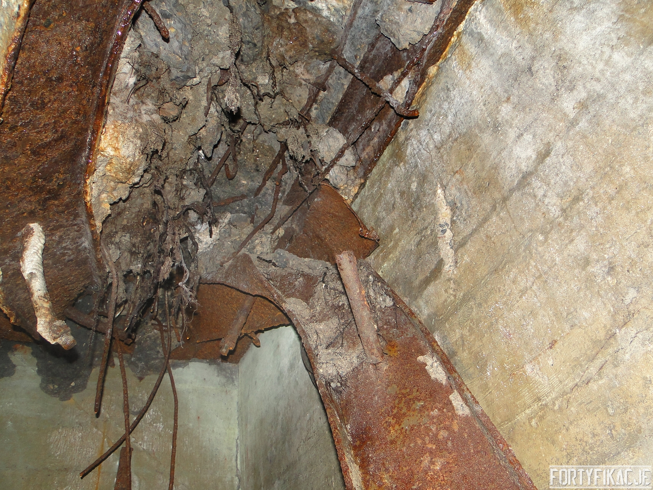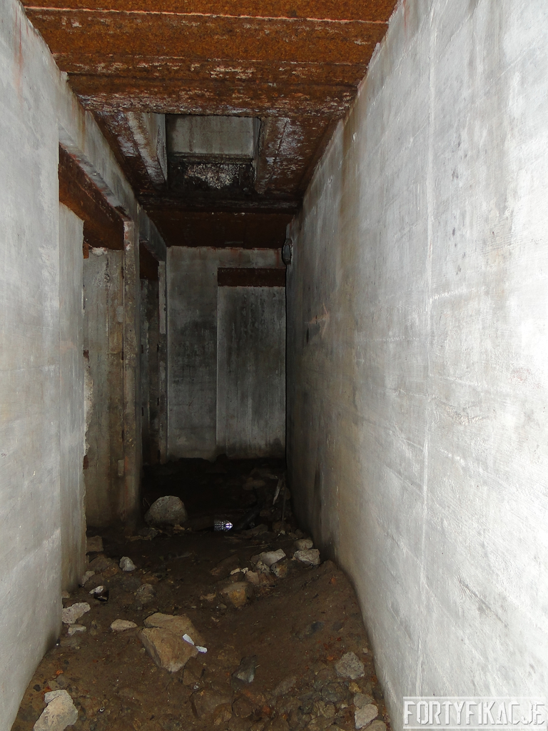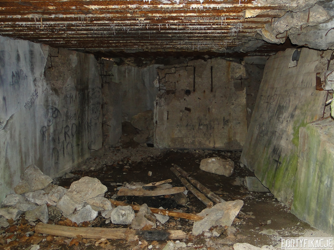 Wejdźmy na pierwszą i najwyższą kondygnację. Mimo dużych zniszczeń, które dotknęły najmocniej właśnie tą kondygnację można tu znaleźć kilka interesujących pomieszczeń i pozostałości po wyposażeniu. Zachowała się kazamata z płytą stalową 7P7 oraz izby pogotowia i załogi. Duża część tej kondygnacji jest zasypana całkowicie gruzem.
