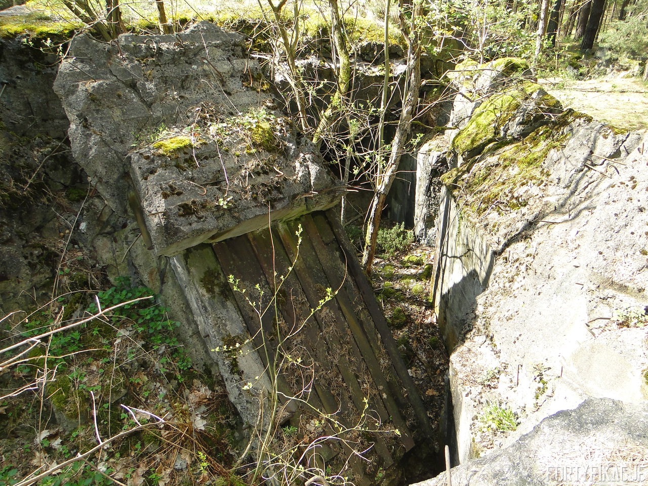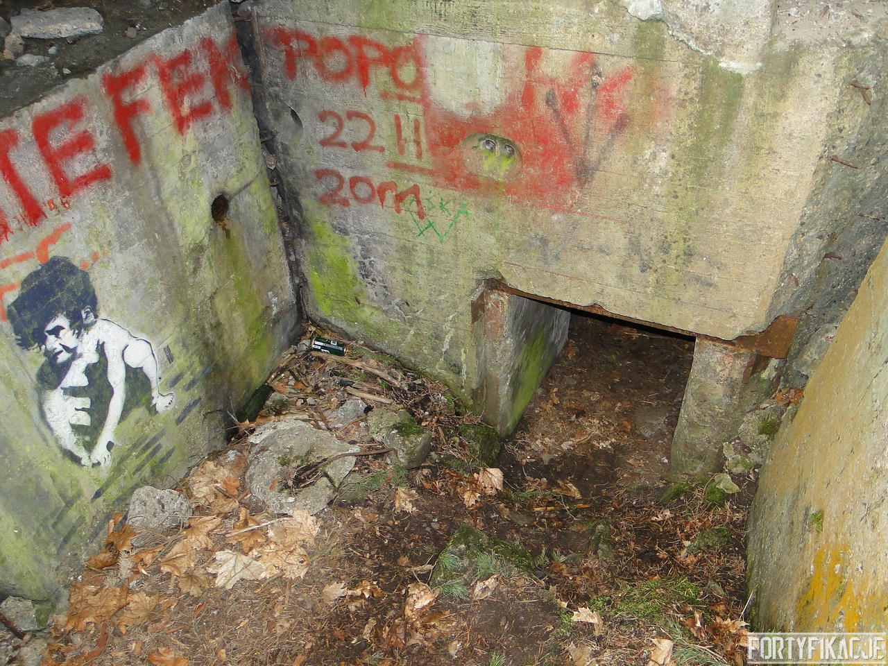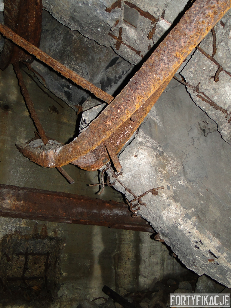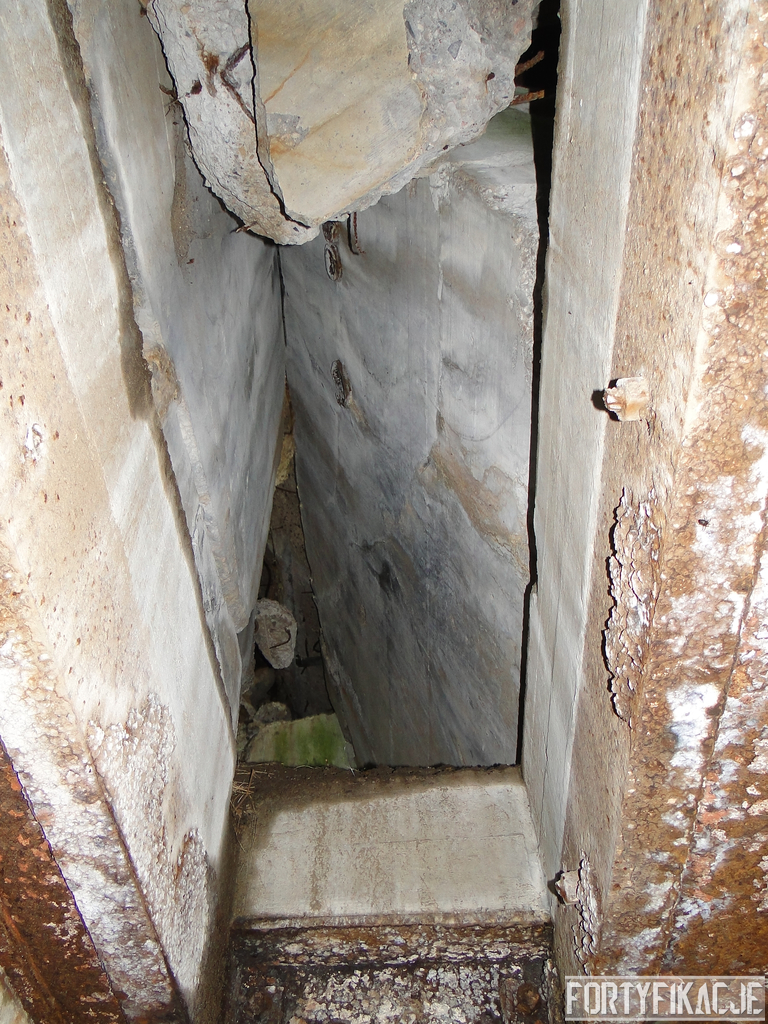 Wejdźmy na pierwszą i najwyższą kondygnację. Mimo dużych zniszczeń, które dotknęły najmocniej właśnie tą kondygnację można tu znaleźć kilka interesujących pomieszczeń i pozostałości po wyposażeniu. Zachowała się kazamata z płytą stalową 7P7 oraz izby pogotowia i załogi. Duża część tej kondygnacji jest zasypana całkowicie gruzem.