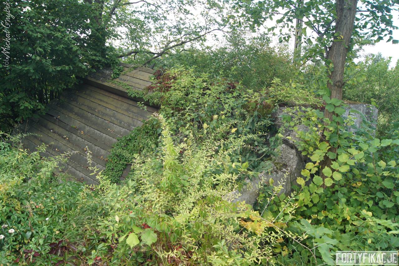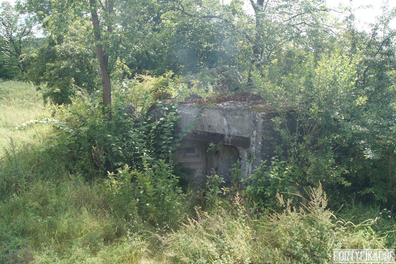 Powracamy na Wał Pomorskim :) Zmieńmy natomiast odcinek na okolice Gorzowa, a dokładnie na brzeg Warty, gdzieś pomiędzy Czechowem a Santokiem. Jednym ze schronów, które możemy tu znaleźć jest standardowy, typu B1-1, obiekt wkomponowany w nasyp kolejowy. Z drogi praktycznie niewidoczny. Uległ dość dużym zniszczeniom i dziś stanowi trwałą, ale malowniczą ruinę... Mimo uszkodzeń w miarę dobrym stanie przetrwał blok wejściowy wraz z flankującą go strzelnicą.