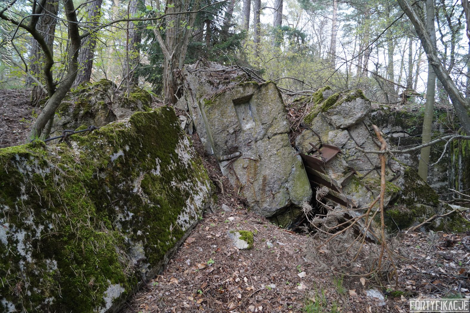 Tak jak obiecałem - zapraszam do środka! ;) Schron był obiektem średniej wielkości, o stosunkowo niskiej kat. odporności "C". Niska odporność spowodowana była tym, iż schron osłaniał niezwykle trudny terenowo odcinek (las, wzniesienia, bagna). Ogółem składał się z trzech pomieszczeń: