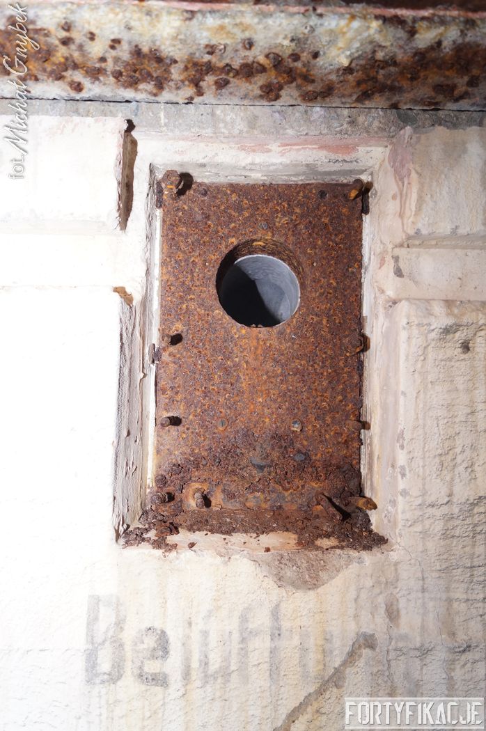 - izby bojowej, w której obrońcy osłonięci byli płytą stalową 10P7, to to pomieszczenie uległo największym zniszczeniom.
