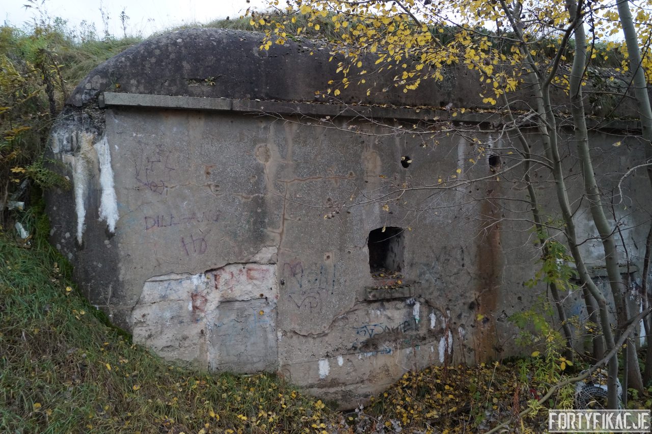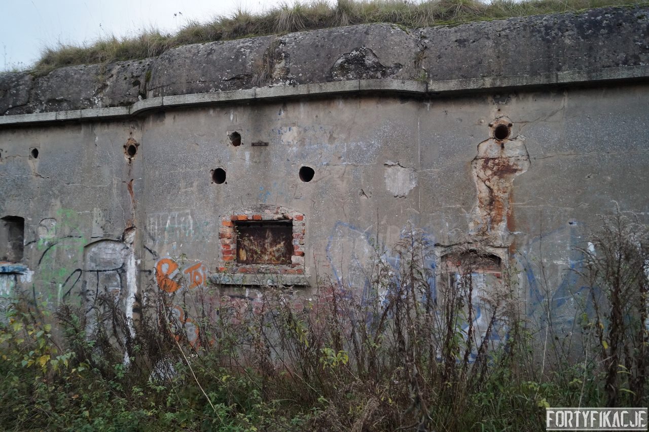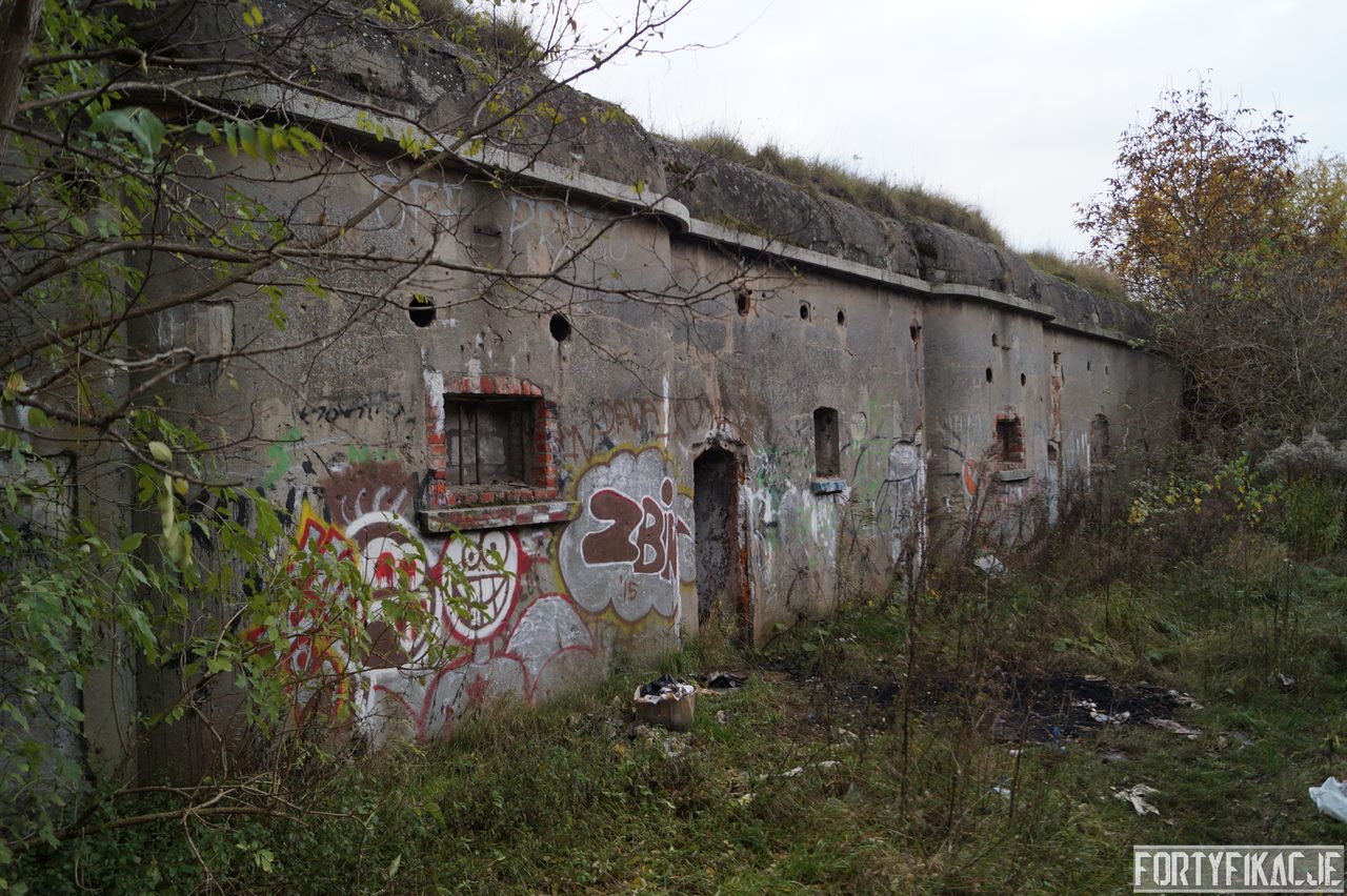 Jeden z kilku wzniesionych w latach 1903-1907 schronów wzmacniających międzypola twierdzy fortowej. Poniższy znajdował się pomiędzy fortem II a fortem IIa. Jako budulca użyto tu betonu. Obiekt częściowo zagłębiony był w ziemi. Schron posiadał 6 izb dla żołnierzy, ponadto latrynę, magazyn, studnię oraz łączący je korytarz komunikacyjny przylegający do elewacji szyjowej. Do schronu prowadziło 8 wejść - w J II część z nich jest zamurowanych.