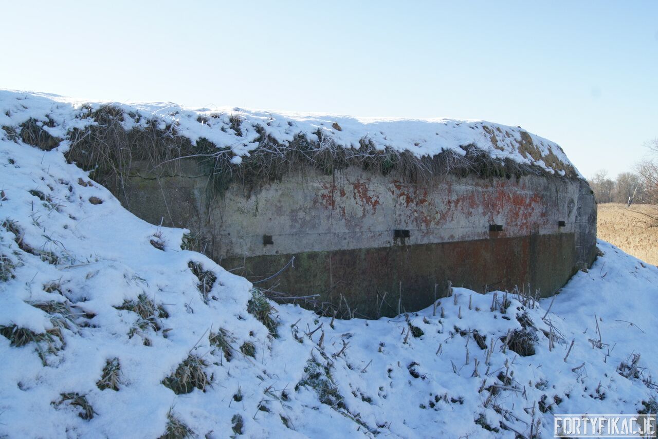 Przenosimy się w okolice Czerwieńska i Nietkowa. Jeśli komuś z Państwa jest trochę za gorąco, to proszę - trochę śniegu dla ochłody.  Stand wkomponowany był w wał przeciwpowodziowy (obecnie nadal nie zasypany!) i położony ok. 150m od brzegu Odry. Podobnie jak jego sąsiedzi zachowany w bardzo dobrym stanie - tylko eksplorować!