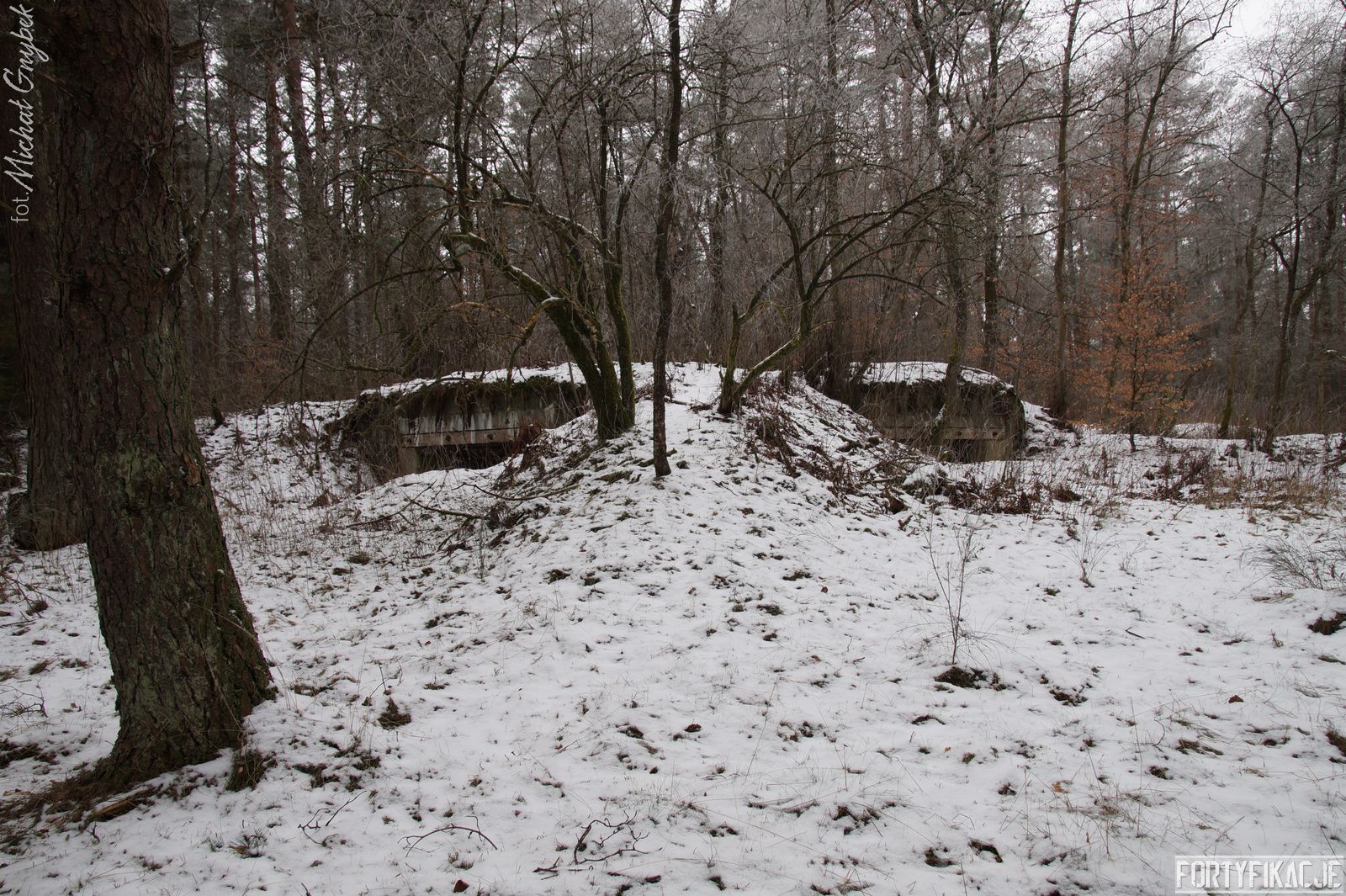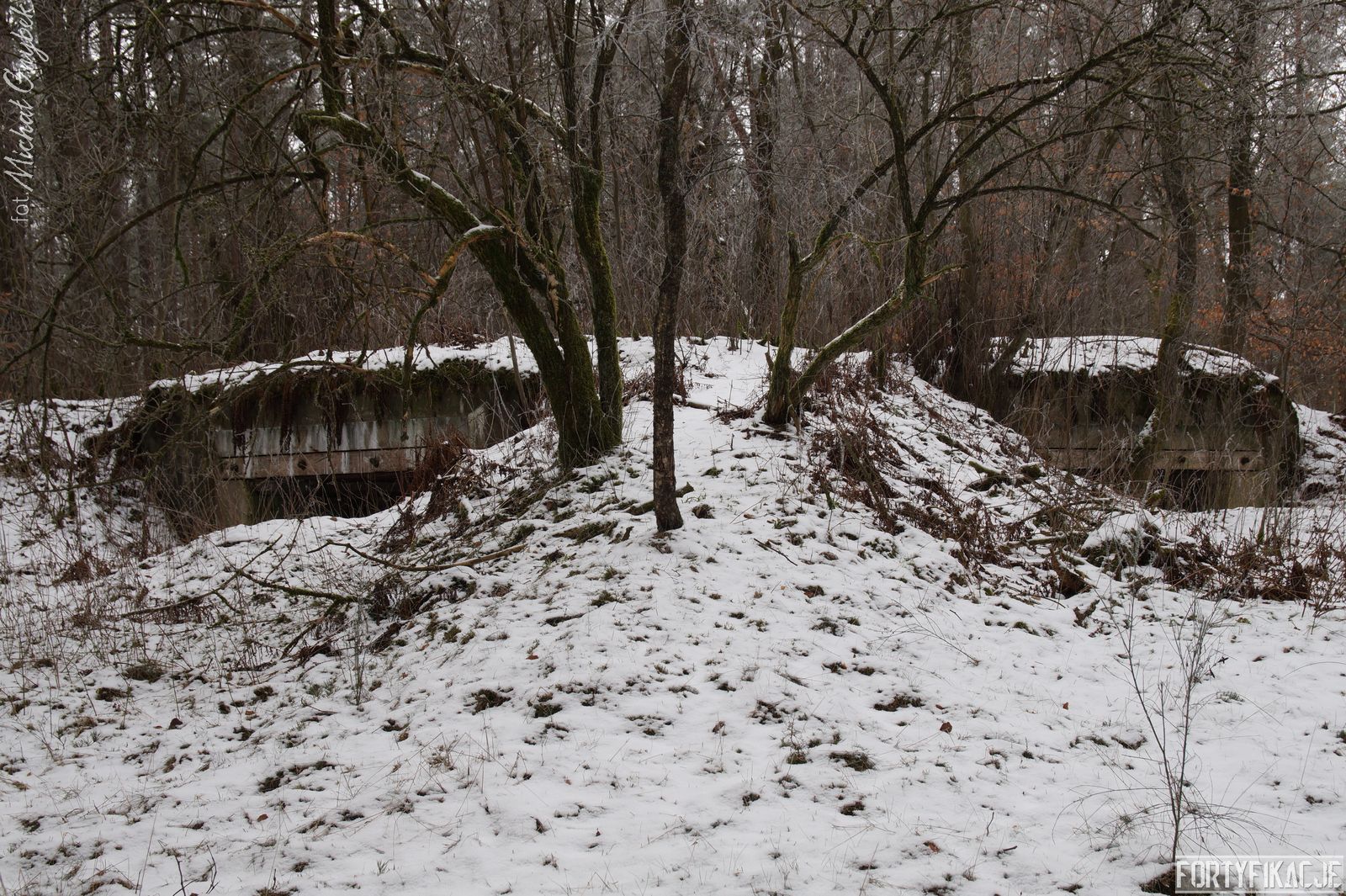 Na Pozycji Pomorskiej w rejonie Sępolna Wielkiego, Białego Boru oraz Dyminka byłem tylko raz niespełna 8 lat temu w 2010r... By nie rozpisywać się zbyt mocno, napiszę jedynie, że powrót w te okolice na dwa krótkie zimowe dni (13-14.02.2018r.) spędzone na penetracji w/w odcinków zrobiły na mnie piorunujące wrażenie. Przede wszystkim zachwycił mnie stan zachowania obiektów. Oczywiście z pancerzy pozostało tyle co nic, natomiast schrony najczęściej zachowane są w całości, a ich eksploracja daje czystą satysfakcję! Dzisiaj pragnę zaprezentować jeden z obiektów odcinka Karzenburg - M. 10*. Był to jeden z trzech schronów wybudowanych w ramach szańca - nietypowej dla standardów XX-wiecznych konstrukcji ziemnej (patrz wycinek mapy ISOK). Szaniec ten wzniesiono na północny-zachód od Jeziora Cieszęcino (niem. Tessentinsee), a Stand M. 10 był jego najdalej na północ wysuniętym stałym obiektem. Warto nadmienić, że był to schron dwusektorowy.