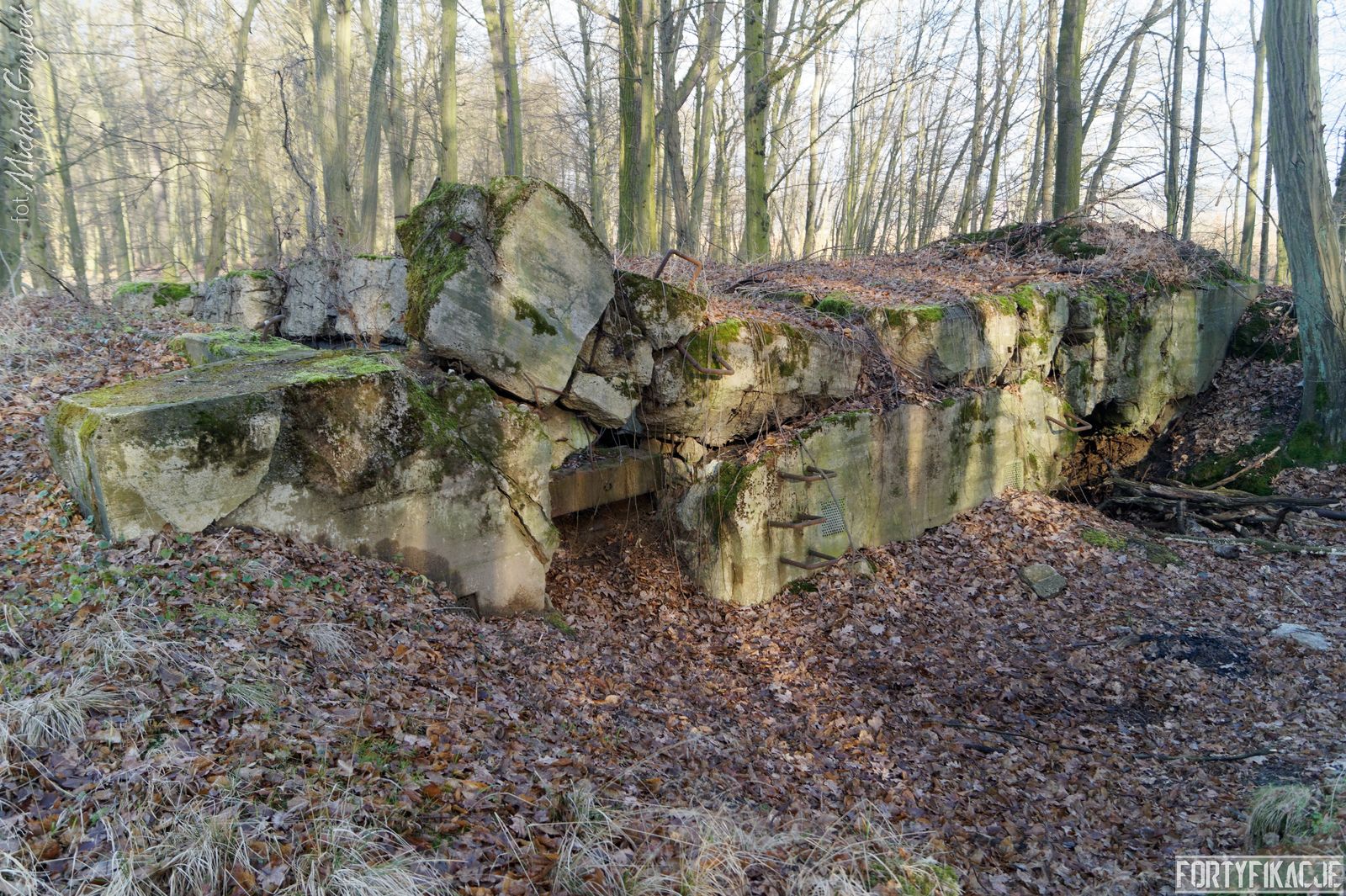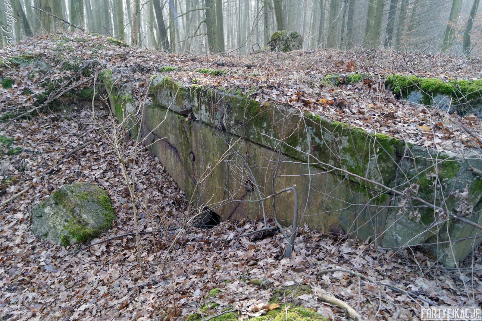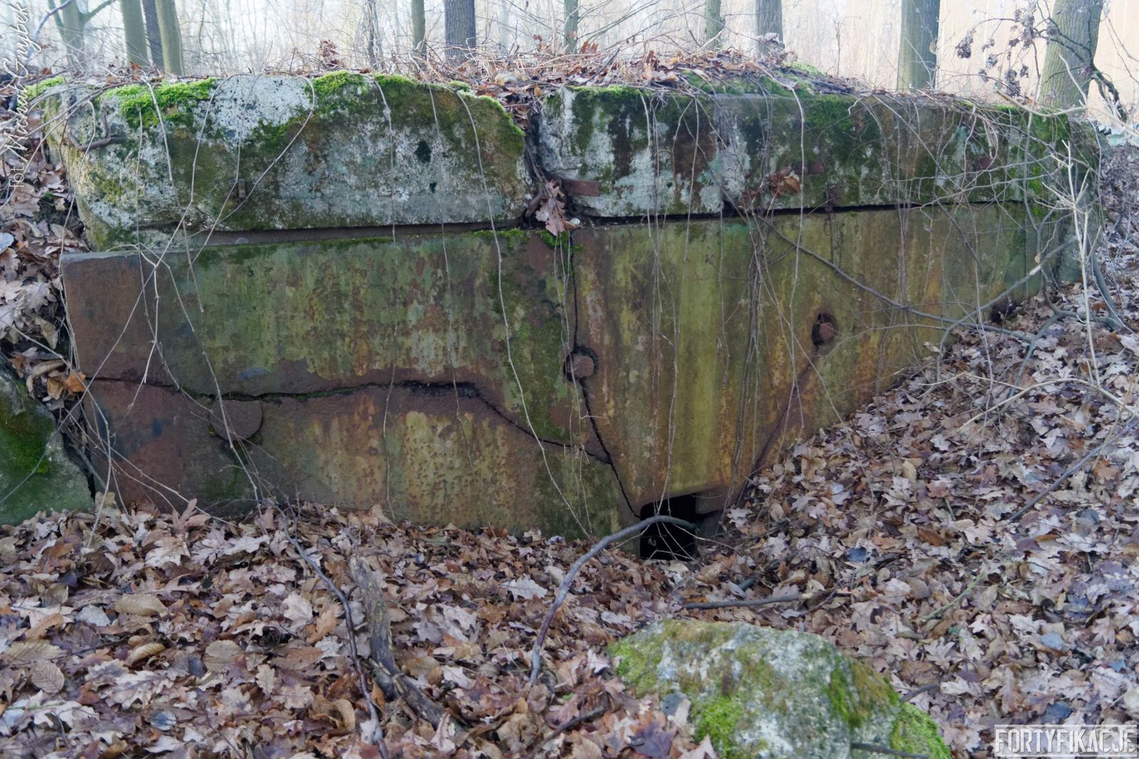Tym razem na zachód od Cigacic i Leśnej Góry. Rozpościera się tu niewielki kompleks leśny. Na jego obrzeżach, w pobliżu starorzecza, które mogli Państwo podziwiać we wczorajszym poście, znajdziemy cel naszej dzisiejszej eksploracji: schron bojowy nr 726! Obiekt został wysadzony, ale na tyle "nieumiejętnie", że jego bryła ogólnie się zachowała, a strop oderwany od ścian, mimo wszystko pozostał na miejscu... To sprawiło, że uchowała się w obiekcie płyta stalowa 7P7! Stand został wzniesiony w ramach tyłowej linii obrony rozciągającej się wzdłuż cięciwy łączącej brzegi zakola Odry.