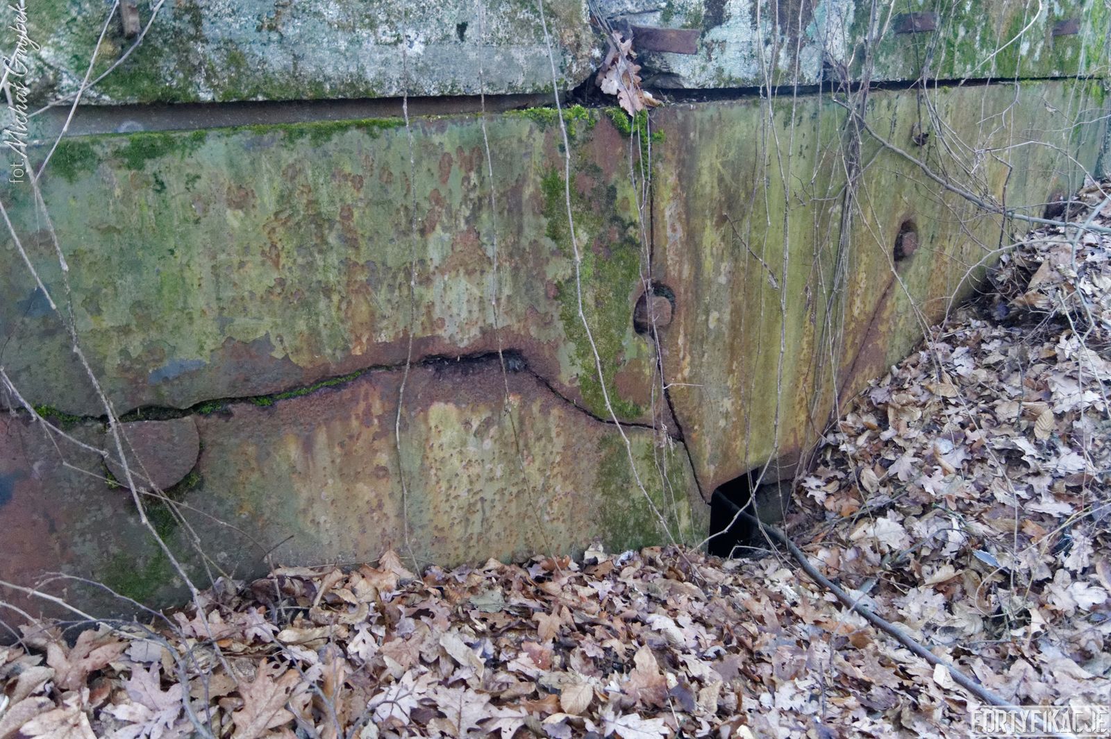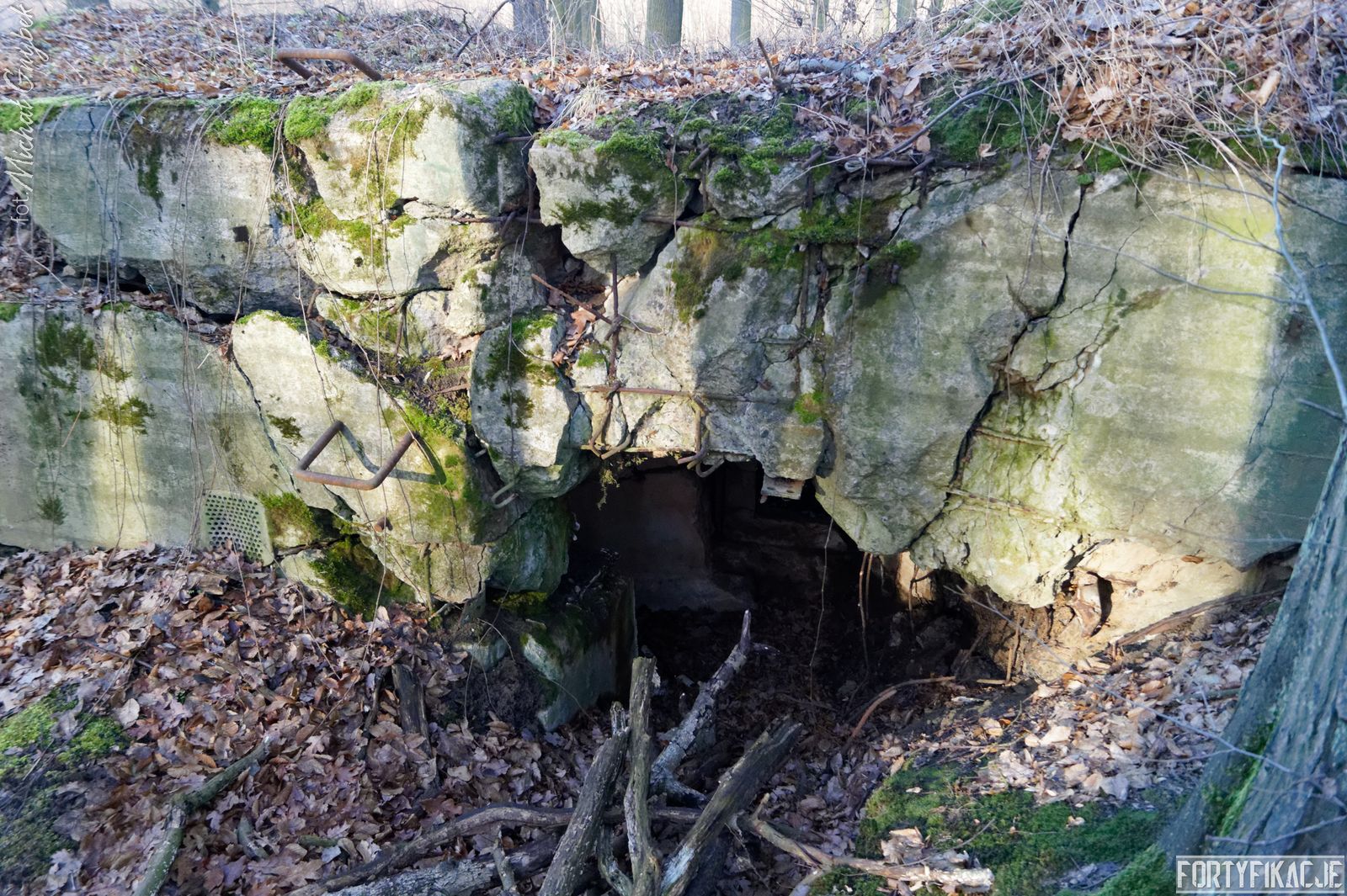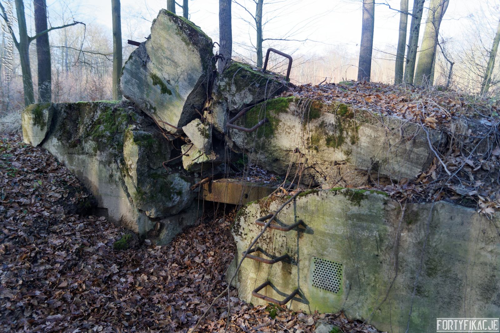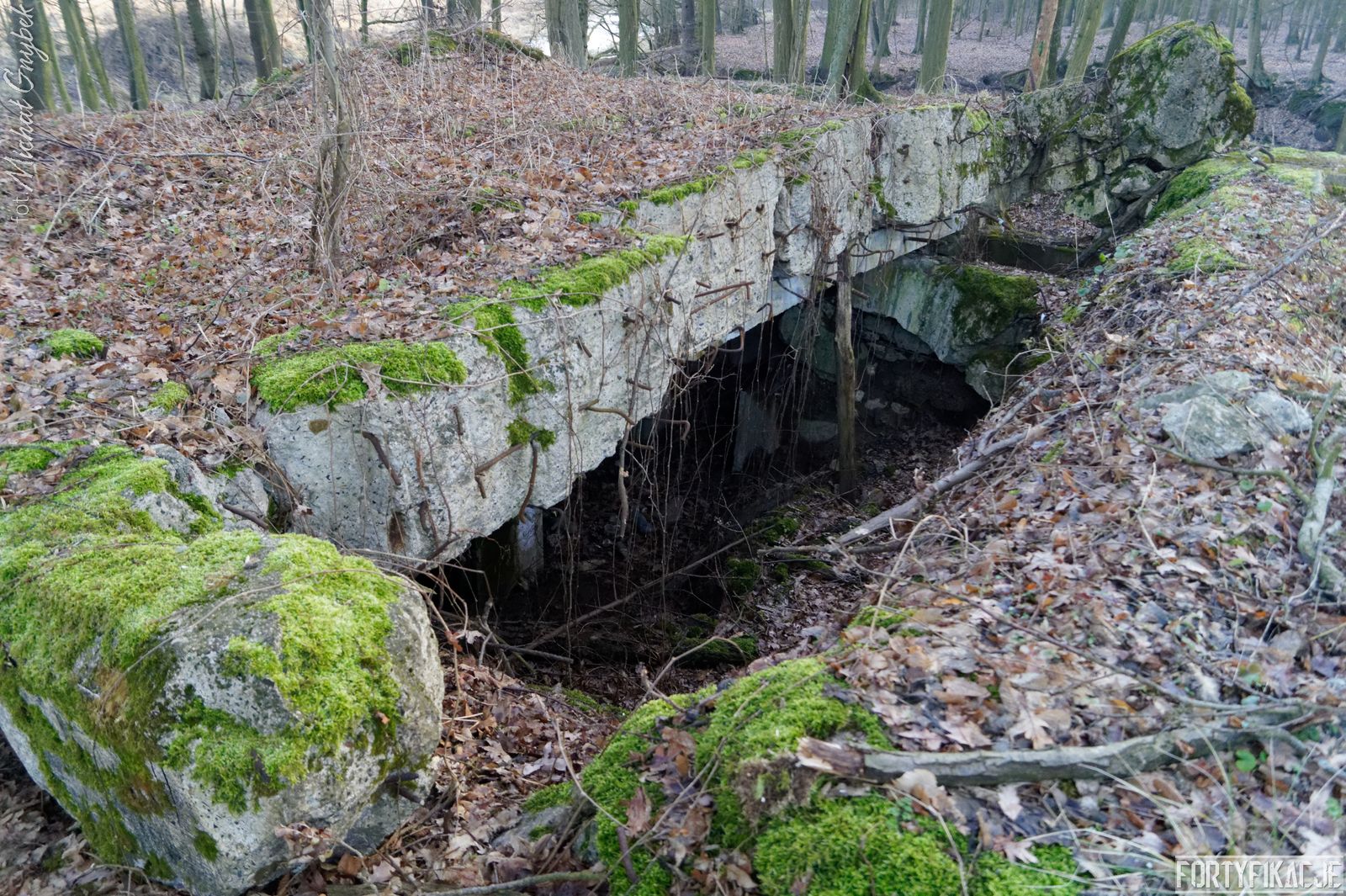 Tym razem na zachód od Cigacic i Leśnej Góry. Rozpościera się tu niewielki kompleks leśny. Na jego obrzeżach, w pobliżu starorzecza, które mogli Państwo podziwiać we wczorajszym poście, znajdziemy cel naszej dzisiejszej eksploracji: schron bojowy nr 726! Obiekt został wysadzony, ale na tyle "nieumiejętnie", że jego bryła ogólnie się zachowała, a strop oderwany od ścian, mimo wszystko pozostał na miejscu... To sprawiło, że uchowała się w obiekcie płyta stalowa 7P7! Stand został wzniesiony w ramach tyłowej linii obrony rozciągającej się wzdłuż cięciwy łączącej brzegi zakola Odry.