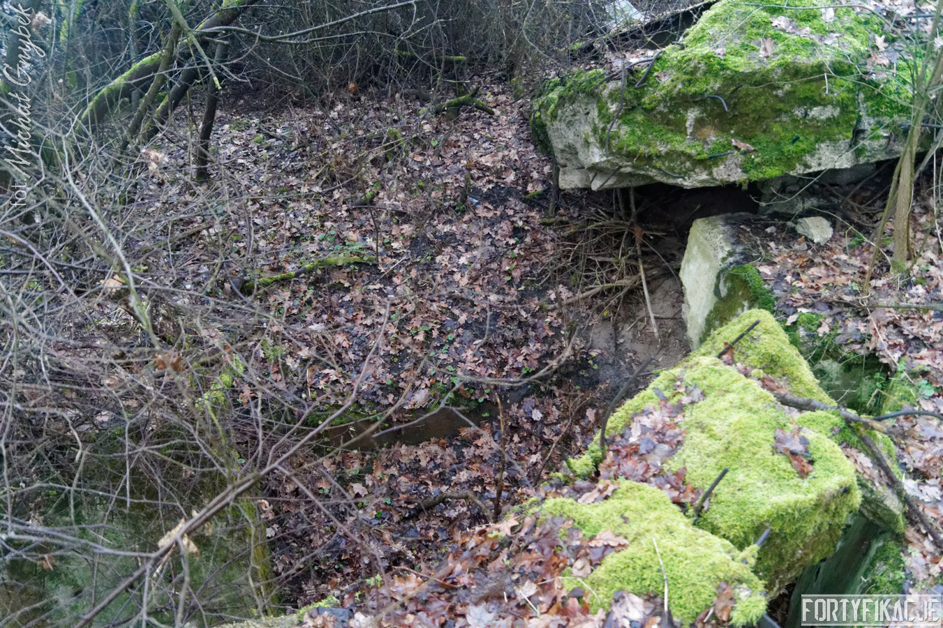 Bez trudu zlokalizujemy blok wejściowy, a następnie izbę załogi o sporych gabarytach. Najbardziej zniszczoną częścią schronu jest bojowo-obserwacyjna: obie izby bojowe znajdziemy bez trudu - dla poszukiwacza znajdują się tam dwie małe niespodzianki - fragmenty płyt stalowych 7P7, natomiast izbę obserwatora wypatrzy już oko bardziej doświadczonego eksploratora - to najbardziej zniszczone pomieszczenie, a szkoda, bo załoga miała tu do dyspozycji pancerz 9P7. Ruiny schronu najlepiej szukać w okresie jesienno-zimowym, znajduje się on w pobliżu Przystani Zielona Góra-Krępa, do której teoretycznie można dojechać samochodem... W rzeczywistości miejsce to jest podmokłe, a parking przypomina babrzysko dla dzików ![]()