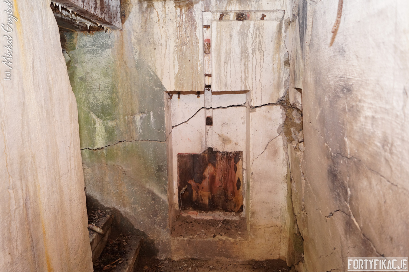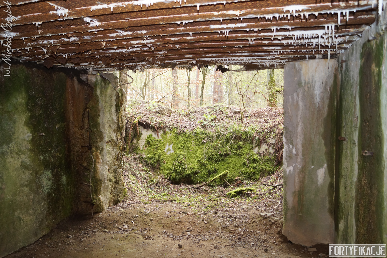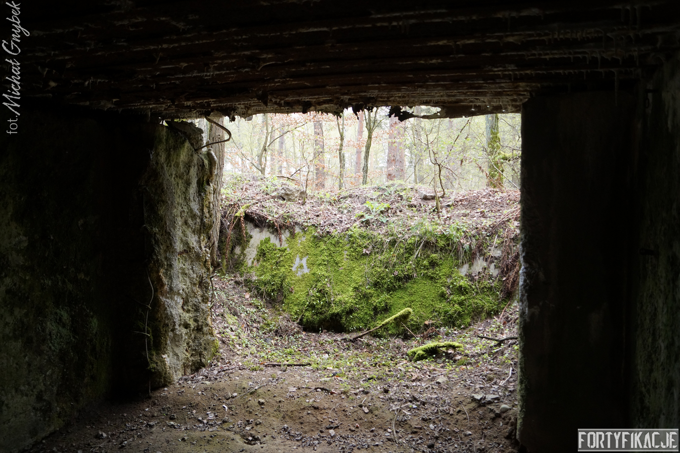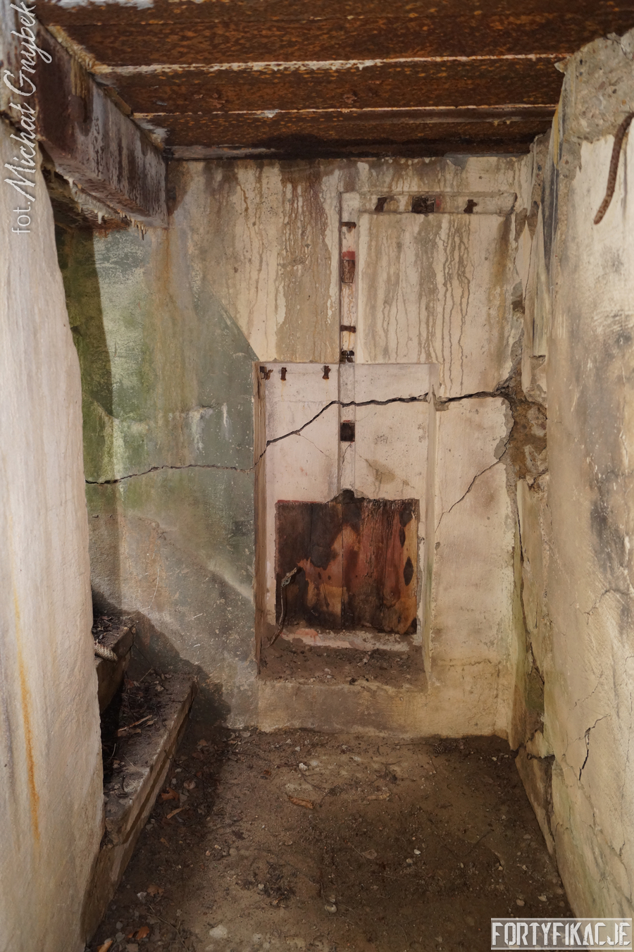 Oczywiście wydarto z niego wszystkie pancerze, ale na tyle "delikatnie", że nie naruszyło to zbytnio bryły obiektu! Bardzo ciekawą jawi się elewacja wejściowa. Znajduje się w niej jedno wejście oraz zewnętrzne stanowisko obserwatora. Warto zwrócić na nie uwagę, ponieważ zachował się tu fragment ościeżnicy drzwi, którymi stanowisko to było zamykane.