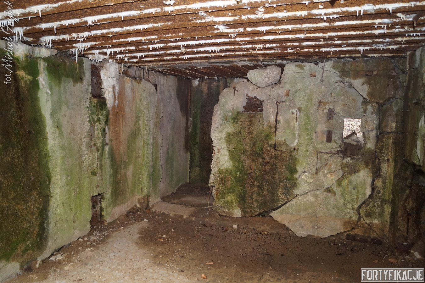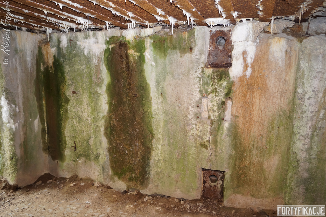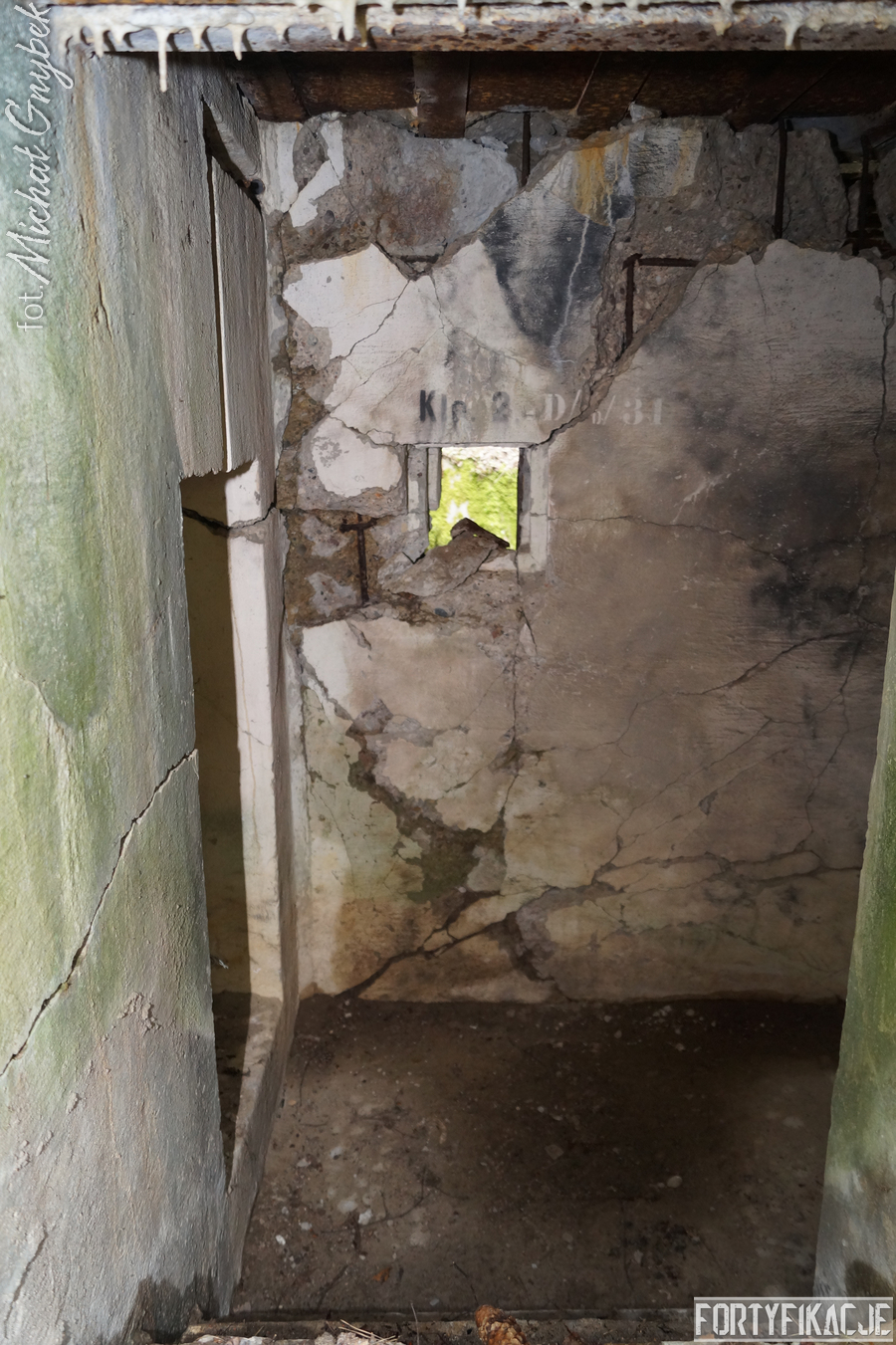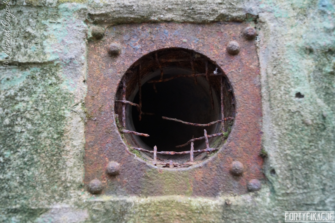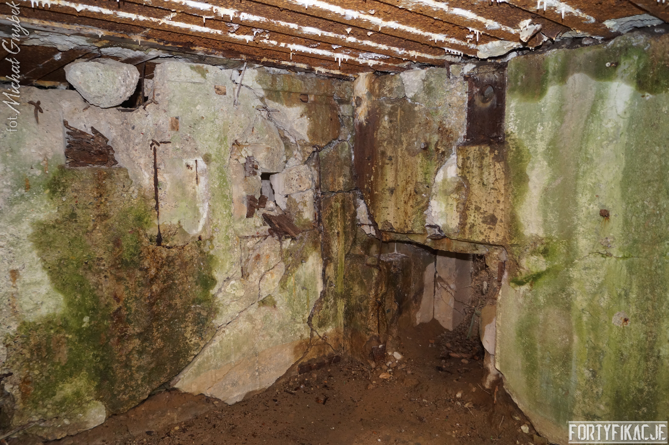 Oczywiście wydarto z niego wszystkie pancerze, ale na tyle "delikatnie", że nie naruszyło to zbytnio bryły obiektu! Bardzo ciekawą jawi się elewacja wejściowa. Znajduje się w niej jedno wejście oraz zewnętrzne stanowisko obserwatora. Warto zwrócić na nie uwagę, ponieważ zachował się tu fragment ościeżnicy drzwi, którymi stanowisko to było zamykane.