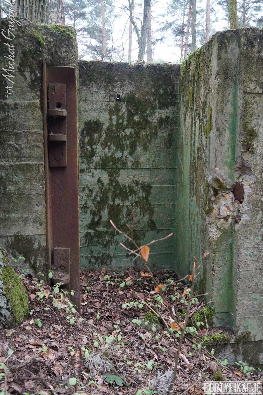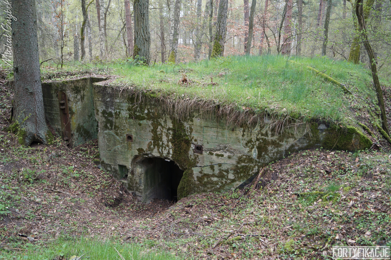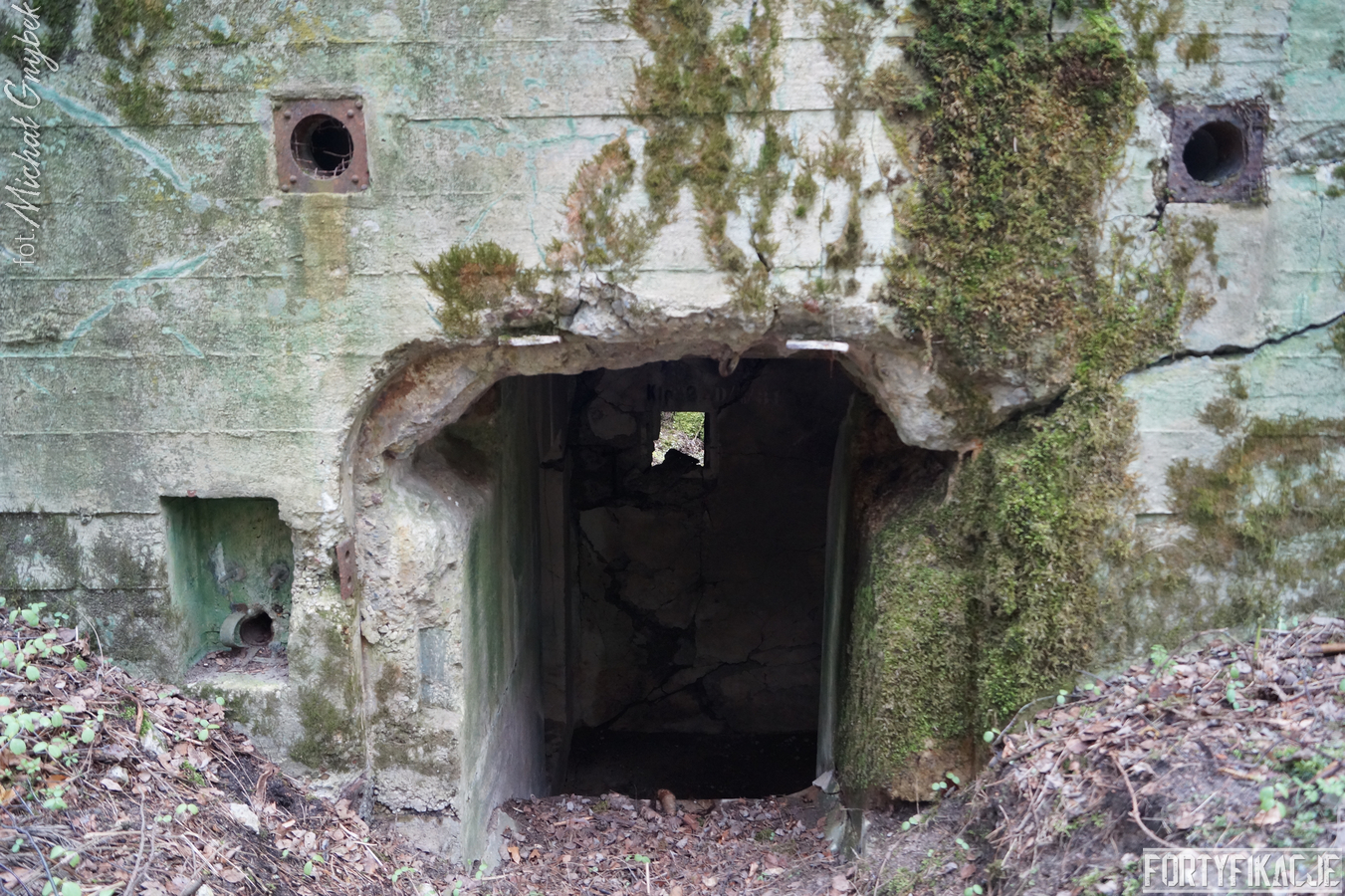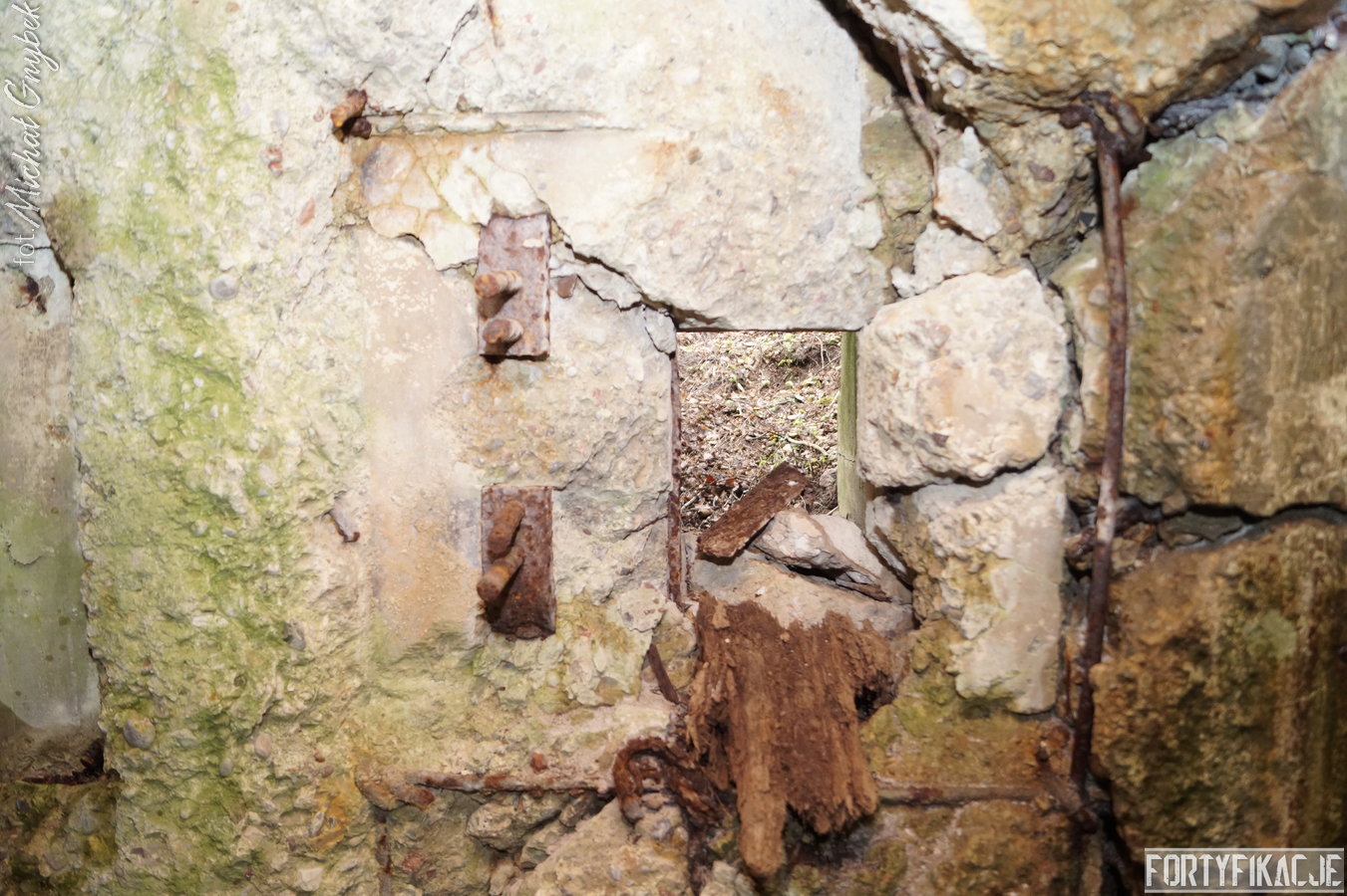 Oczywiście wydarto z niego wszystkie pancerze, ale na tyle "delikatnie", że nie naruszyło to zbytnio bryły obiektu! Bardzo ciekawą jawi się elewacja wejściowa. Znajduje się w niej jedno wejście oraz zewnętrzne stanowisko obserwatora. Warto zwrócić na nie uwagę, ponieważ zachował się tu fragment ościeżnicy drzwi, którymi stanowisko to było zamykane.
