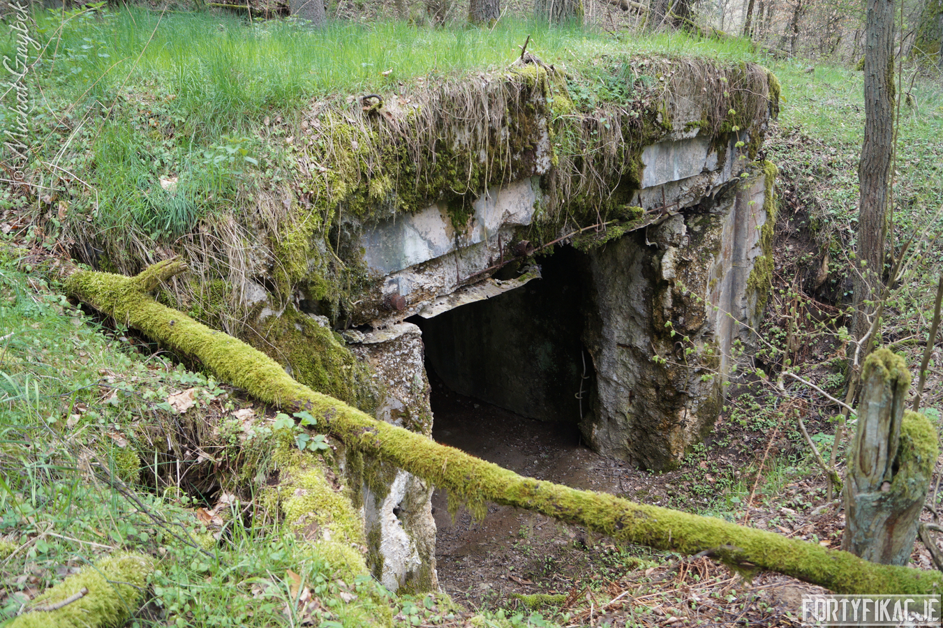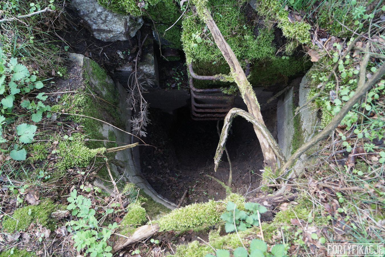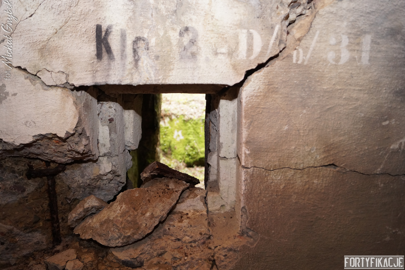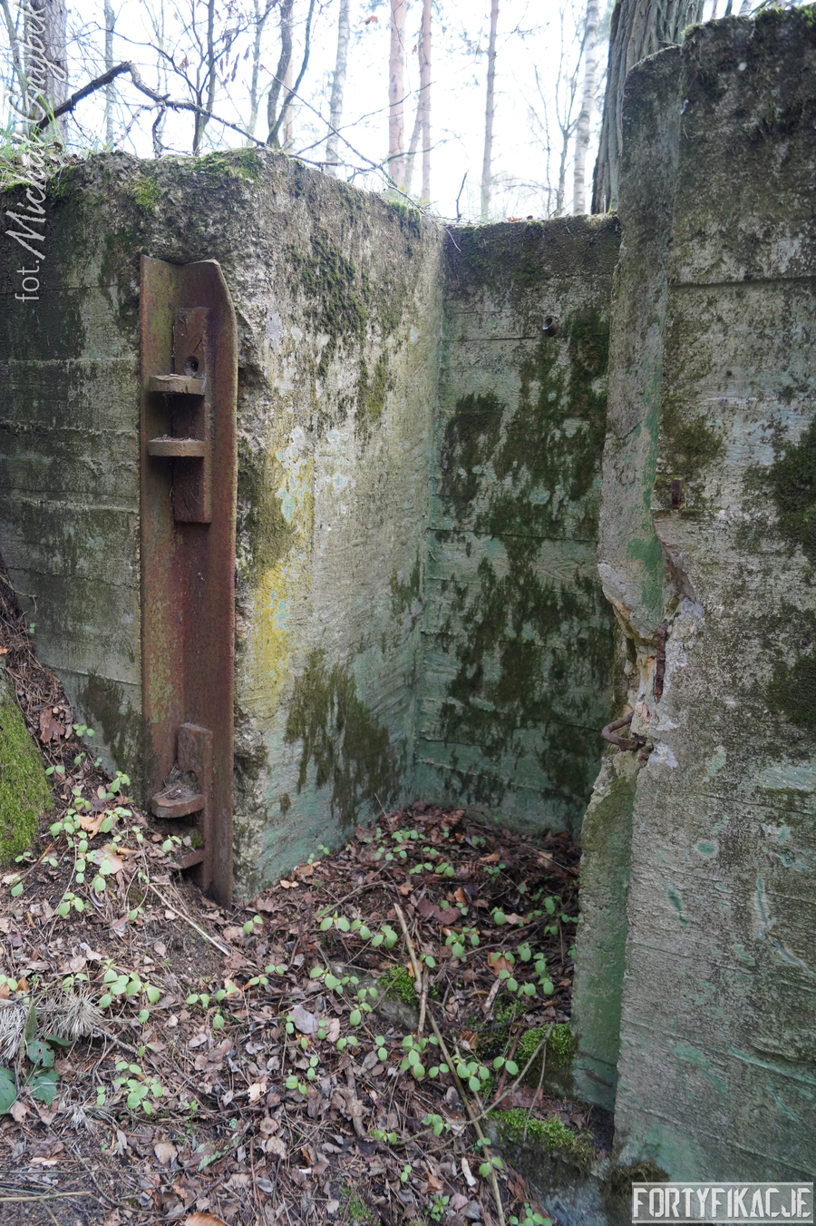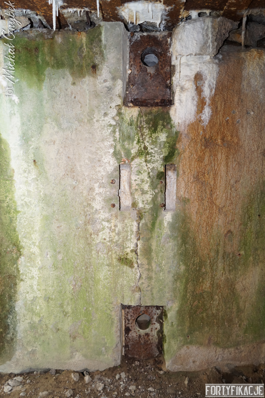 Oczywiście wydarto z niego wszystkie pancerze, ale na tyle "delikatnie", że nie naruszyło to zbytnio bryły obiektu! Bardzo ciekawą jawi się elewacja wejściowa. Znajduje się w niej jedno wejście oraz zewnętrzne stanowisko obserwatora. Warto zwrócić na nie uwagę, ponieważ zachował się tu fragment ościeżnicy drzwi, którymi stanowisko to było zamykane.