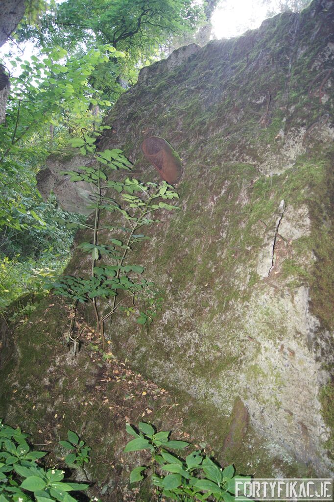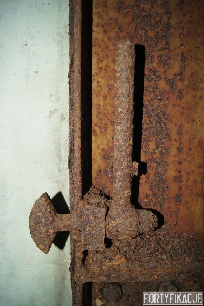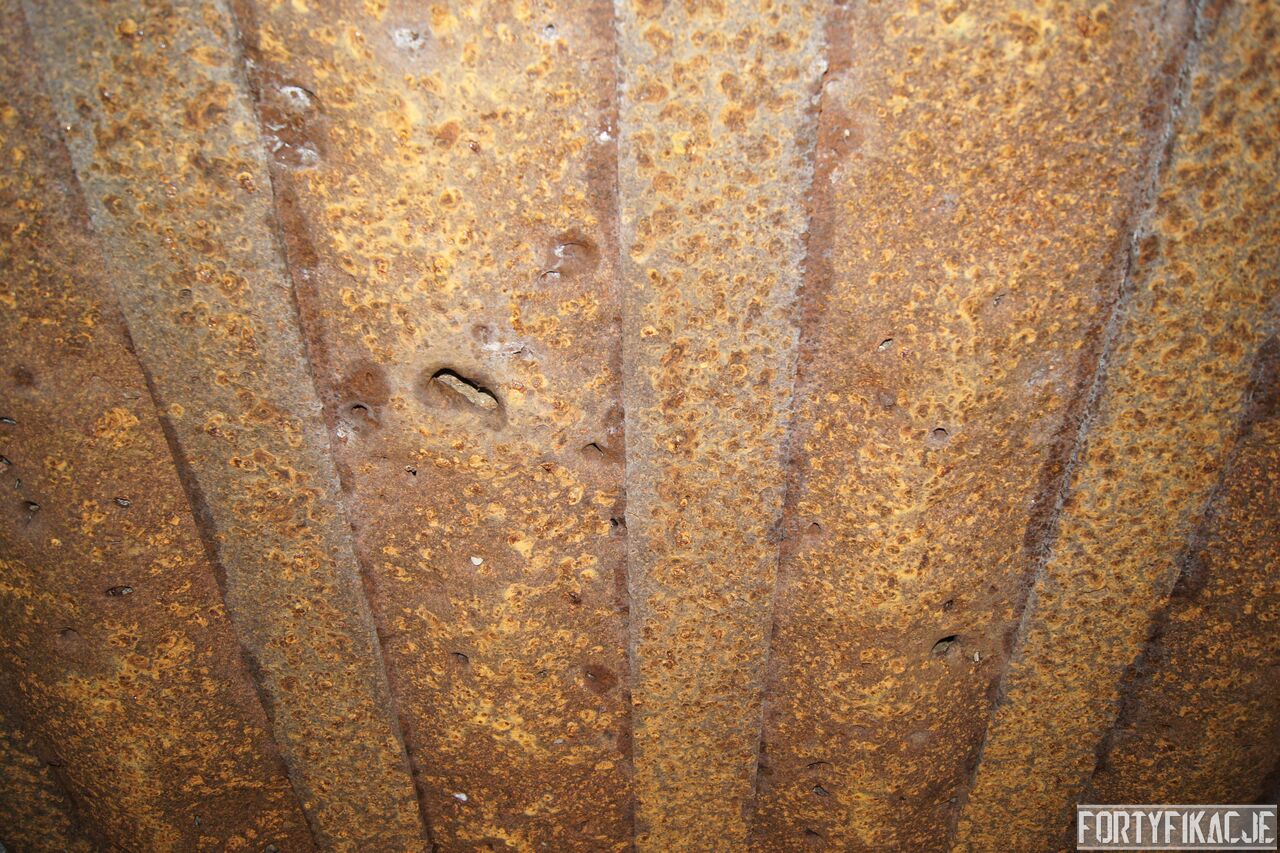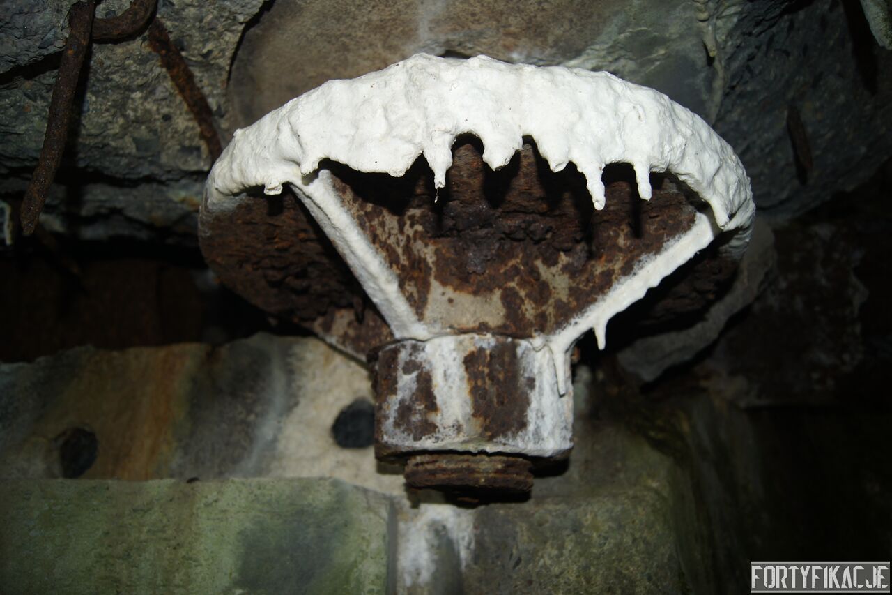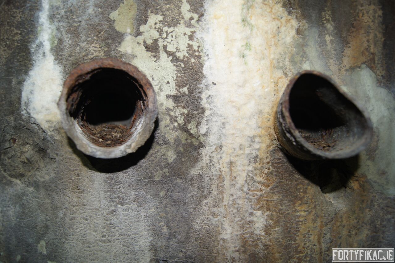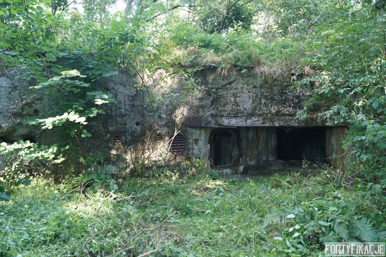 Wejdźmy na górną kondygnację. Tu poczynione zostały największe zniszczenia. Część pomieszczeń pozbawionych jest stropu, a ściany schronu poprzemieszczane. Największym zniszczeniom uległy izby bojowe, szyby kopuł, izba dowódcy oraz maszynownia. Kilka pomieszczeń górnej kondygnacji przetrwała jednak w jako takim stanie. Na wyróżnienie zasługuje m.in. izba łączności, blok wejściowy z dołami-pułapkami, nad którymi wisiały opuszczane drzwi 99P9 oraz kazamata z płytą pancerną 6P7. Był to pancerz o niebagatelnej grubości 20cm. W Pz. W. 712 została ona wycięta palnikami na tyle "delikatnie", że izba przetrwała, a w betonie widoczne są elementy mocowania płyty.