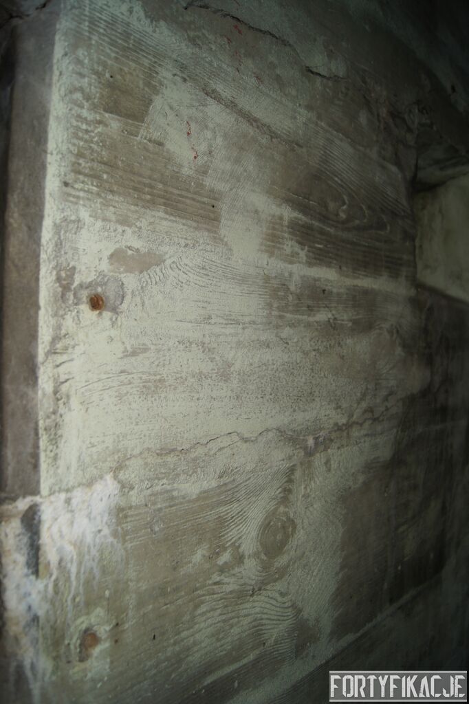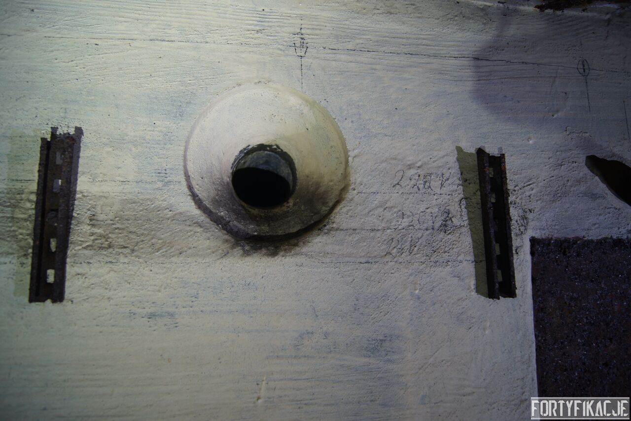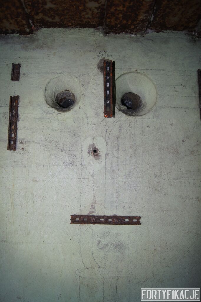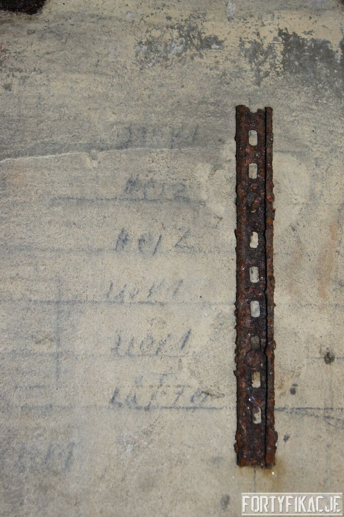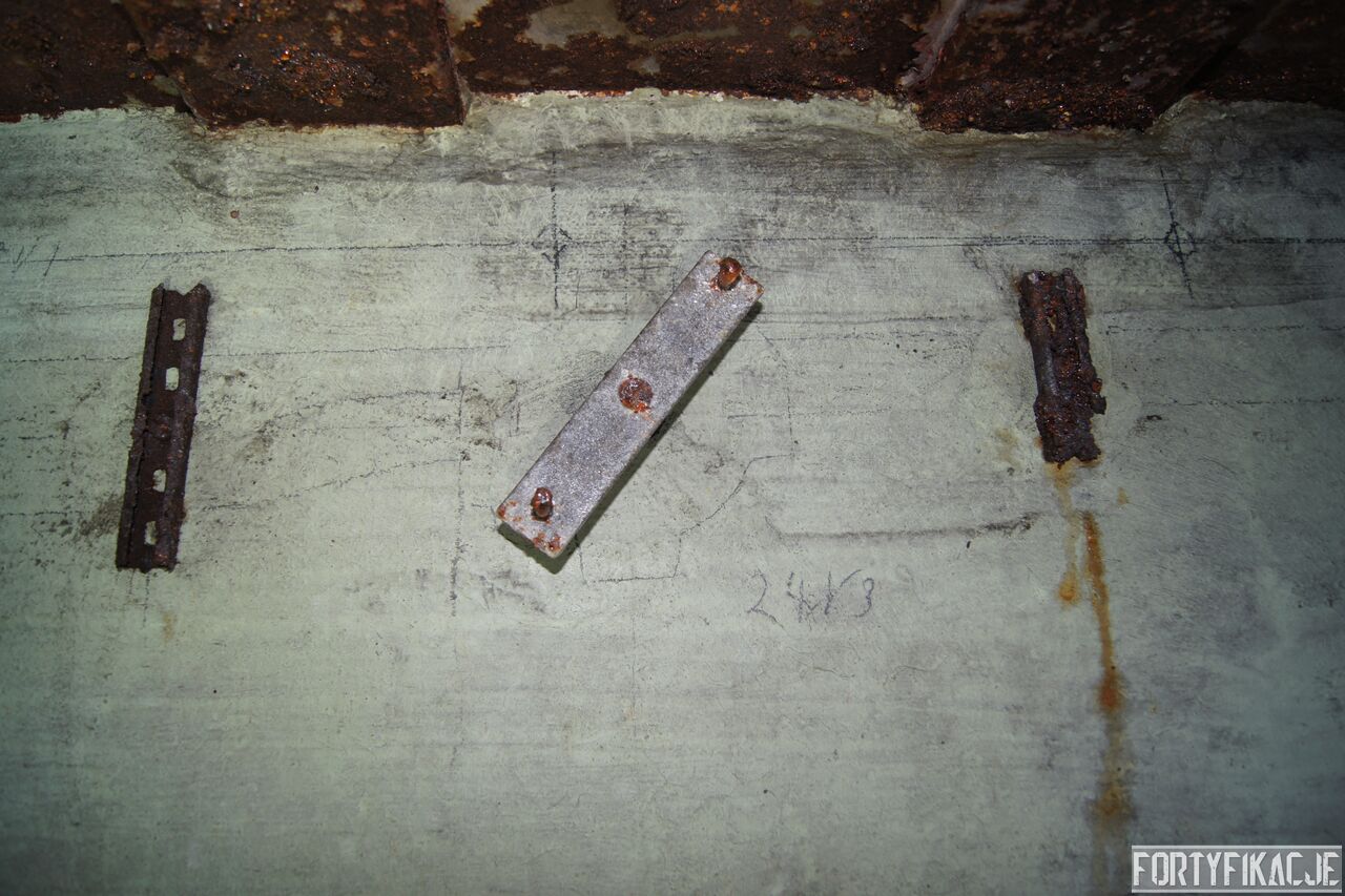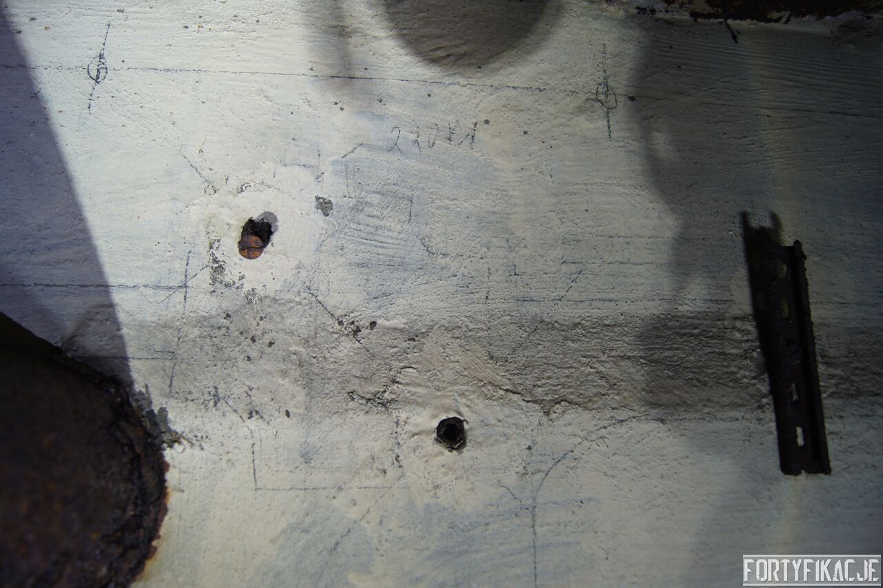 Żeby nie było standardowo i nie popaść w rutynę, wchodząc do środka zaczniemy wyjątkowo od dolnej kondygnacji i jednej z najcenniejszych - wg mnie - rzeczy. Pod pewnymi względami Pz. W. 712 wygląda na nieukończony. Wskazuje na to nie tylko późna data wzniesienia, kiedy to budowę FFOWB już wyciszano, ale również sam wygląd ścian, szczególnie dolnej kondygnacji. Zachowały się na nich, czynione ołówkiem, uwagi i schematy technika, który prawdopodobnie miał montować instalację elektryczną i/lub telefoniczną. Na ścianach widzimy narysowane linie, informacje dotyczące napięcia, adnotacje lub bardziej rozbudowane komentarze. Ponadto zaznaczone są miejsca wierceń. Jest to niebywała gratka dla każdego miłośnika MRU! Niniejsze ryciny znajdują się na dolnej kondygnacji w większości pomieszczeń.