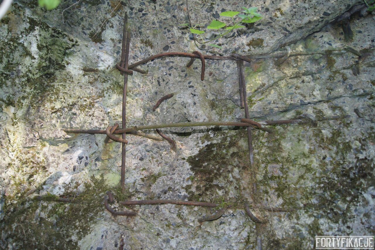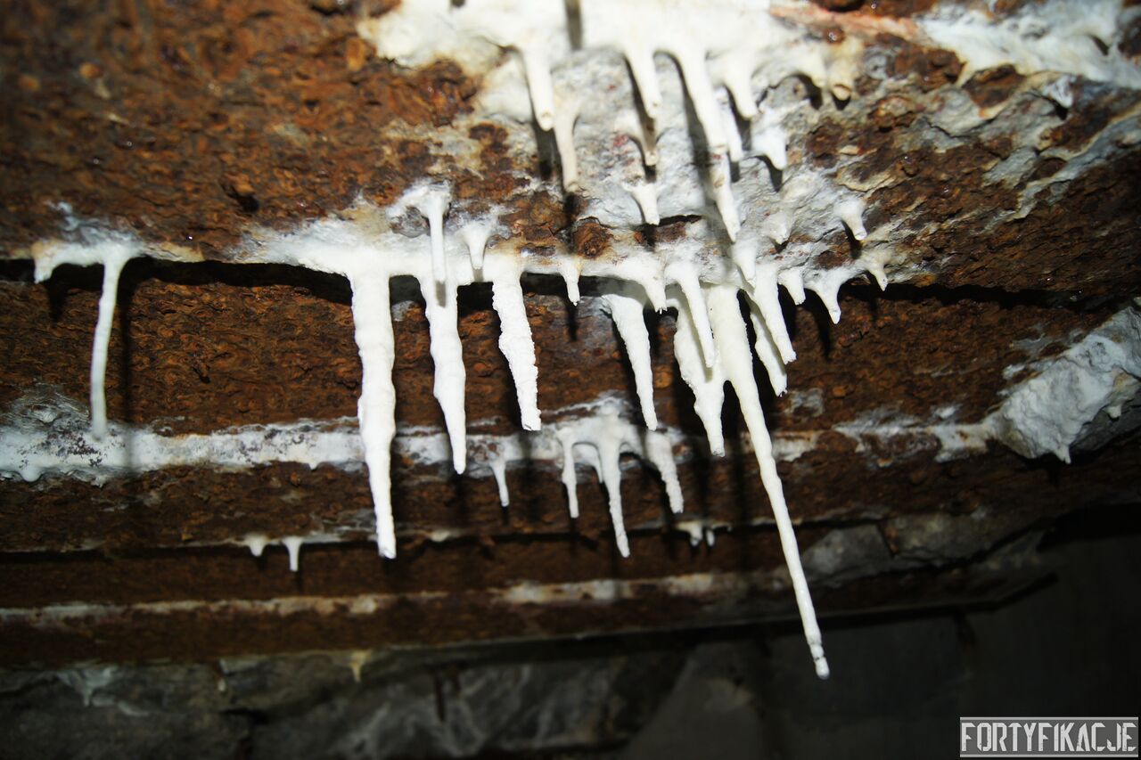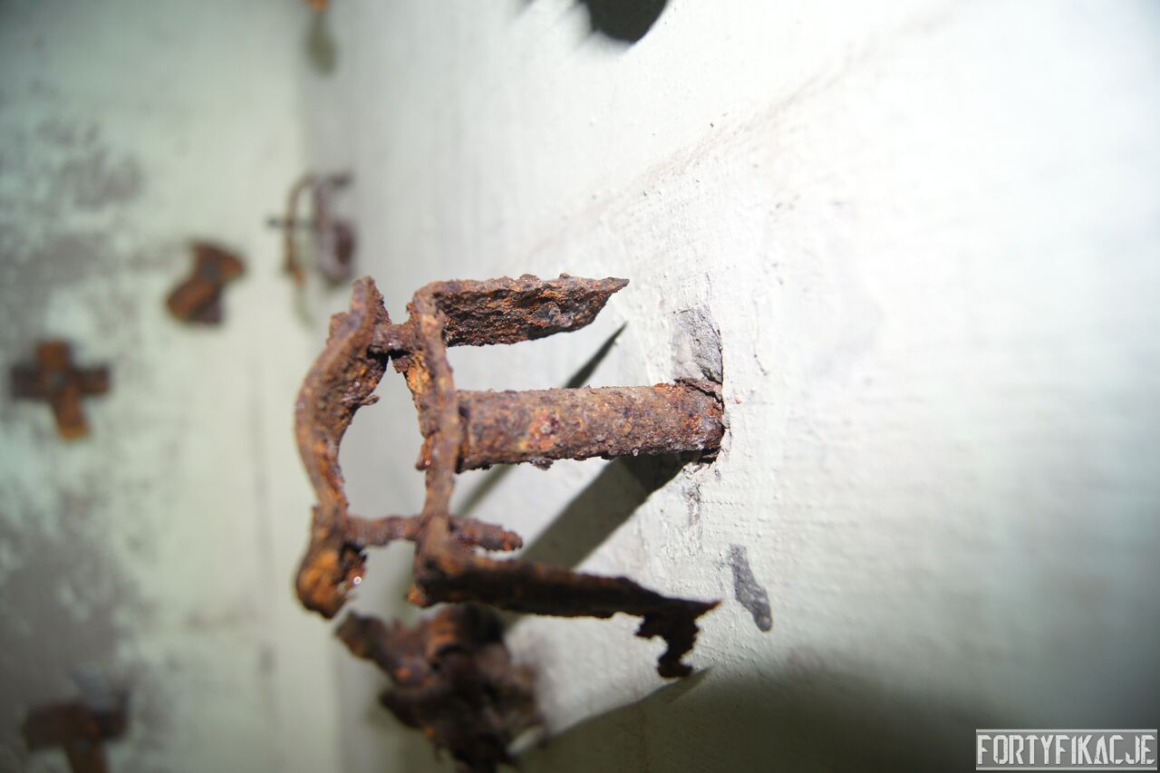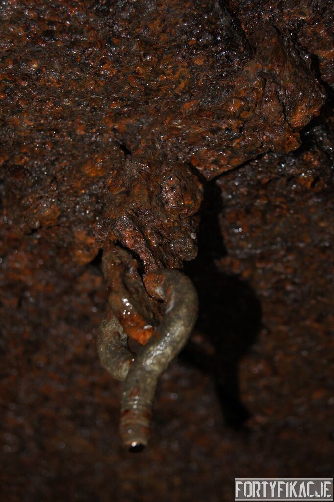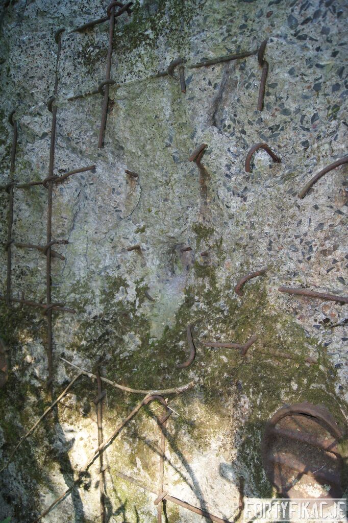 Żeby nie było standardowo i nie popaść w rutynę, wchodząc do środka zaczniemy wyjątkowo od dolnej kondygnacji i jednej z najcenniejszych - wg mnie - rzeczy. Pod pewnymi względami Pz. W. 712 wygląda na nieukończony. Wskazuje na to nie tylko późna data wzniesienia, kiedy to budowę FFOWB już wyciszano, ale również sam wygląd ścian, szczególnie dolnej kondygnacji. Zachowały się na nich, czynione ołówkiem, uwagi i schematy technika, który prawdopodobnie miał montować instalację elektryczną i/lub telefoniczną. Na ścianach widzimy narysowane linie, informacje dotyczące napięcia, adnotacje lub bardziej rozbudowane komentarze. Ponadto zaznaczone są miejsca wierceń. Jest to niebywała gratka dla każdego miłośnika MRU! Niniejsze ryciny znajdują się na dolnej kondygnacji w większości pomieszczeń.