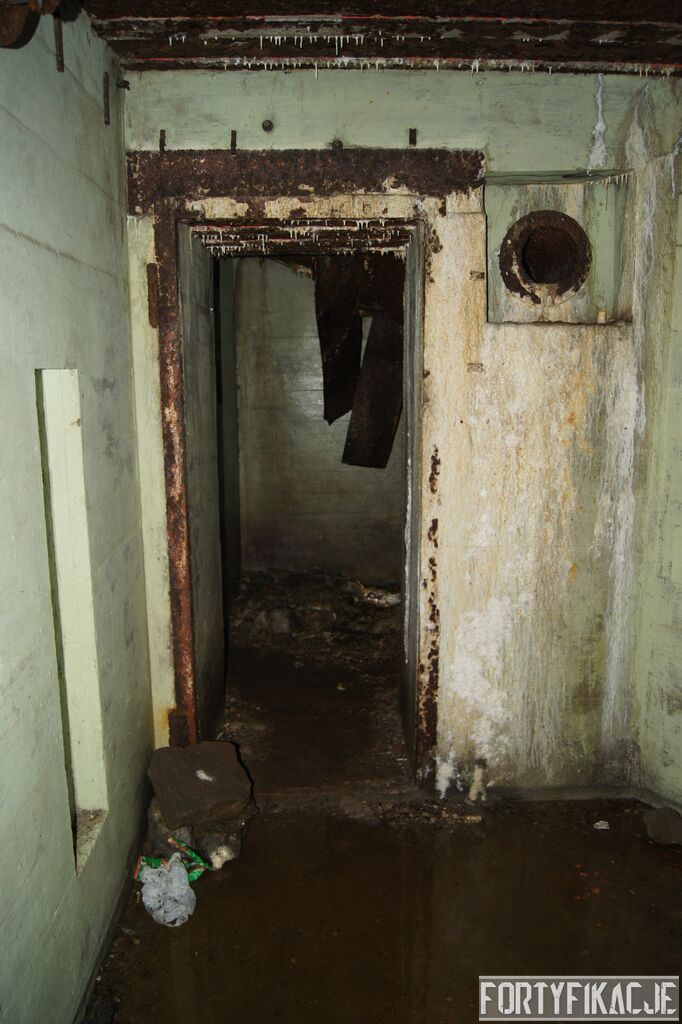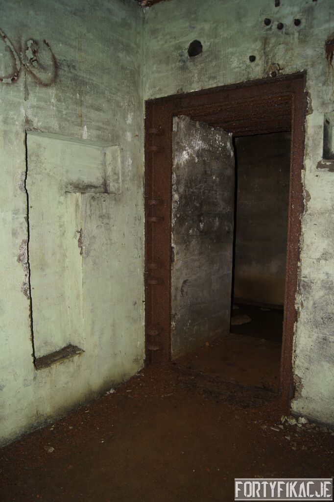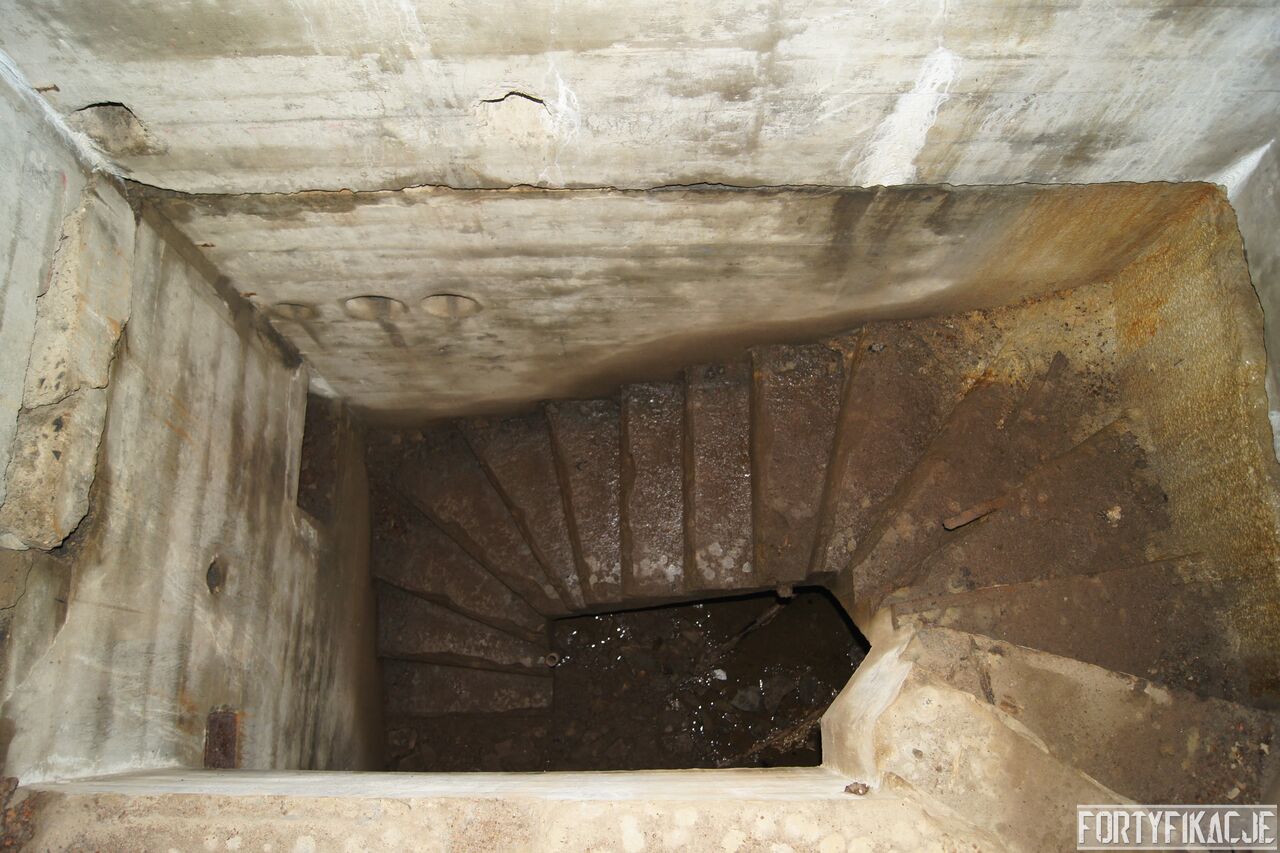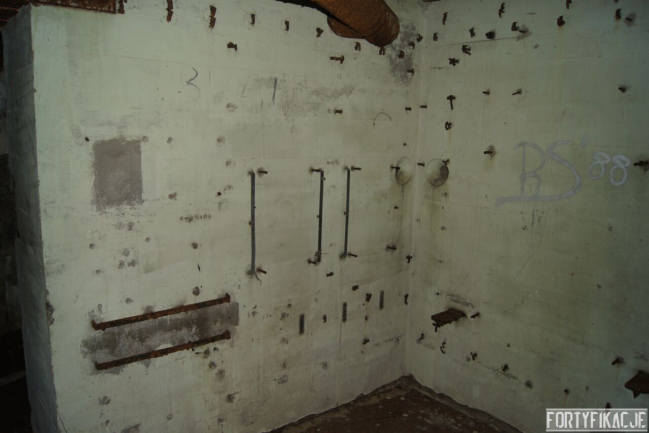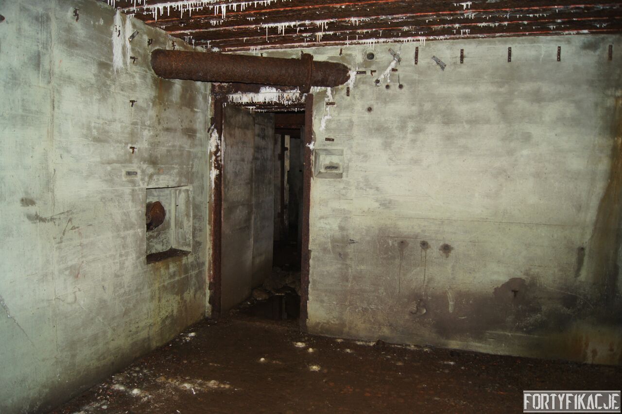 Wejdźmy na górną kondygnację. Tu poczynione zostały największe zniszczenia. Część pomieszczeń pozbawionych jest stropu, a ściany schronu poprzemieszczane. Największym zniszczeniom uległy izby bojowe, szyby kopuł, izba dowódcy oraz maszynownia. Kilka pomieszczeń górnej kondygnacji przetrwała jednak w jako takim stanie. Na wyróżnienie zasługuje m.in. izba łączności, blok wejściowy z dołami-pułapkami, nad którymi wisiały opuszczane drzwi 99P9 oraz kazamata z płytą pancerną 6P7. Był to pancerz o niebagatelnej grubości 20cm. W Pz. W. 712 została ona wycięta palnikami na tyle "delikatnie", że izba przetrwała, a w betonie widoczne są elementy mocowania płyty.