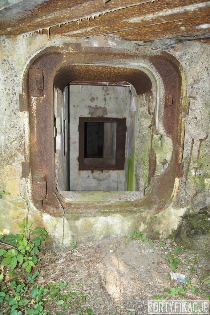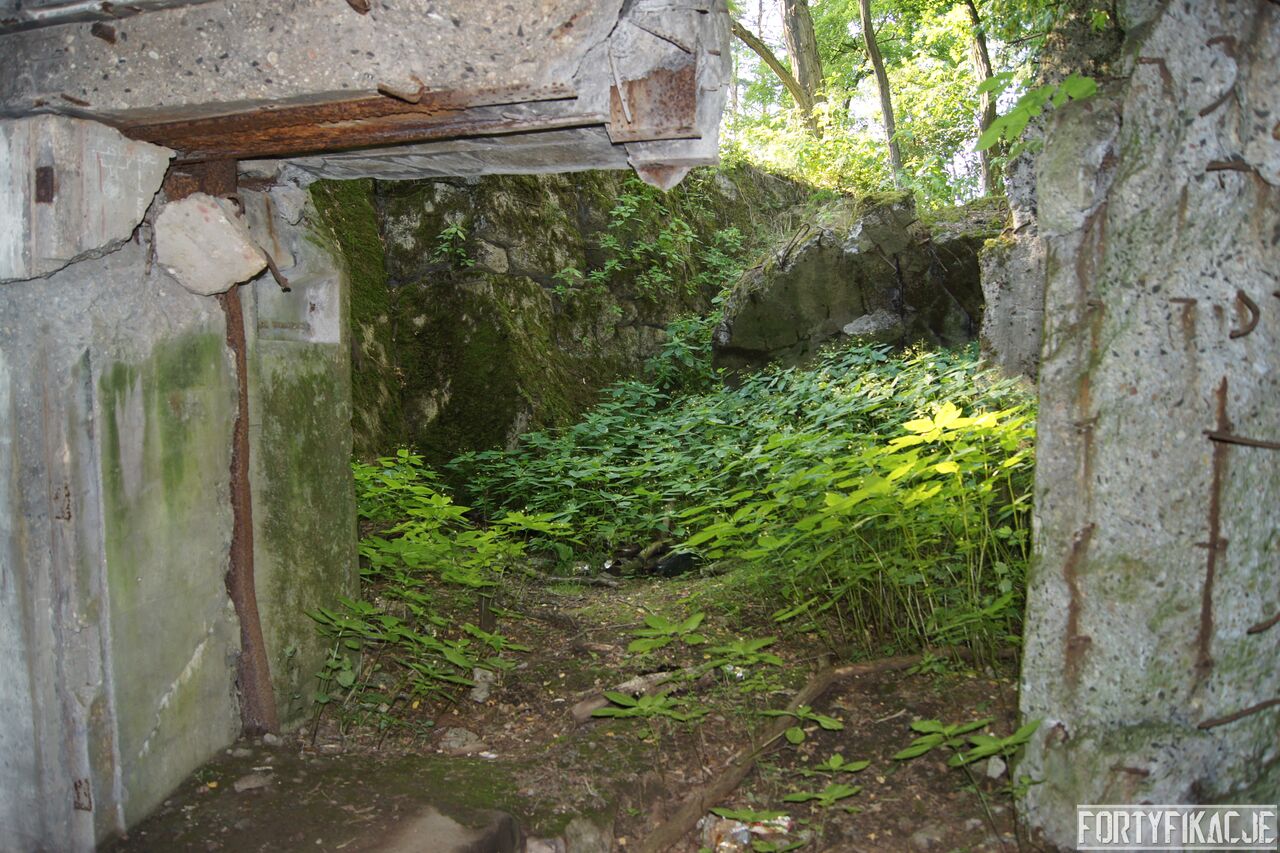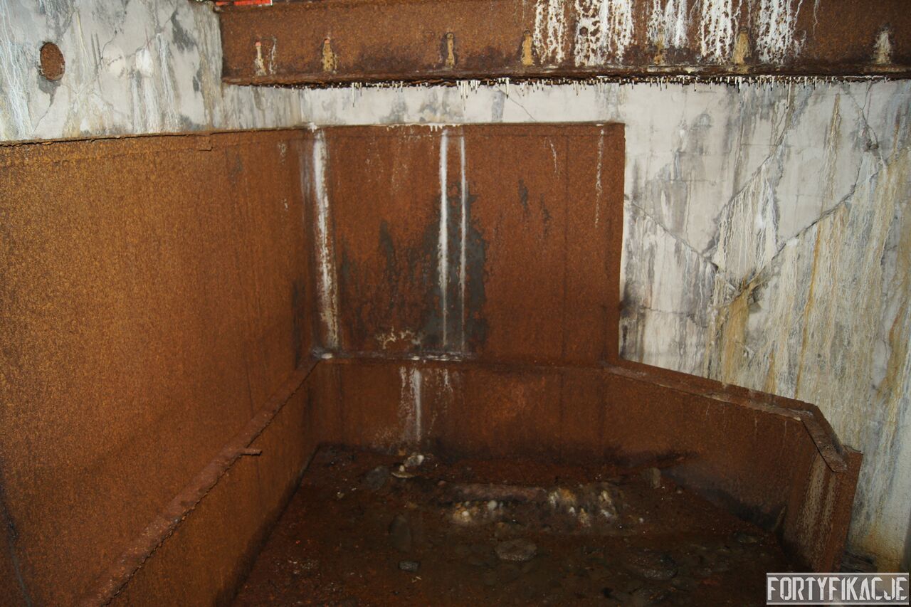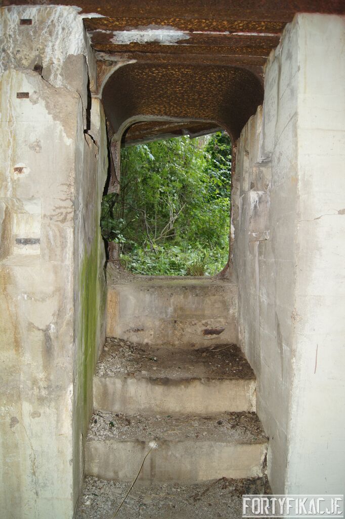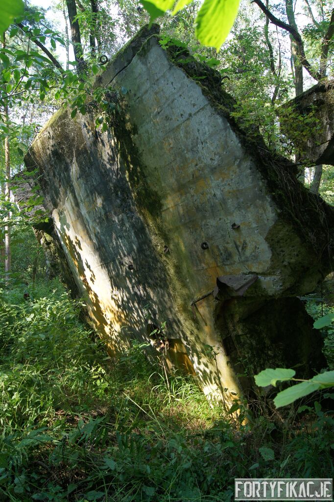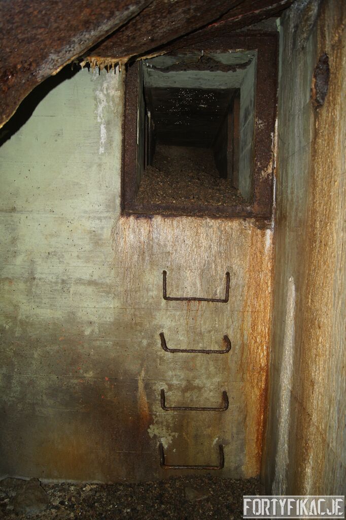 Wejdźmy na górną kondygnację. Tu poczynione zostały największe zniszczenia. Część pomieszczeń pozbawionych jest stropu, a ściany schronu poprzemieszczane. Największym zniszczeniom uległy izby bojowe, szyby kopuł, izba dowódcy oraz maszynownia. Kilka pomieszczeń górnej kondygnacji przetrwała jednak w jako takim stanie. Na wyróżnienie zasługuje m.in. izba łączności, blok wejściowy z dołami-pułapkami, nad którymi wisiały opuszczane drzwi 99P9 oraz kazamata z płytą pancerną 6P7. Był to pancerz o niebagatelnej grubości 20cm. W Pz. W. 712 została ona wycięta palnikami na tyle "delikatnie", że izba przetrwała, a w betonie widoczne są elementy mocowania płyty.
