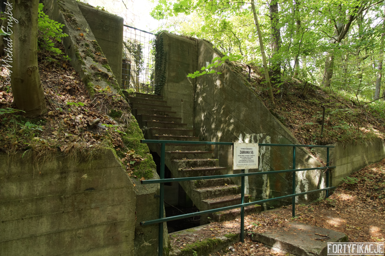 W niniejszym stanowisku wejście na górną kondygnację prowadziło z poziomu gruntu po ok. 3m wysokości betonowych schodach. Tuż za (pod?) nimi znajdowało się też wejście na dolny poziom. Co ciekawe projekt nie przewidywał bezpośredniego ukrytego przejścia pomiędzy kondygnacjami. Stanowisko 2 zasługuje na uwagę ze względu na wiele zachowanych stalowych elementów: drzwi, windę amunicyjną itd.