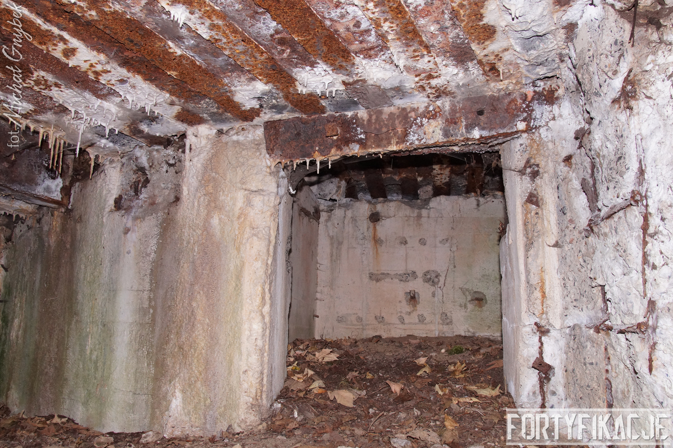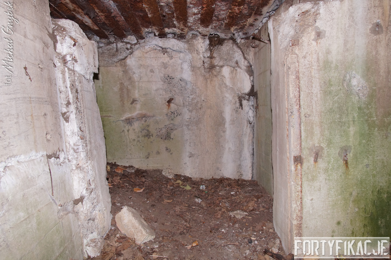 Do każdej z izb bojowych dostać się można było osobnym przedsionkiem. Oba przedsionki pełniły również rolę śluzy. Co ciekawe projektanci zapewnili również komunikację pomiędzy izbami bojowymi: W ścianie je oddzielającej wykonano otwór zamykany z obu stron drzwiami. Jak wskazuje K. Motyl ta swoista śluza pełniła prawdopodobnie również rolę podręcznego magazynu amunicyjnego.
