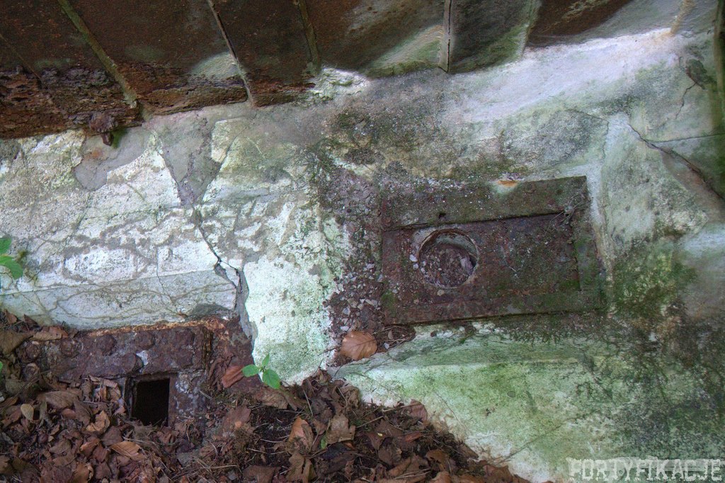 Izba bojowa z MG 08 osłonięta płytą pancerną 6P7 znajdująca się na... dolnej kondygnacji! Skutkowało to odsłonięciem schronu na wysokość dwóch kondygnacji. Wymuszało to potrzebę solidnego kamuflażu. B-werk prawdopodobnie był maskowany na budynek gospodarczy. Inną ciekawostką był brak zastosowania w tak dużym obiekcie zapadni. Podobnie tak jak okoliczni ciężcy sąsiedzi, Pz. W. 921 był niesymetryczny. Górna kondygnacja posiadała znacznie mniejszą kubaturę niż dolna.