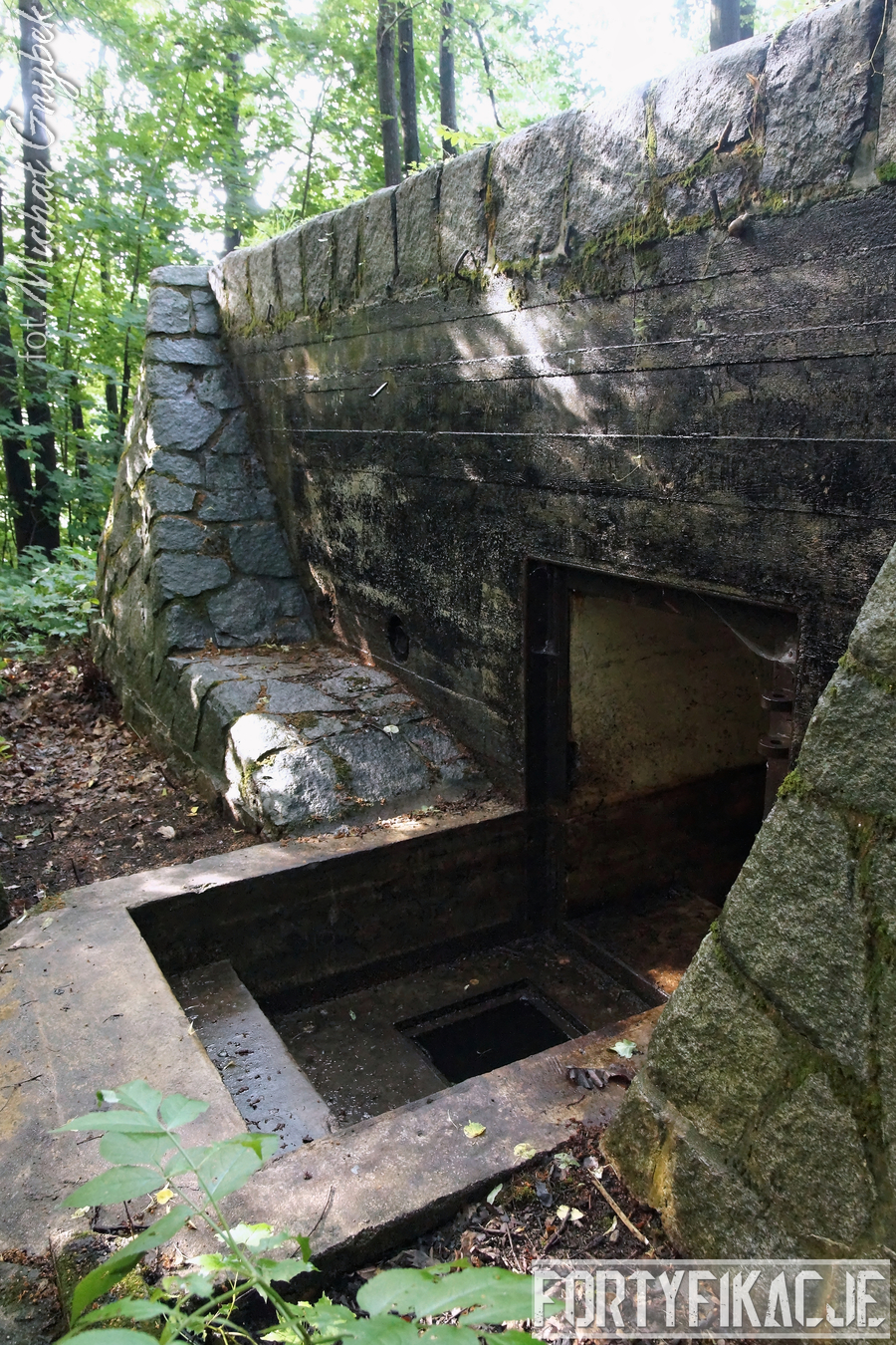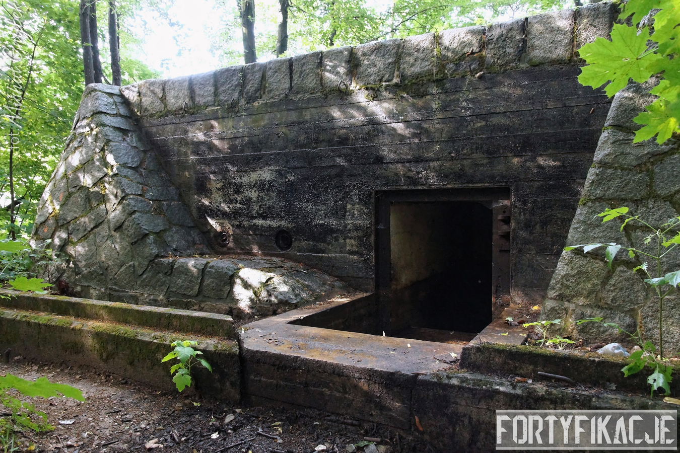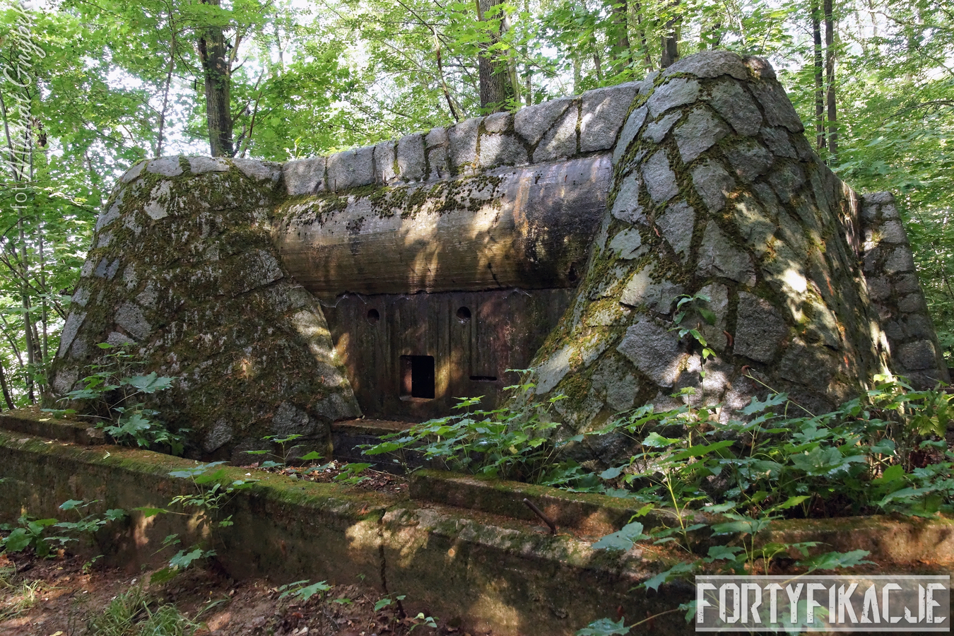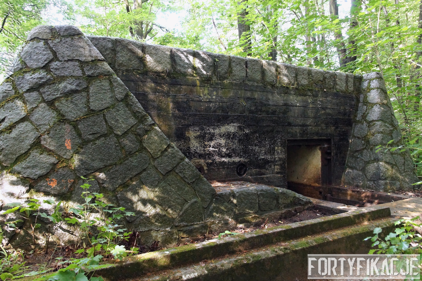 Schron został wybudowany w pobliżu ujścia Nysy Kłodzkiej z Jeziora Otmuchowskiego. Stanowisko ogniem bocznym obejmowało lewy brzeg rzeki. Jest to chyba jeden z najciekawszych schronów wybudowanych na początku lat 30. XX w. przez Niemców. Przede wszystkim ze względu na intrygującą formę maskowania jaką uzyskał. Standardowy Unterstand otrzymał nietypowy gruby płaszcz składający się z betonu i ociosanych kamieni. Płaszcz otacza wszystkie ściany, a jedyne wyrwy pozostawiono w elewacji bojowej - na otwór strzelniczy i obserwacyjny - oraz wejściowej - na otwór wejściowy zamykany stalowymi drzwiami z wyłazem lub bez oraz dwie czerpnie powietrza. Ponadto w narożnikach nadano mu stożkowatą formę. Zabieg ten sprawił, że obiekt wygląda na bardziej masywny. Obraz ten pogłębia żelazobetonowa wanna, w której schron został umieszczony. Ten żelbetowy pojemnik miał chronić obiekt przed naporem lub przybraniem wód.
